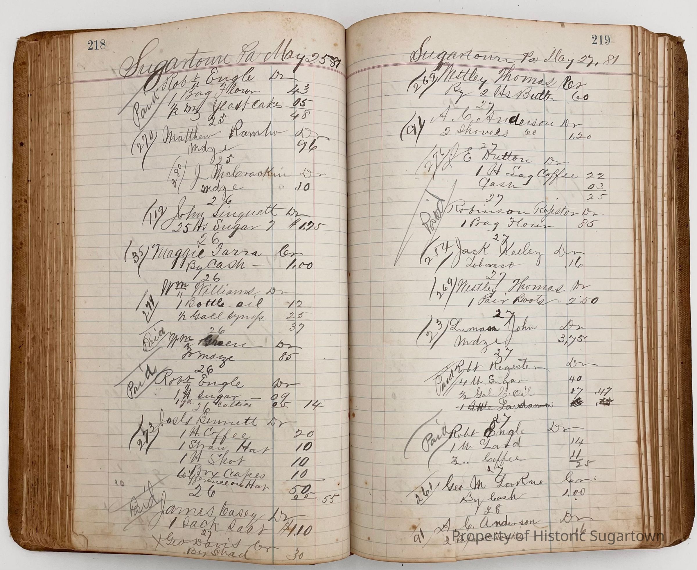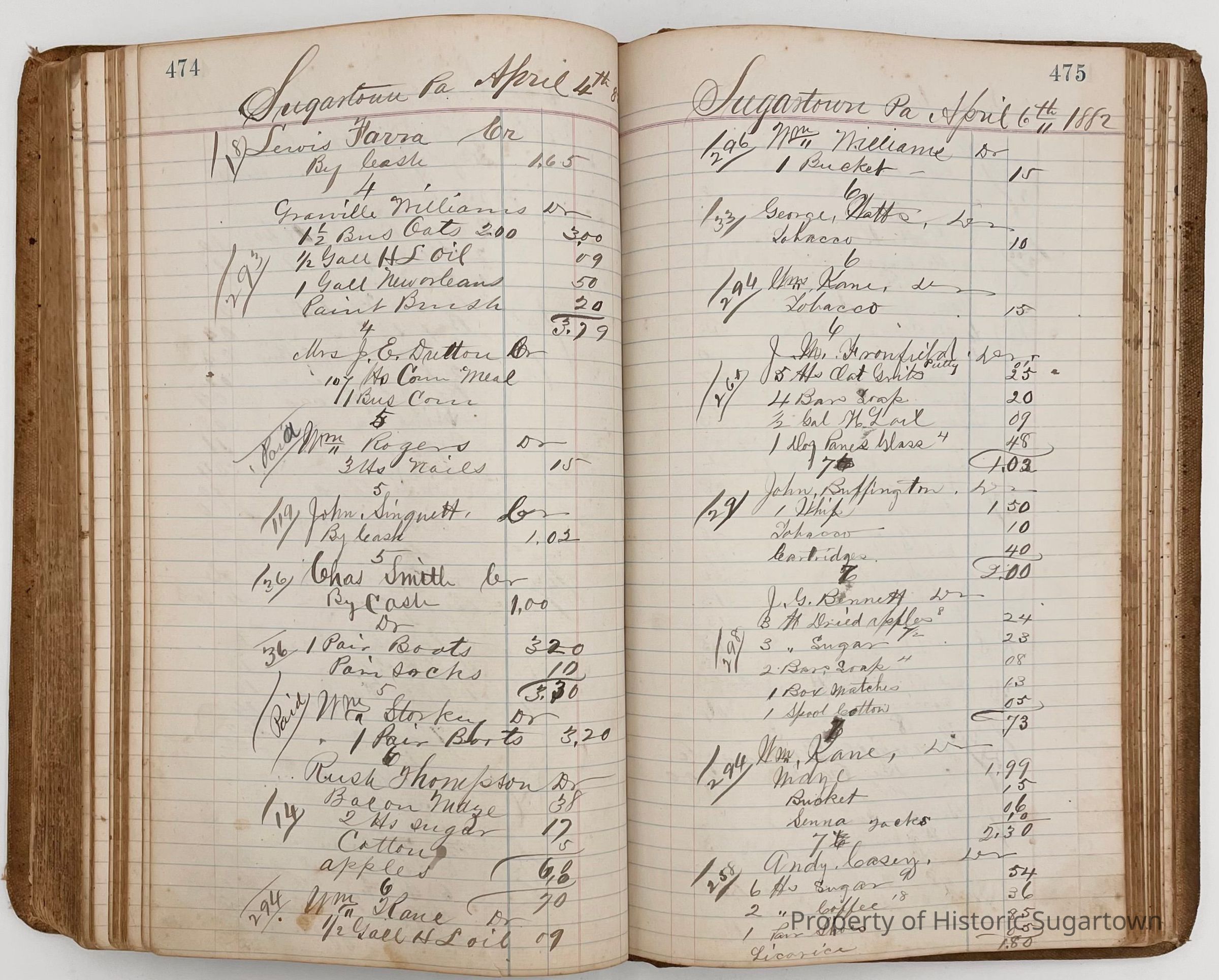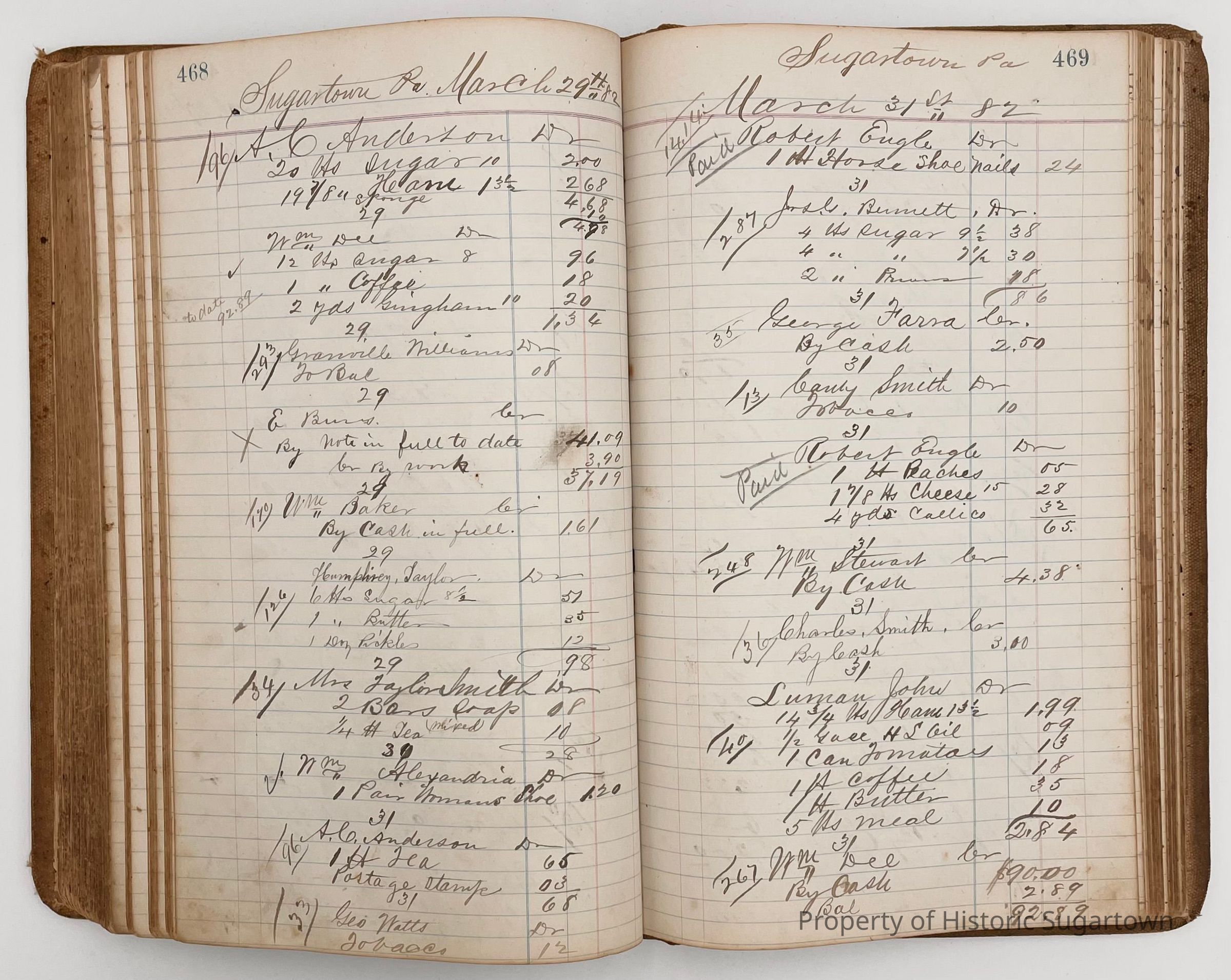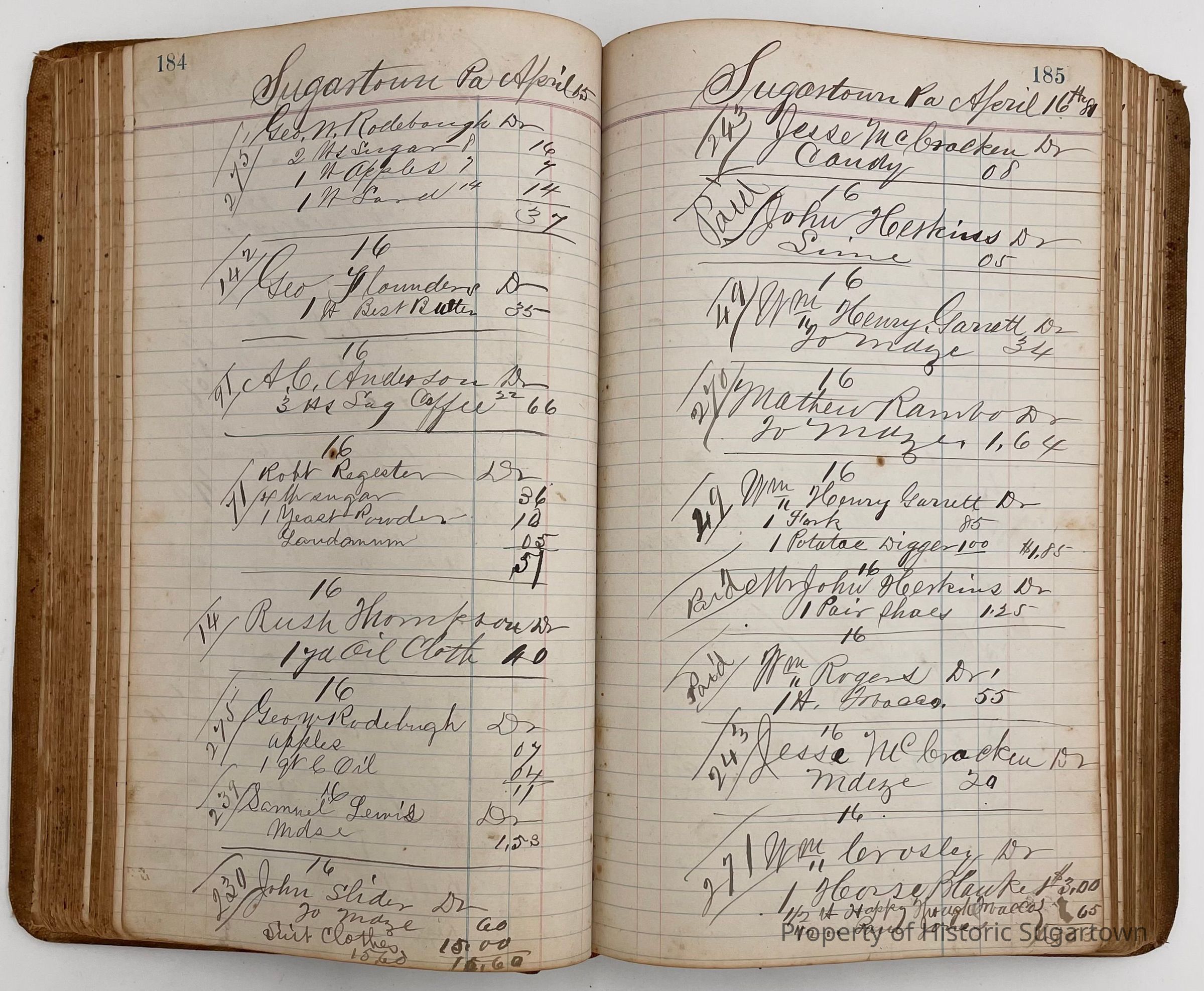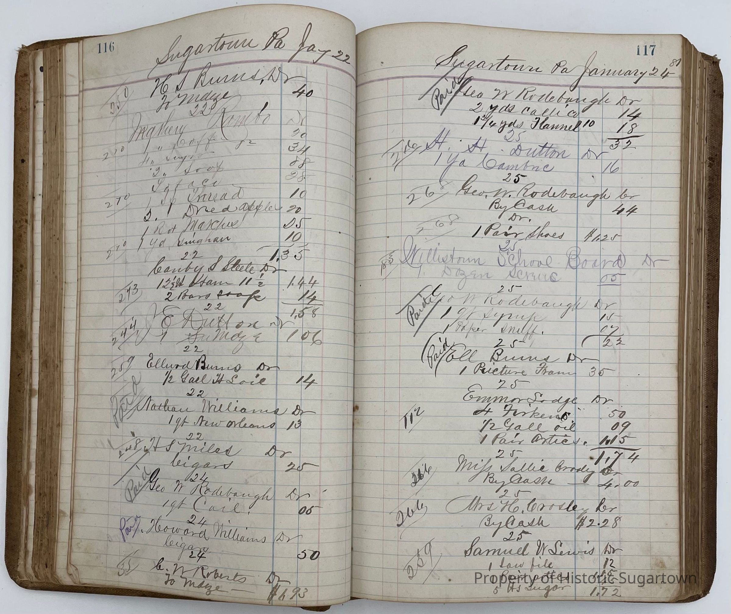 During the 1840s, Sharpless Worrall moved with his family to Sugartown in Willistown Township, Chester County, Pennsylvania, where he took over ownership of a general store and served as postmaster for 20 years. Upon his retirement, Worrall's son-in-law Hillery John took over the store, which he ran until his death. At that point it was taken over by Hillery's son, Clyde B. John, who eventually turned the business into an antiques shop. Worrall and John family papers and business records, 1830-1939, primarily consist of the business records of the general store under all three owners as well personal and family papers relating to the Worrall and John families.Context
