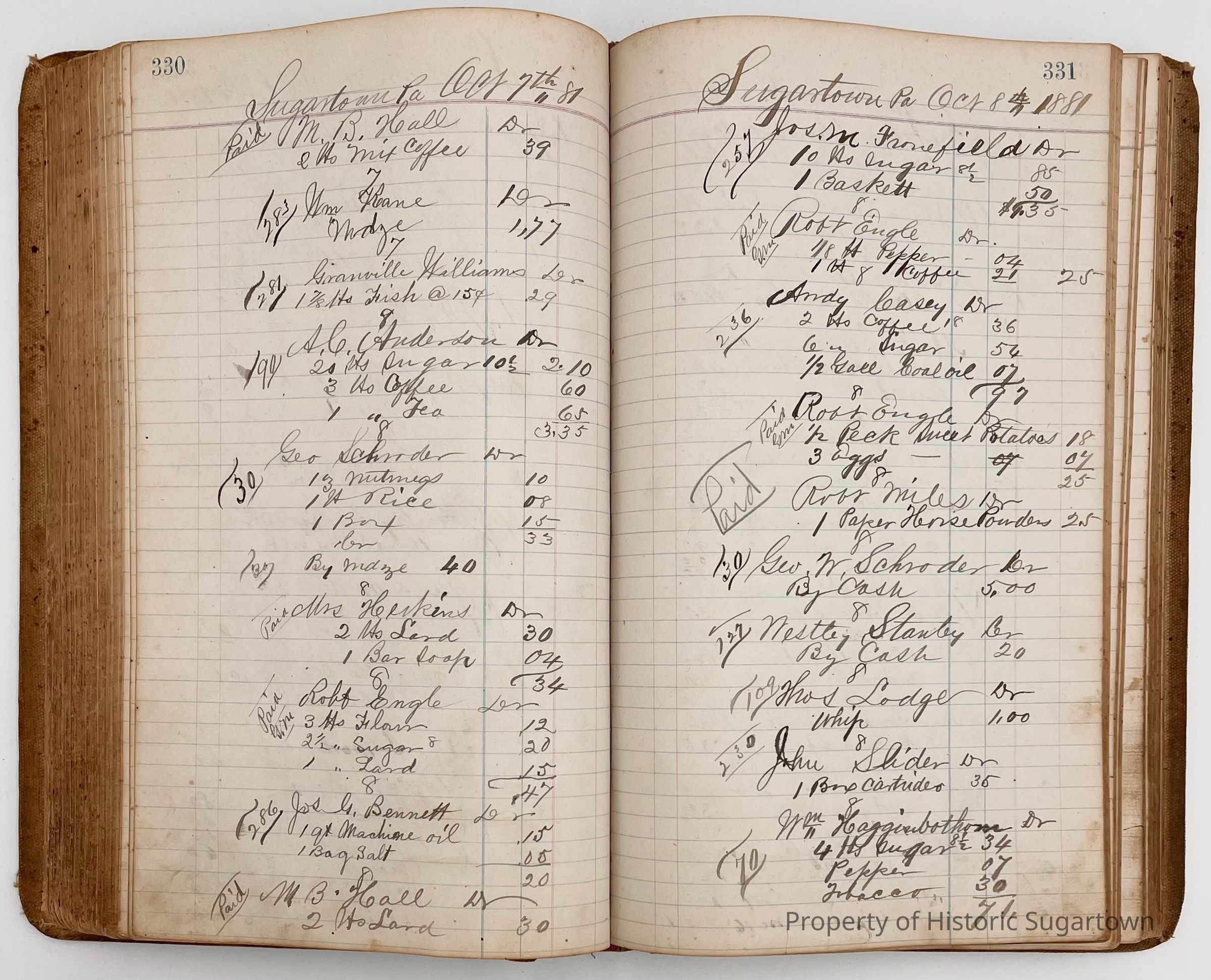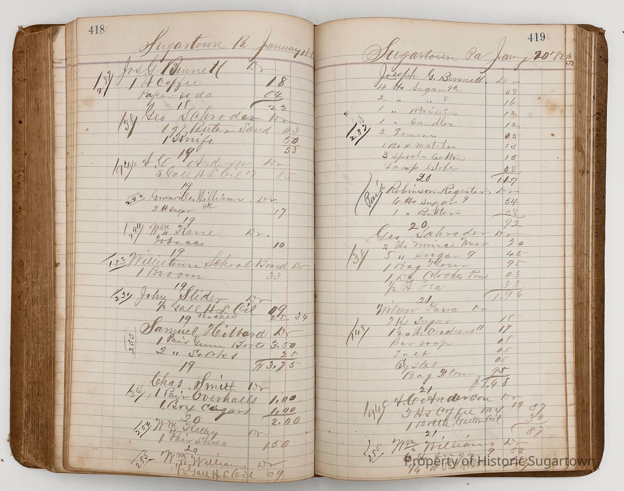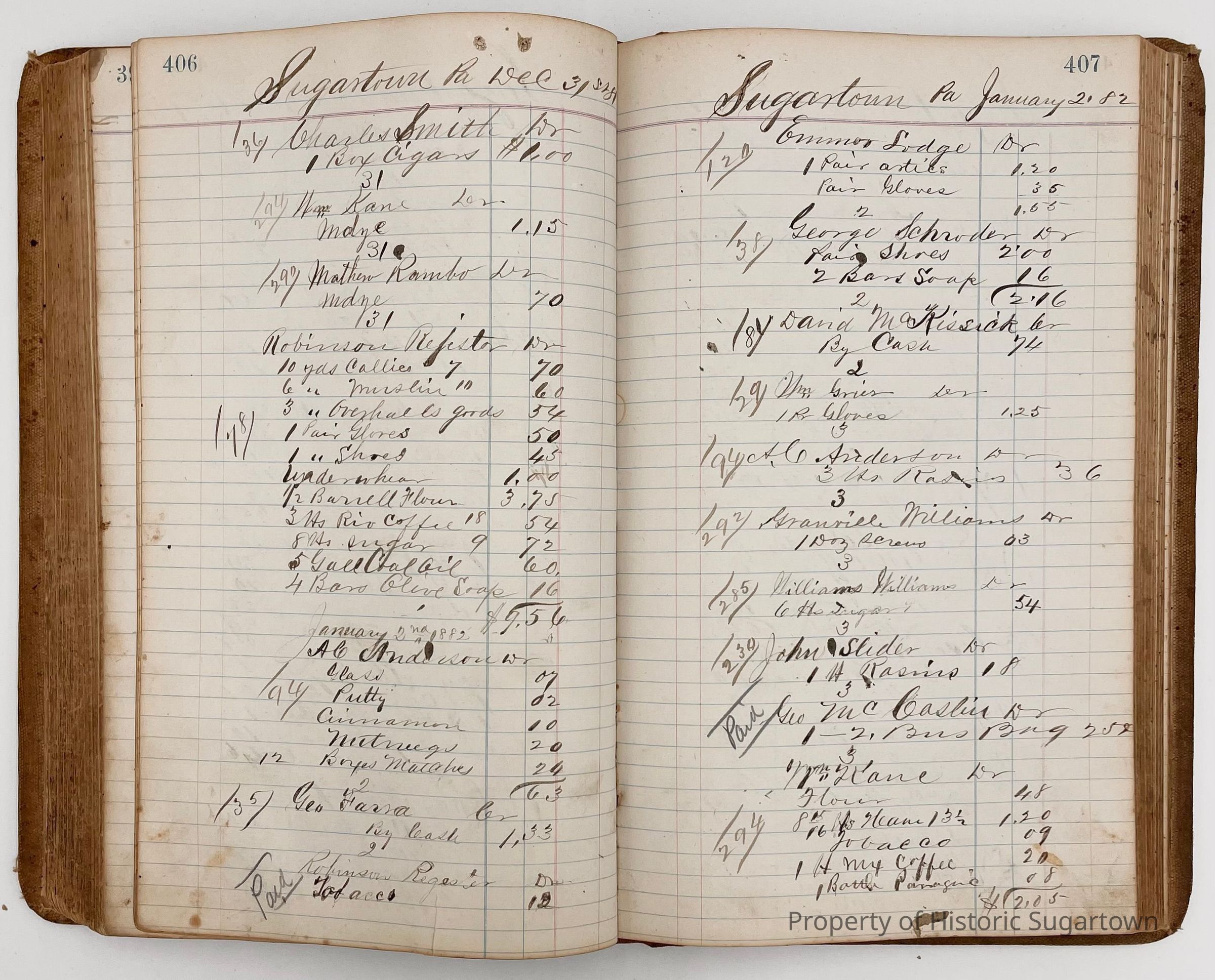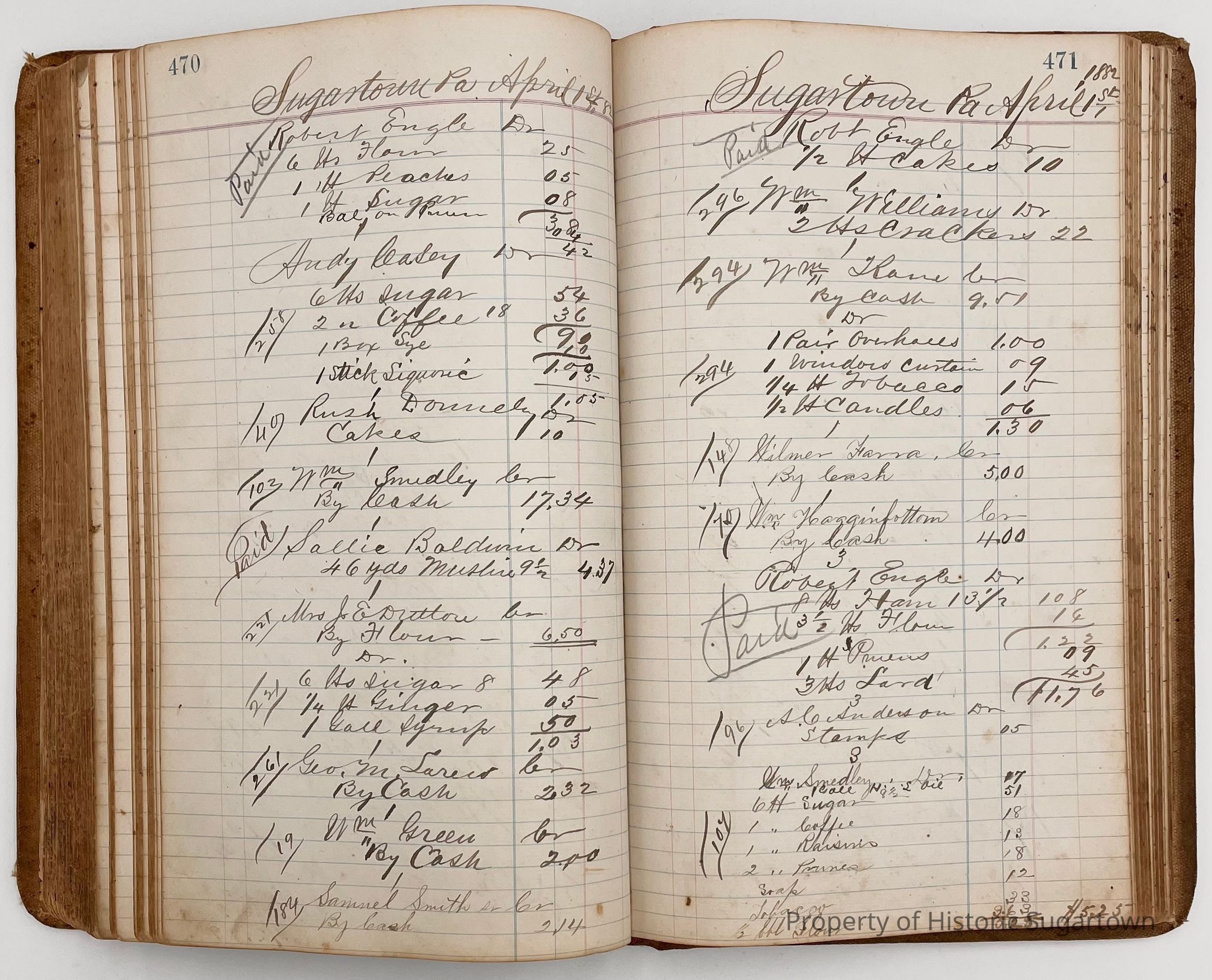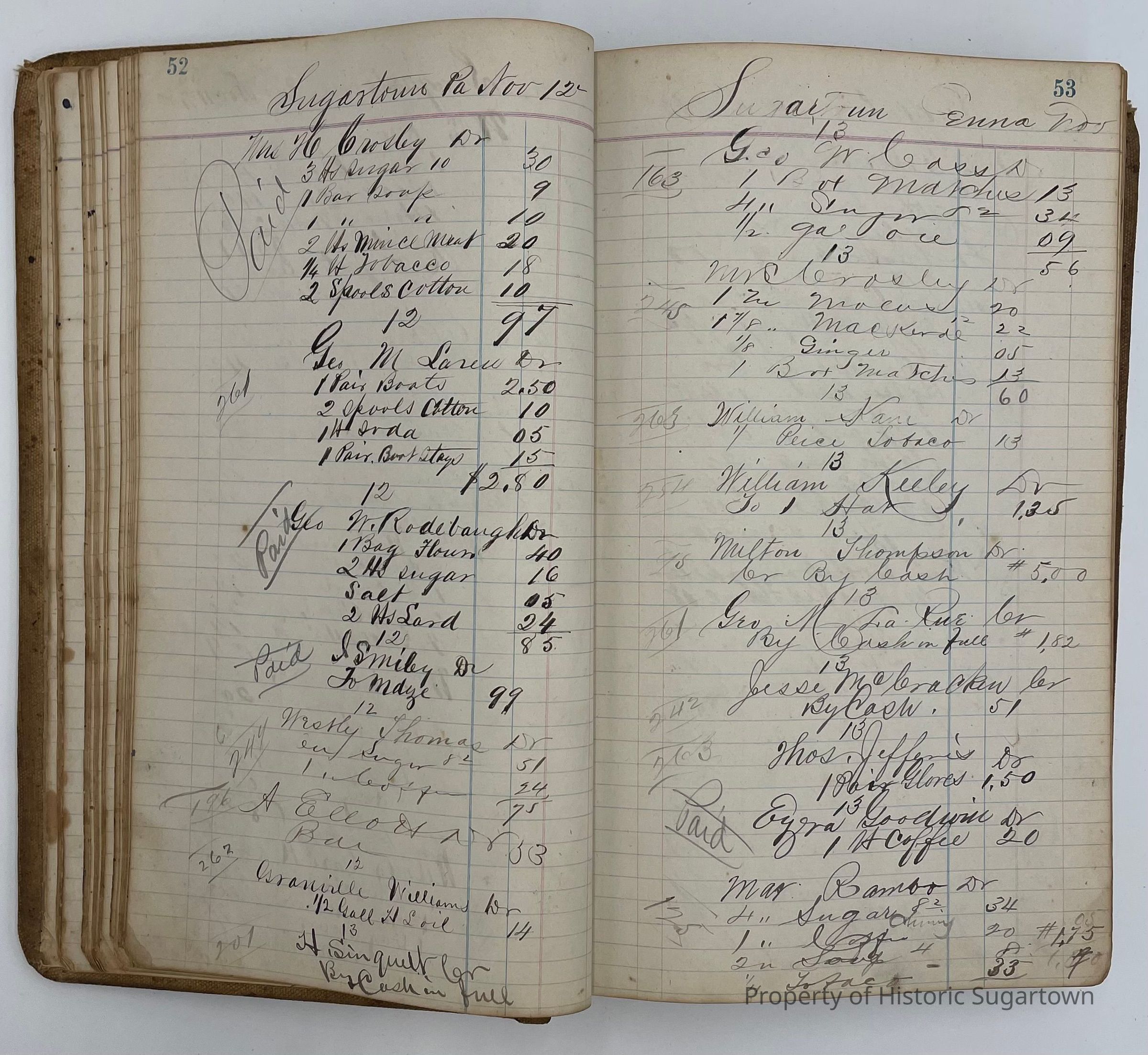 During the 1840s, Sharpless Worrall moved with his family to Sugartown in Willistown Township, Chester County, Pennsylvania, where he took over ownership of a general store and served as postmaster for 20 years. Upon his retirement, Worrall's son-in-law Hillery John took over the store, which he ran until his death. At that point it was taken over by Hillery's son, Clyde B. John, who eventually turned the business into an antiques shop. Worrall and John family papers and business records, 1830-1939, primarily consist of the business records of the general store under all three owners as well personal and family papers relating to the Worrall and John families.Context