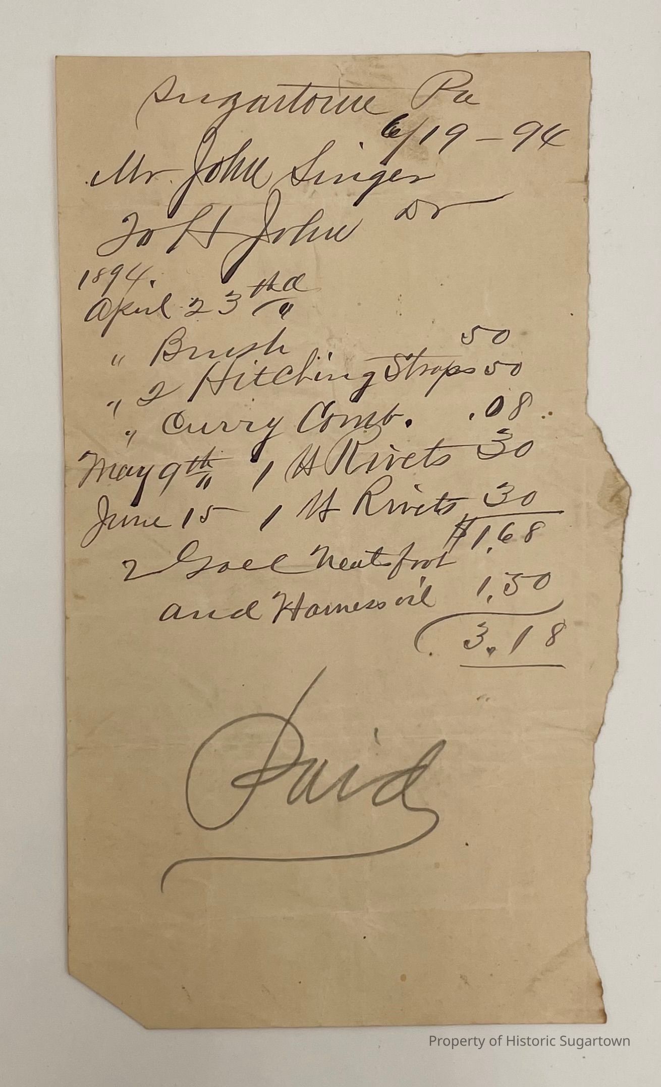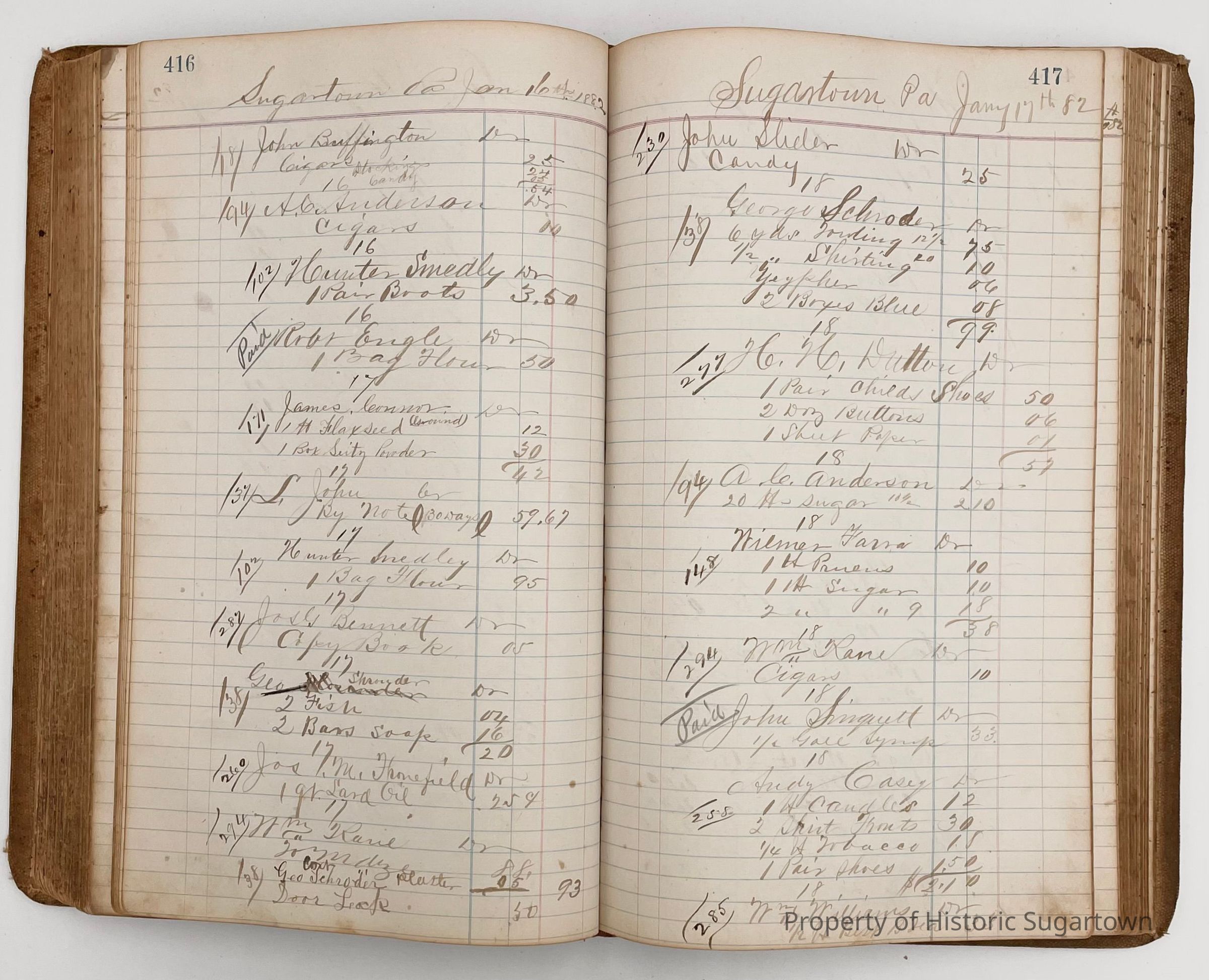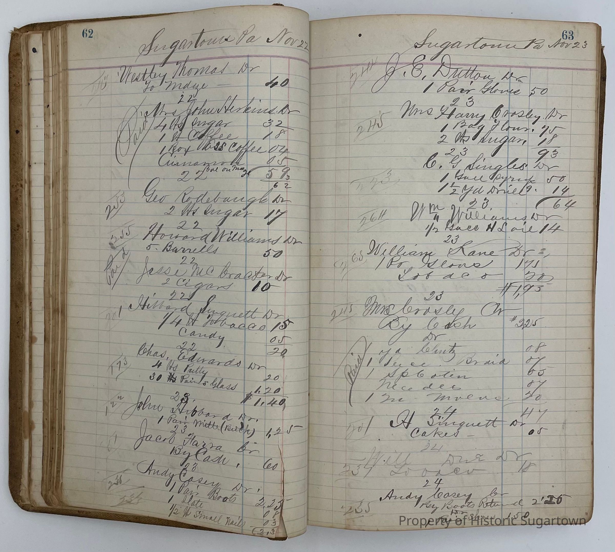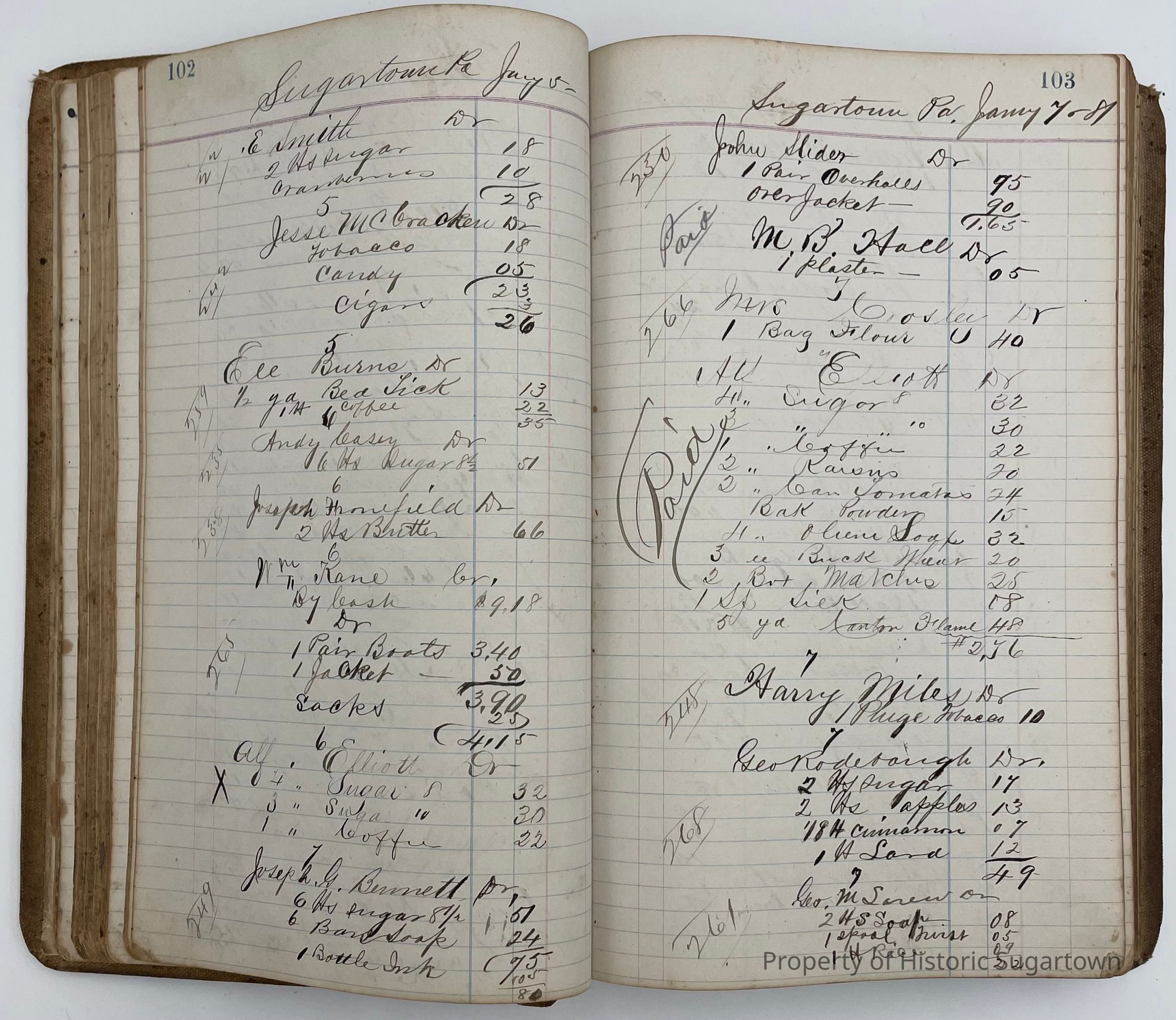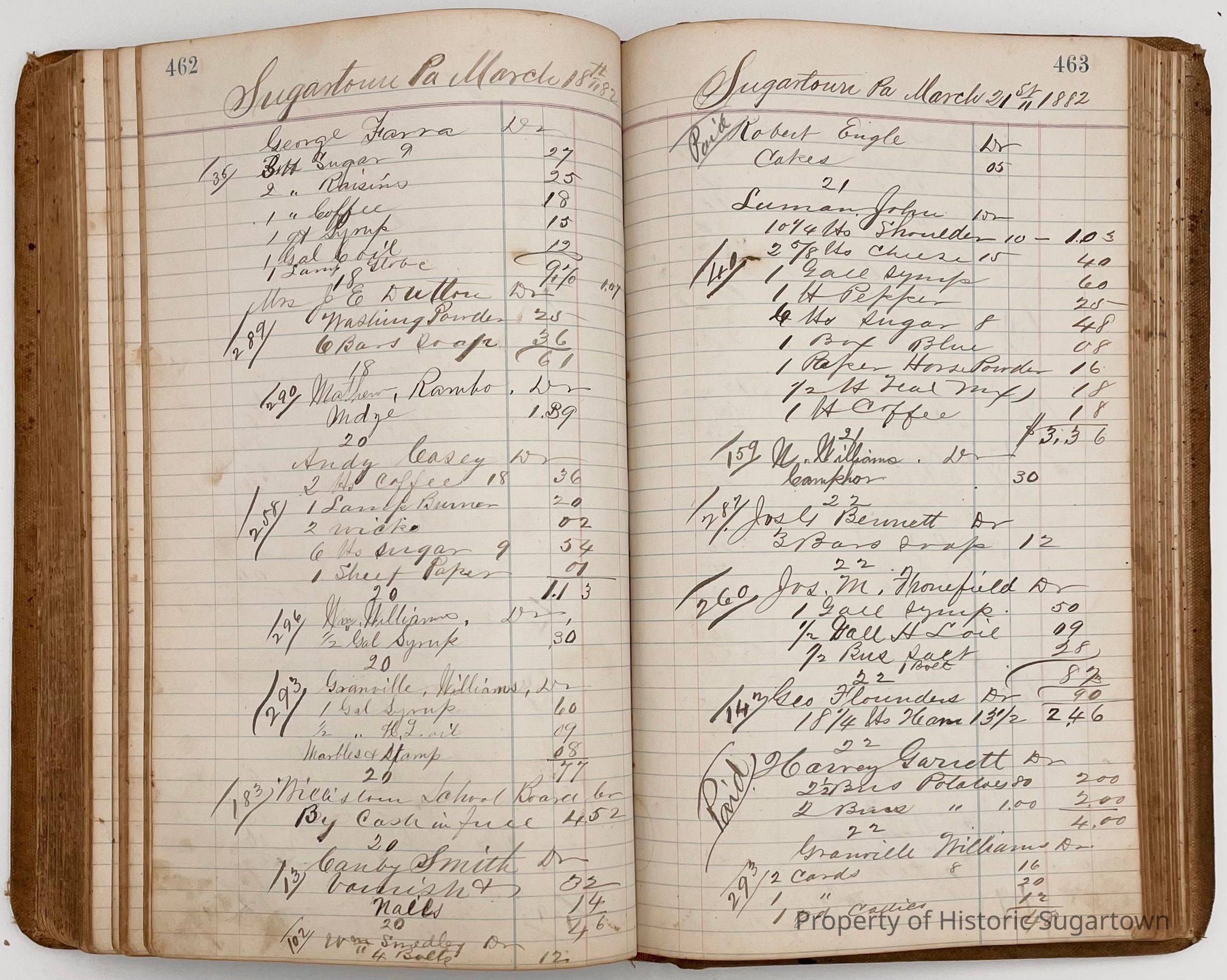 During the 1840s, Sharpless Worrall moved with his family to Sugartown in Willistown Township, Chester County, Pennsylvania, where he took over ownership of a general store and served as postmaster for 20 years. Upon his retirement, Worrall's son-in-law Hillery John took over the store, which he ran until his death. At that point it was taken over by Hillery's son, Clyde B. John, who eventually turned the business into an antiques shop. Worrall and John family papers and business records, 1830-1939, primarily consist of the business records of the general store under all three owners as well personal and family papers relating to the Worrall and John families.Context
