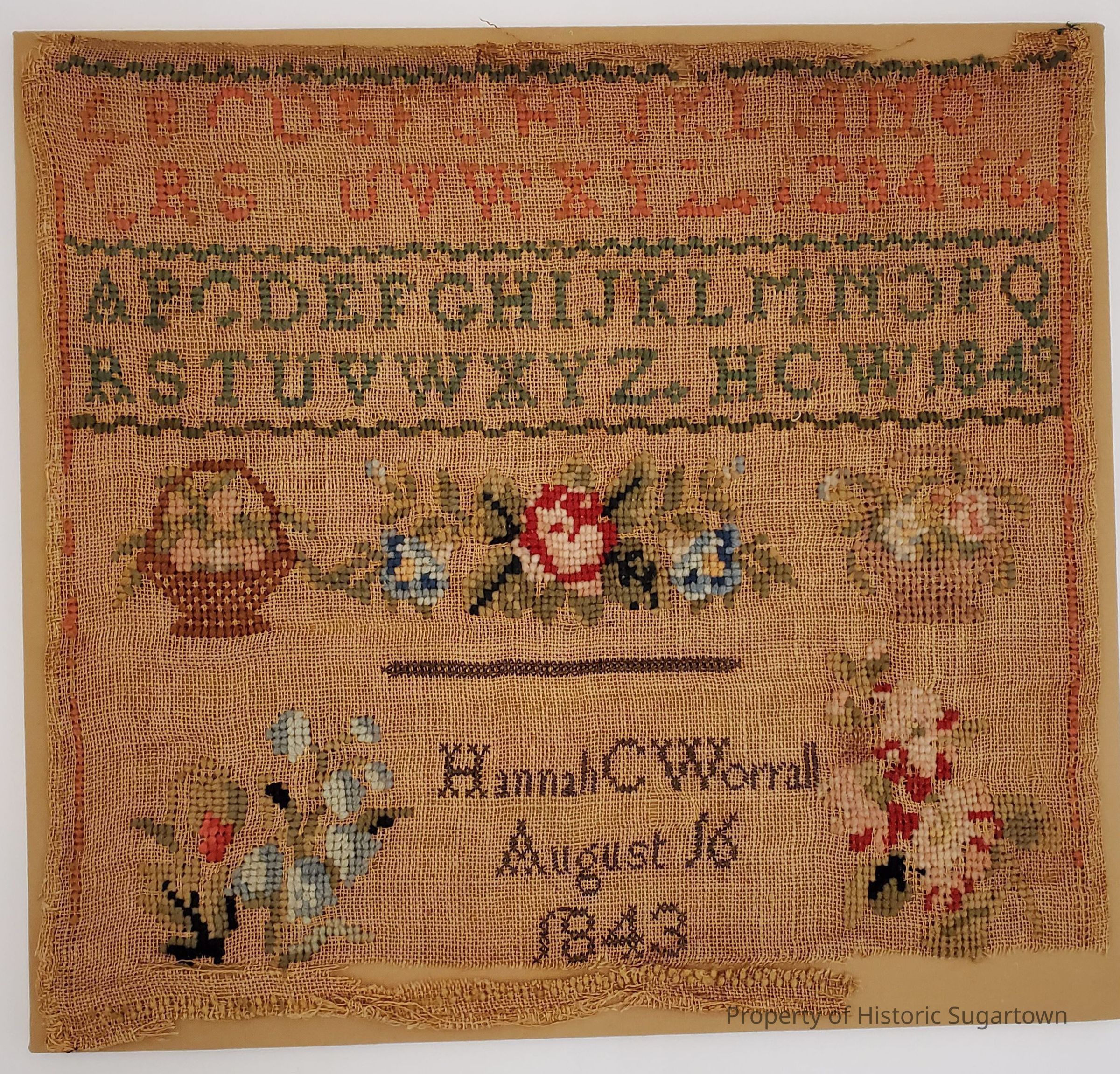 Hannah C. Worrall cross-stitch, 1843. Cross-stitch by a member of the Worrall Family 1843Collection
