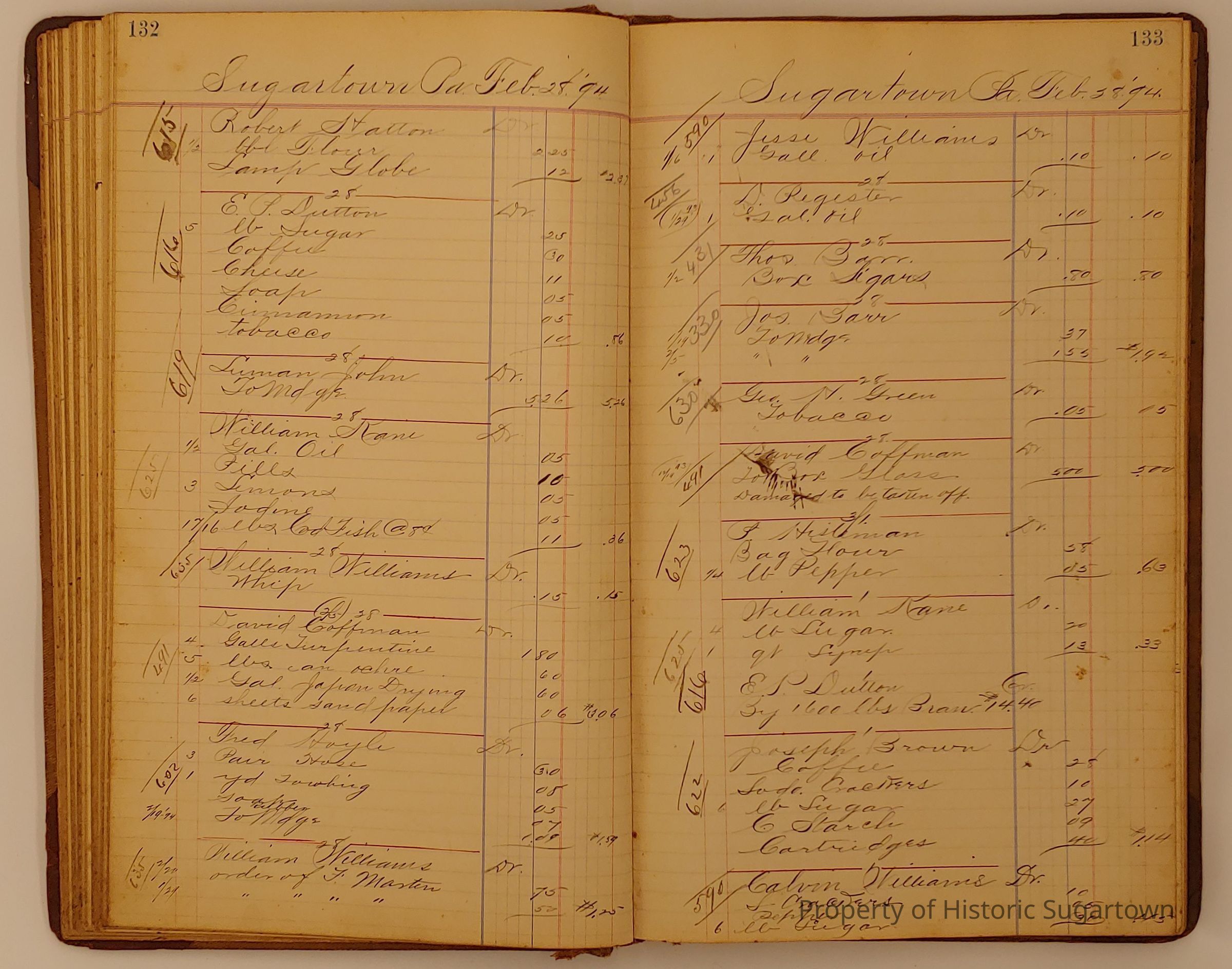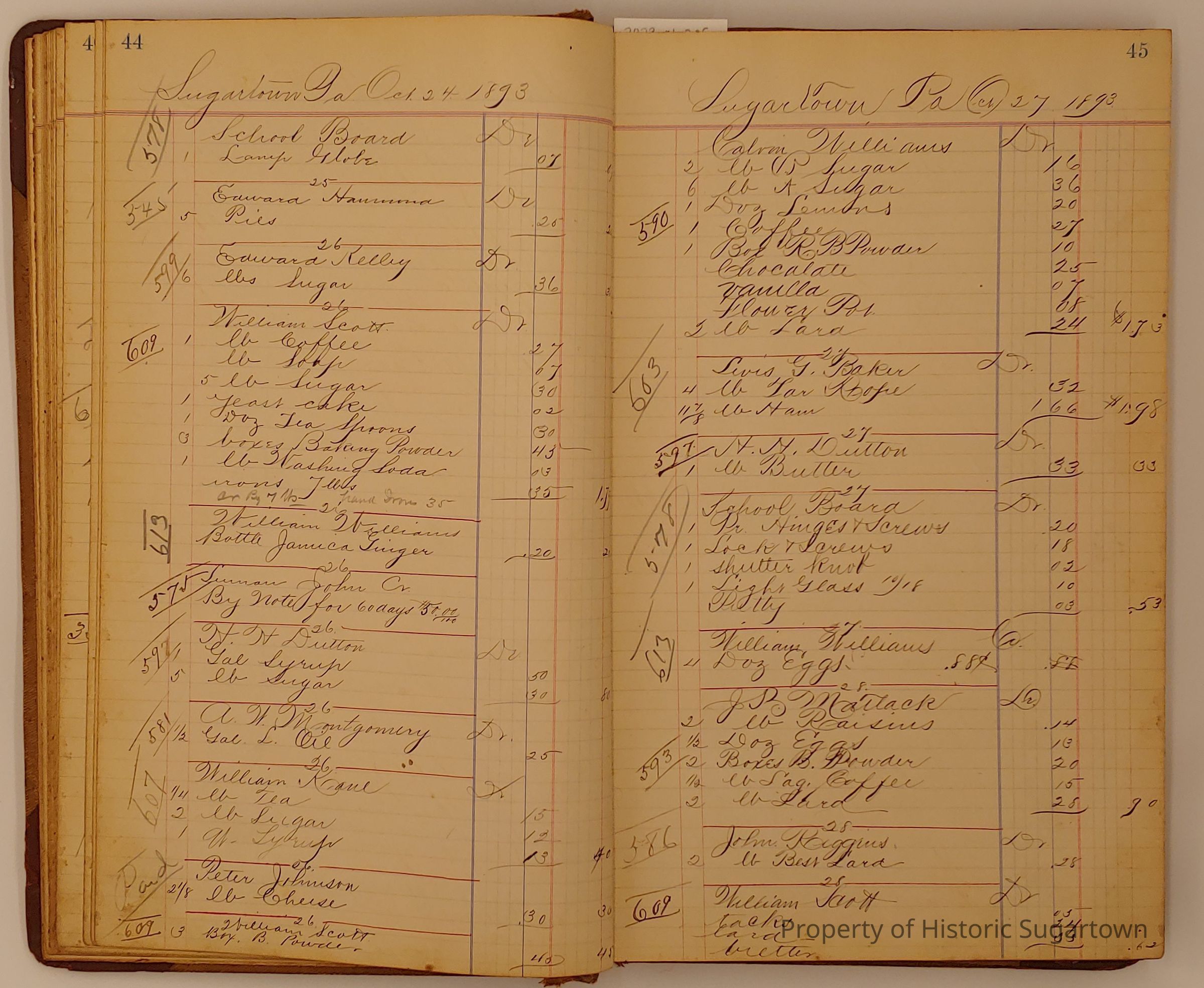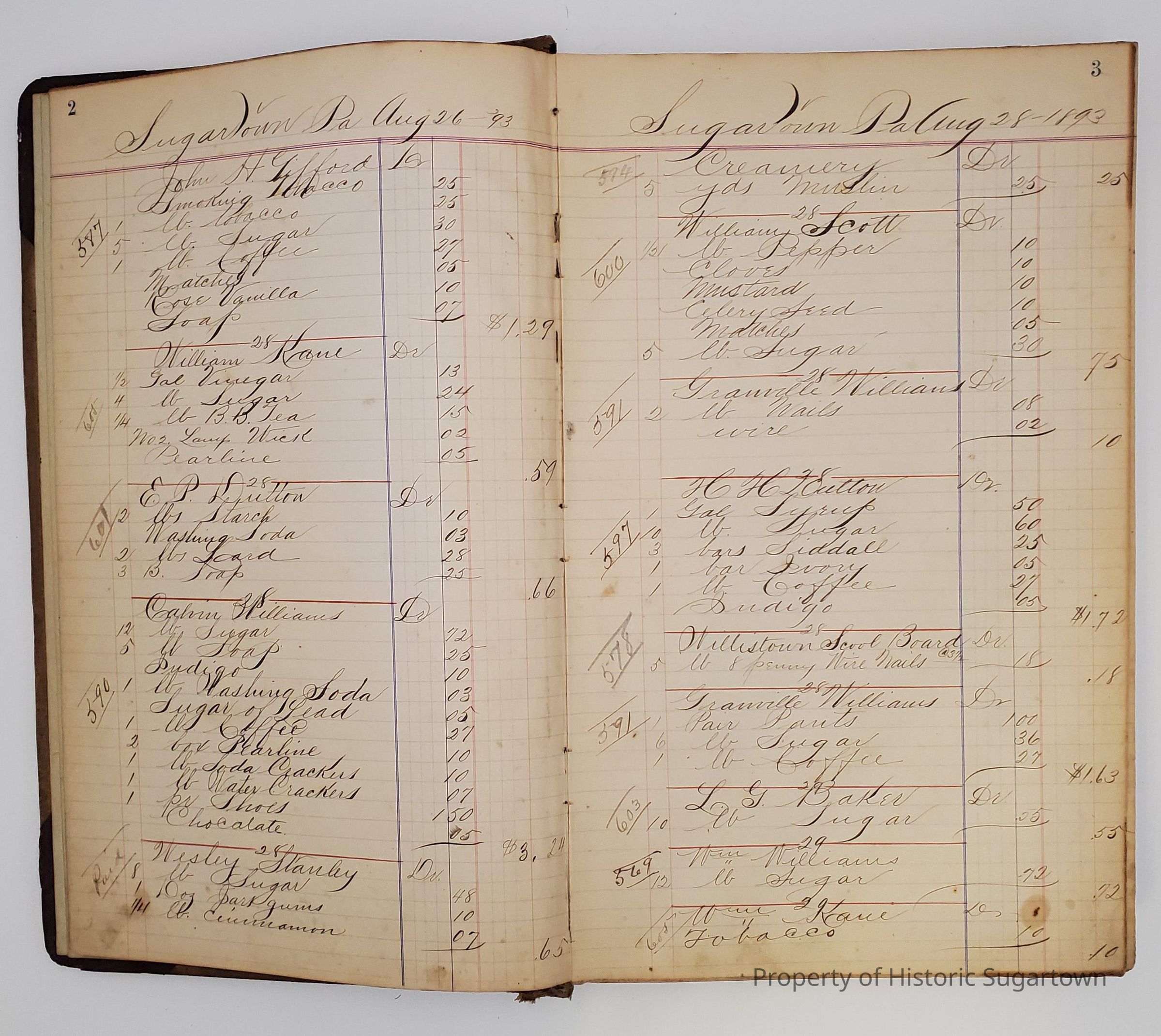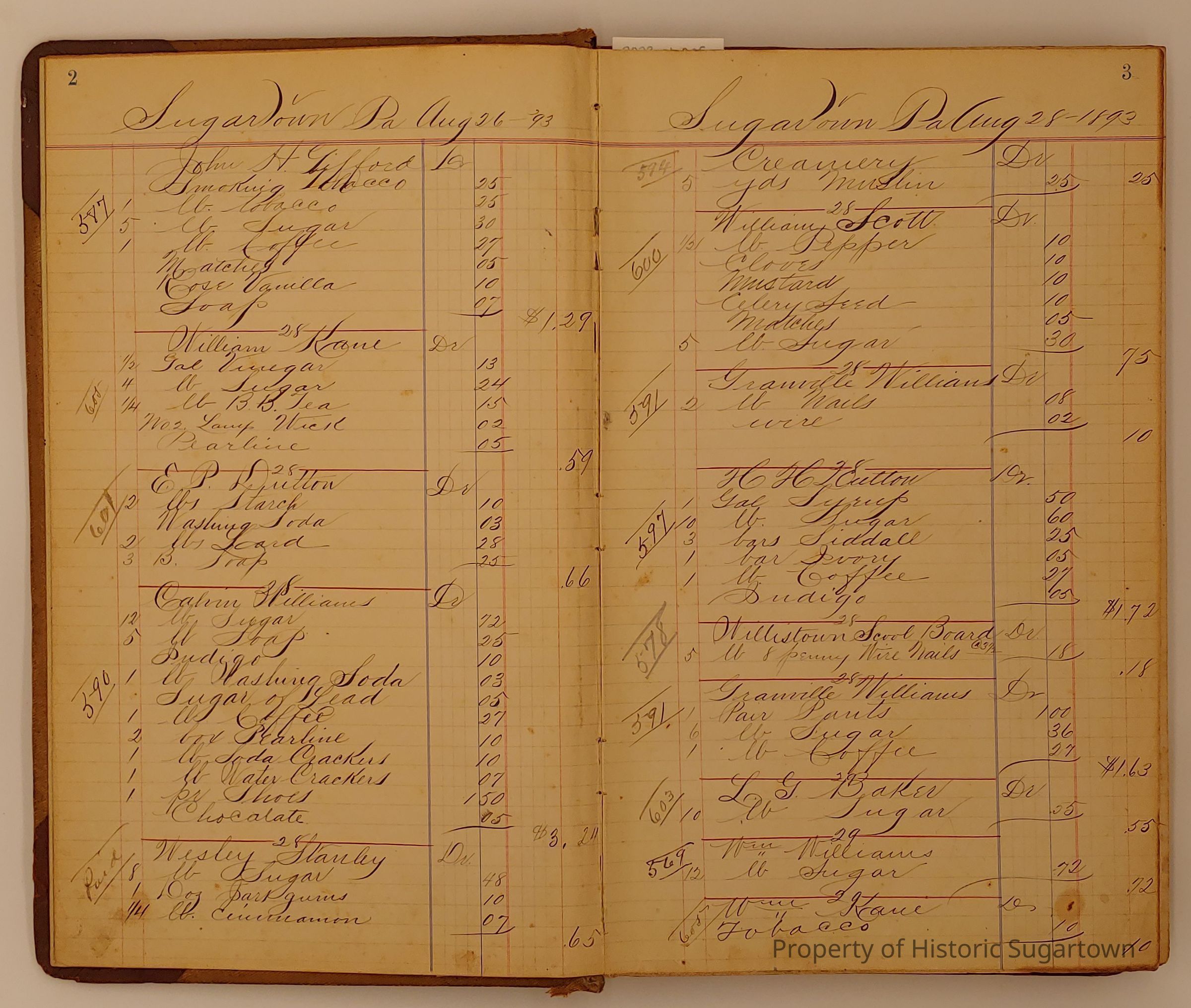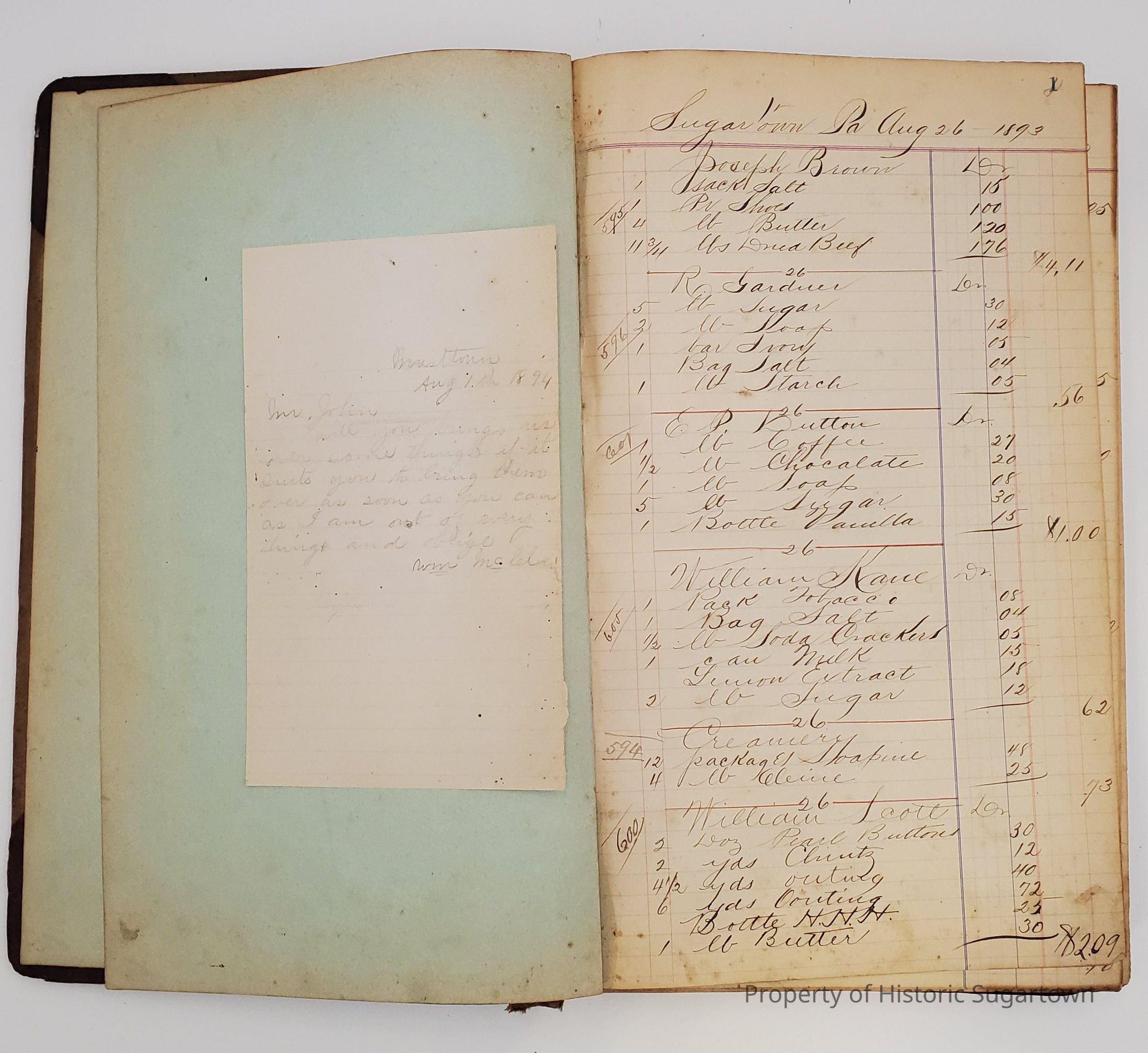 Hillery John Daybook 1893-1894 for General Store in Sugartown PA. Details sales records for general store, customers include local names that populate this archive.Collection