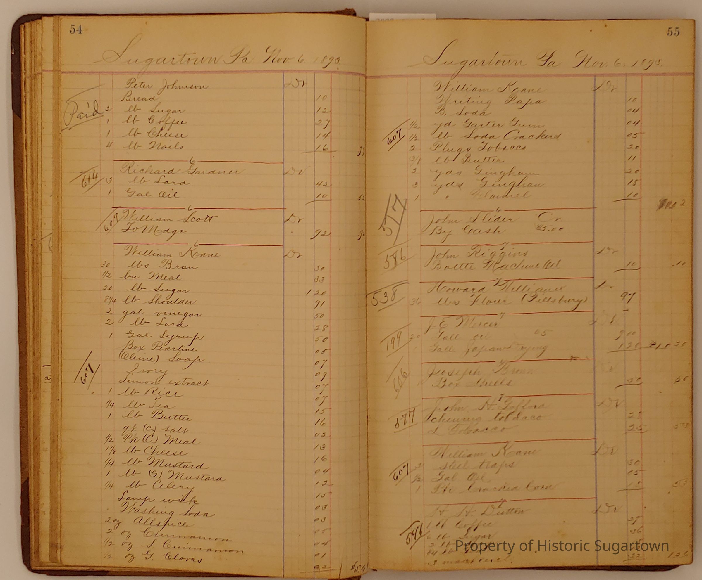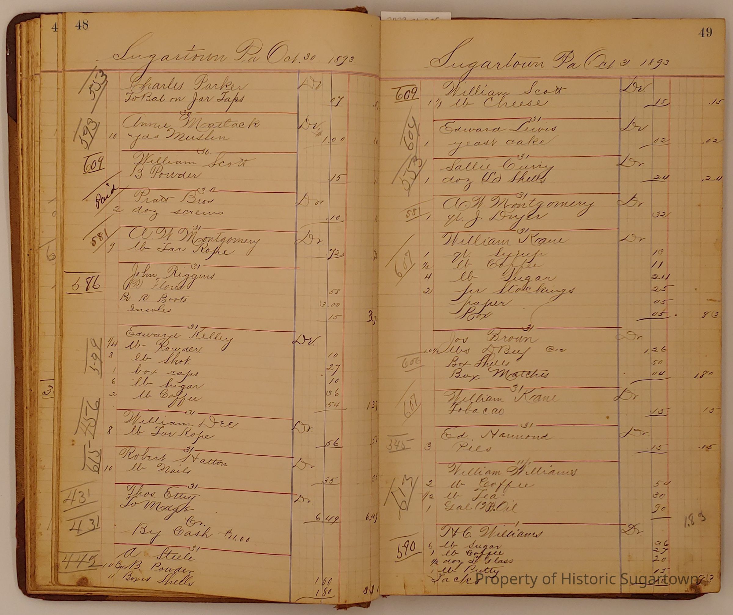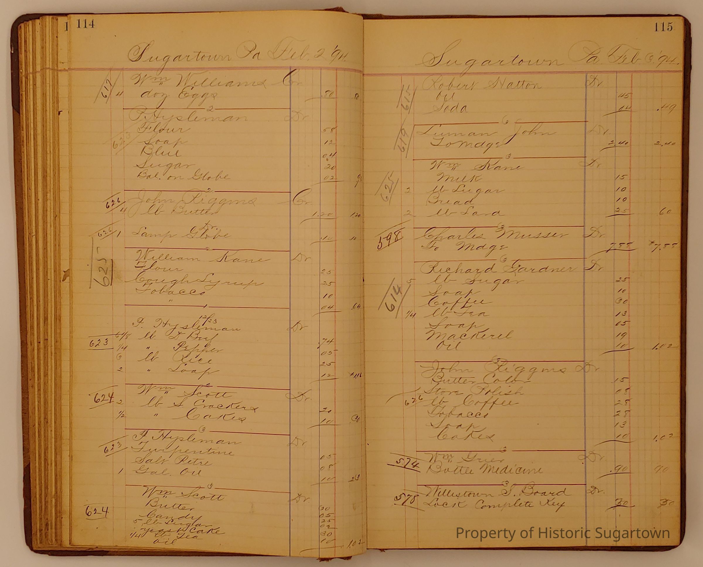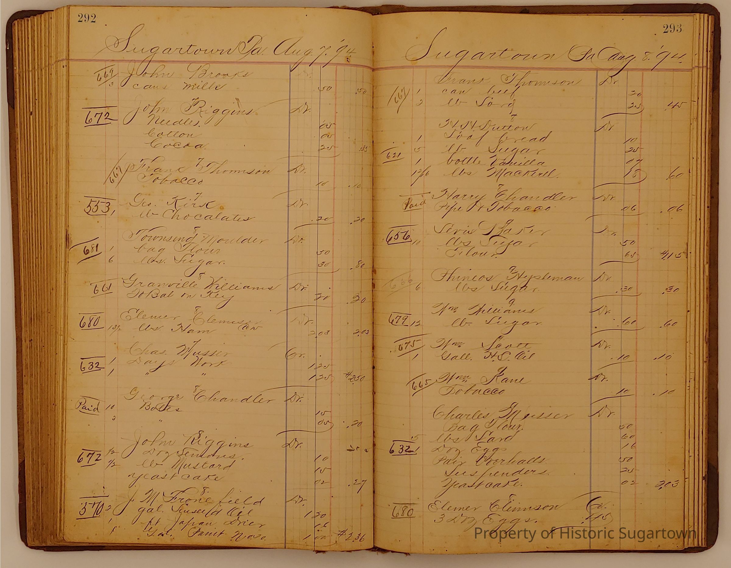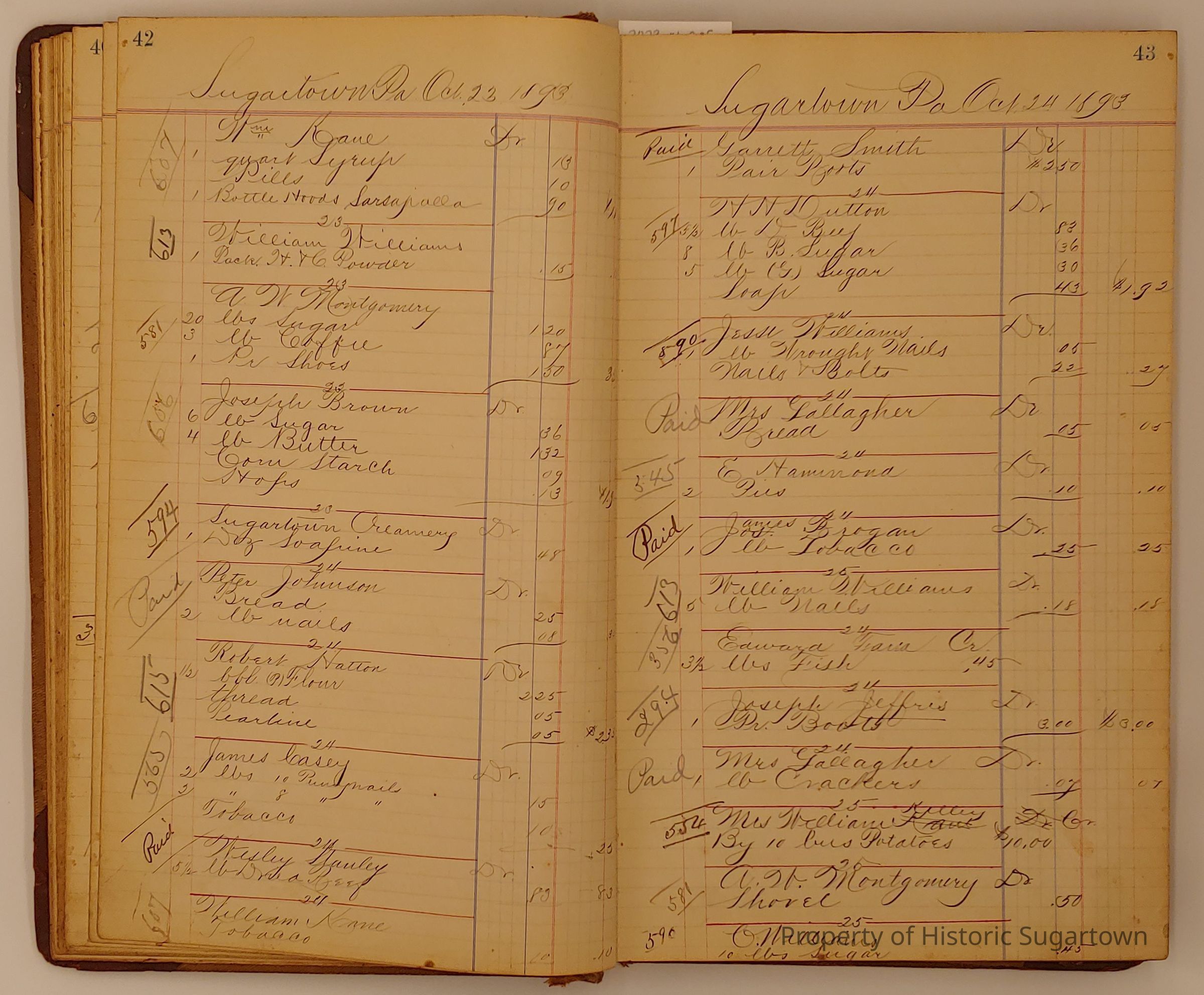 Hillery John Daybook 1893-1894 for General Store in Sugartown PA. Details sales records for general store, customers include local names that populate this archive.Collection