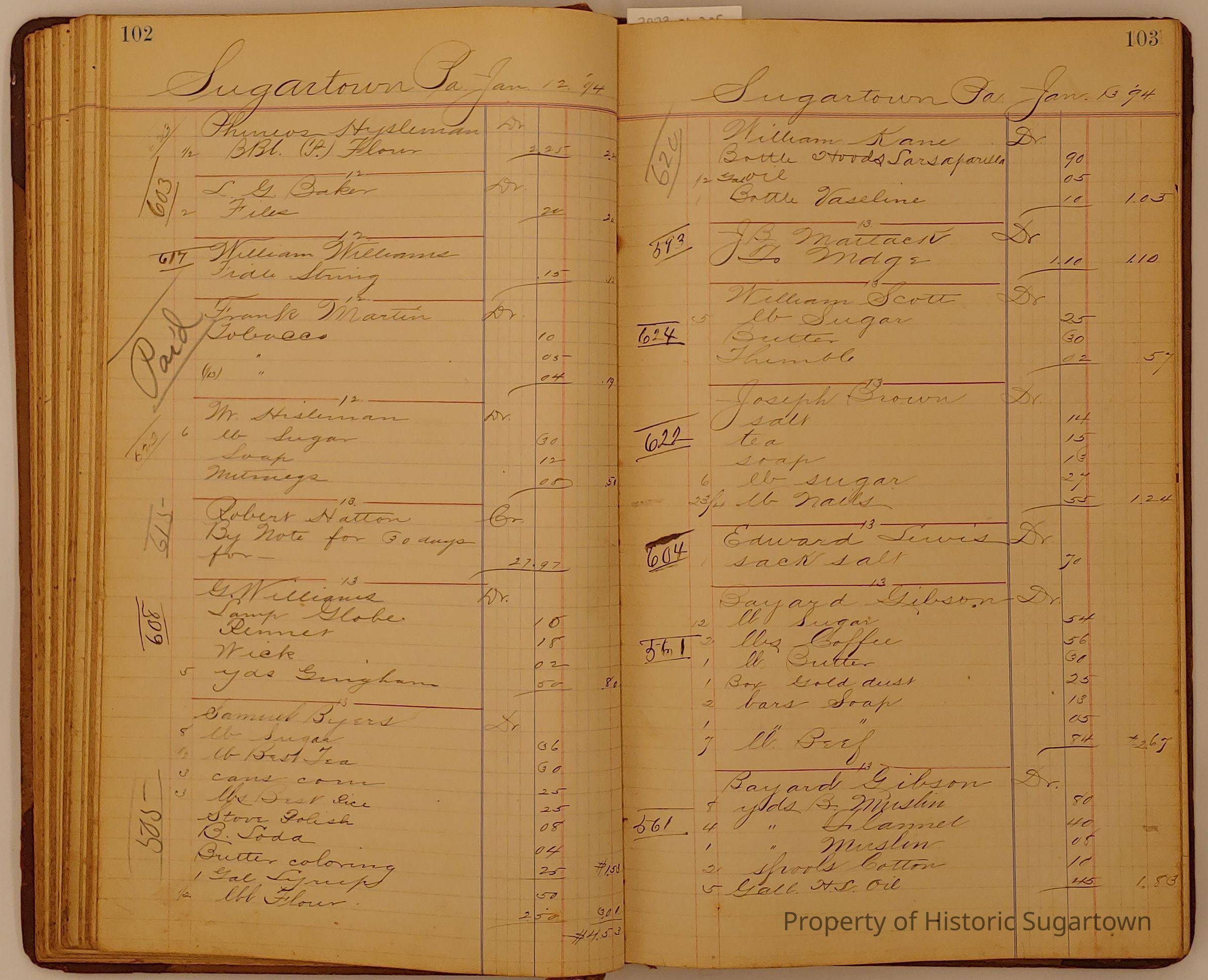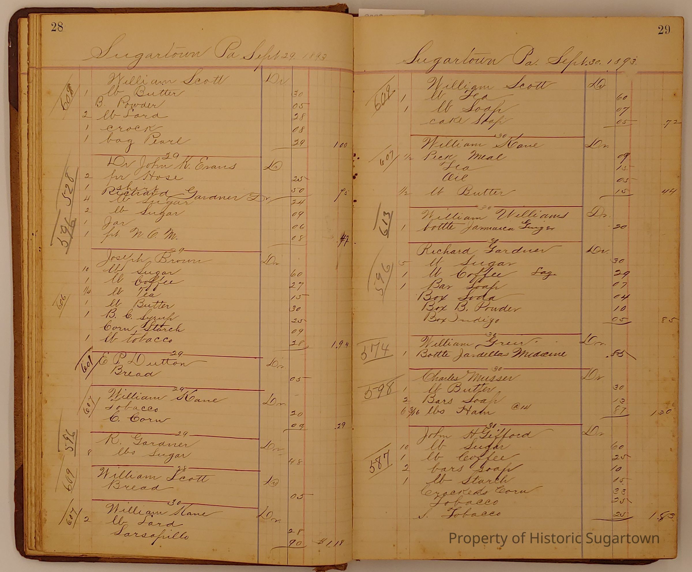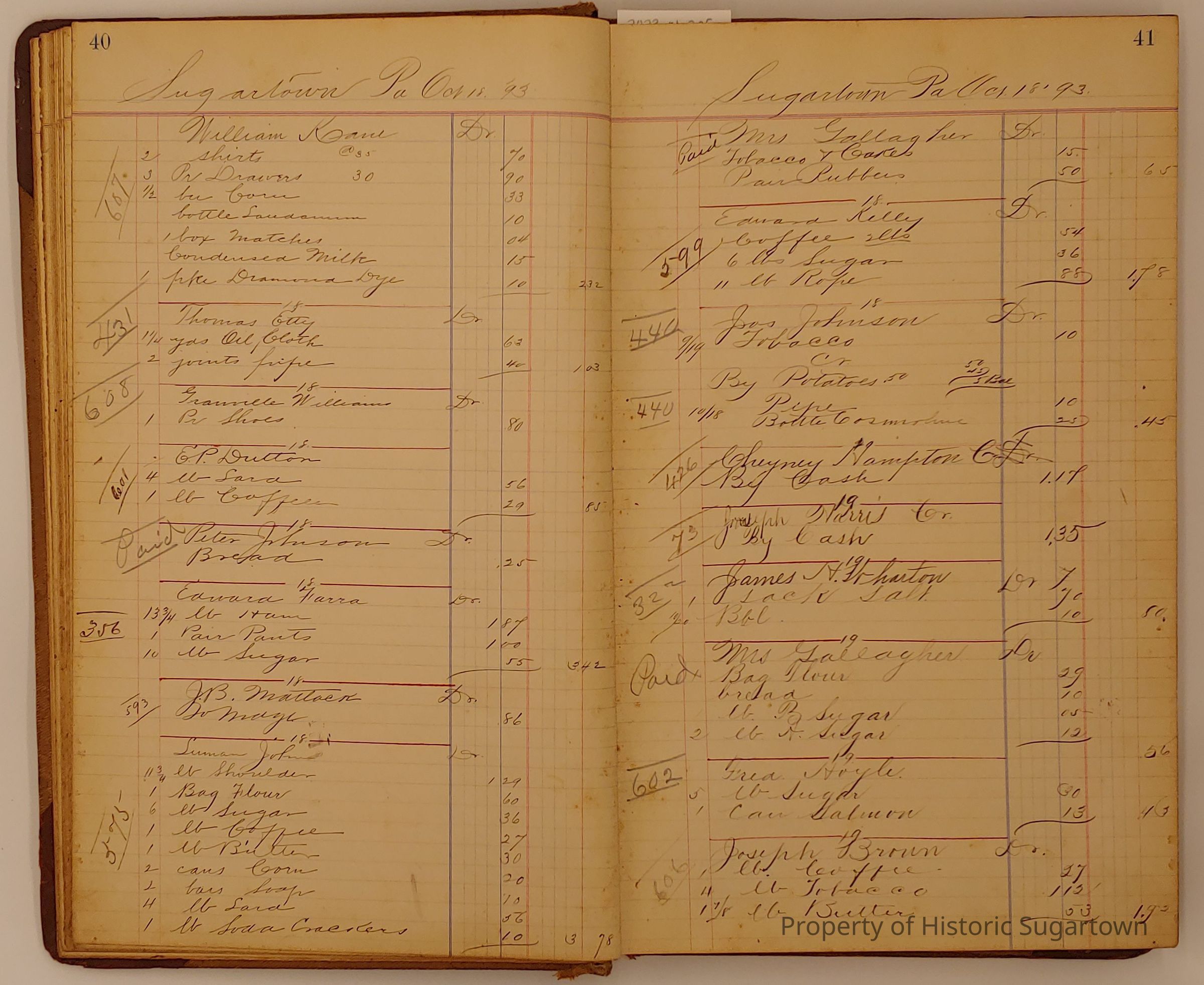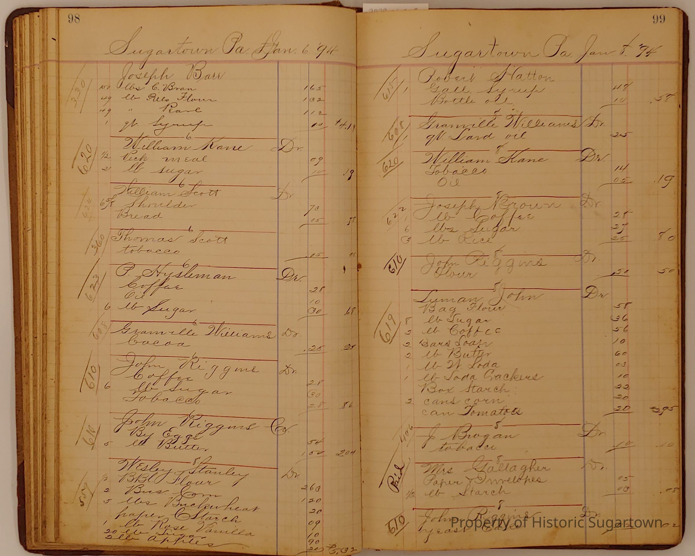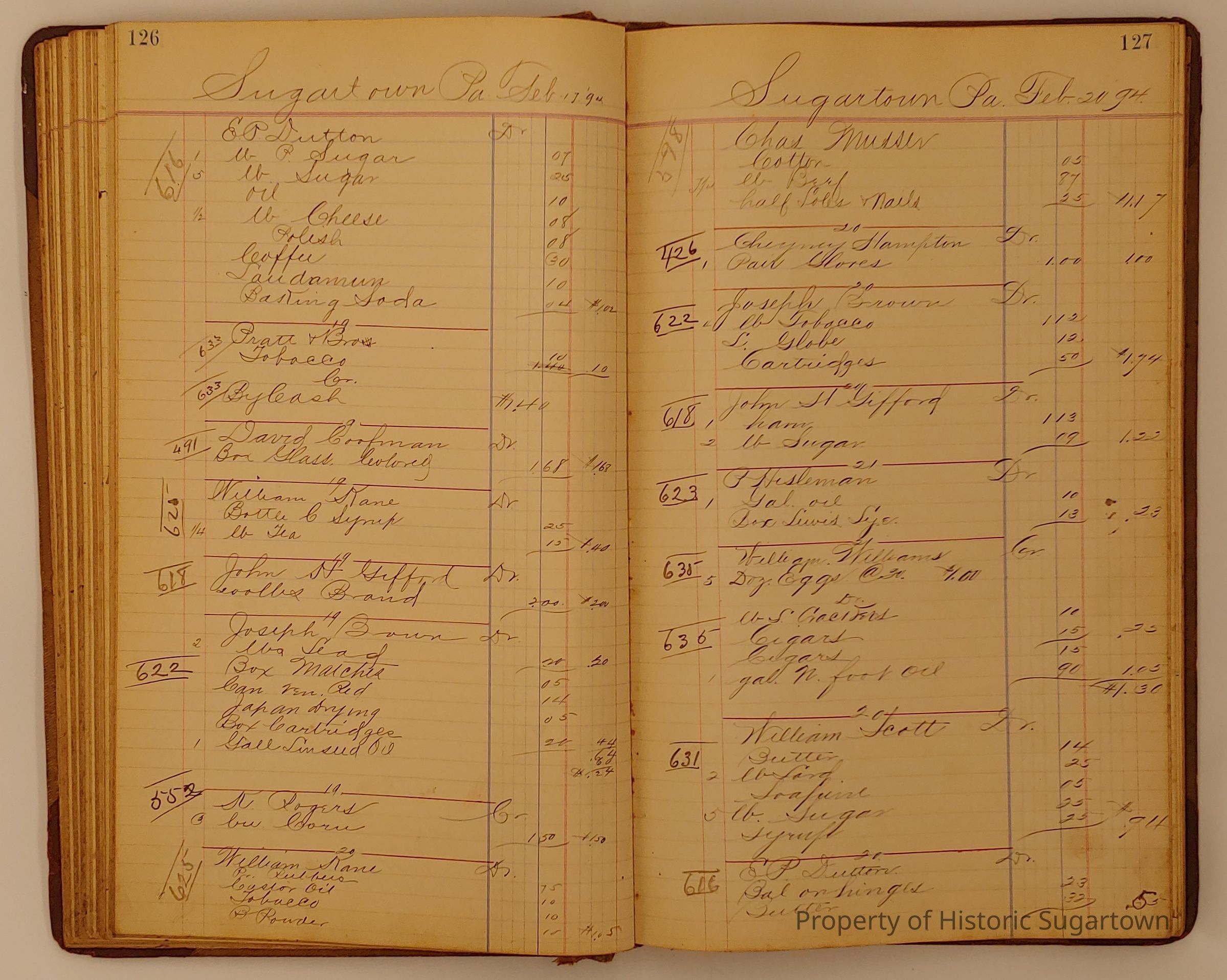 Hillery John Daybook 1893-1894 for General Store in Sugartown PA. Details sales records for general store, customers include local names that populate this archive.Collection
