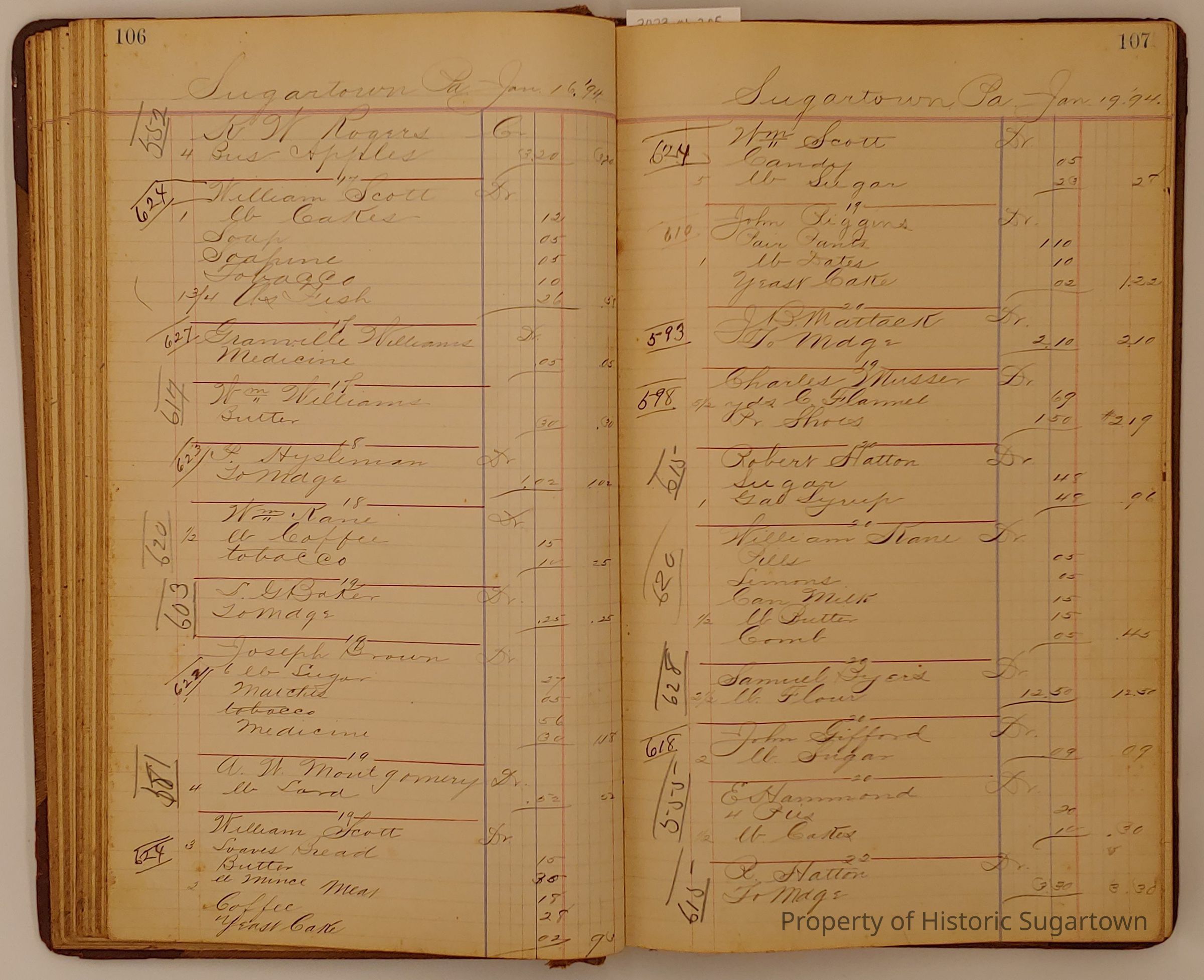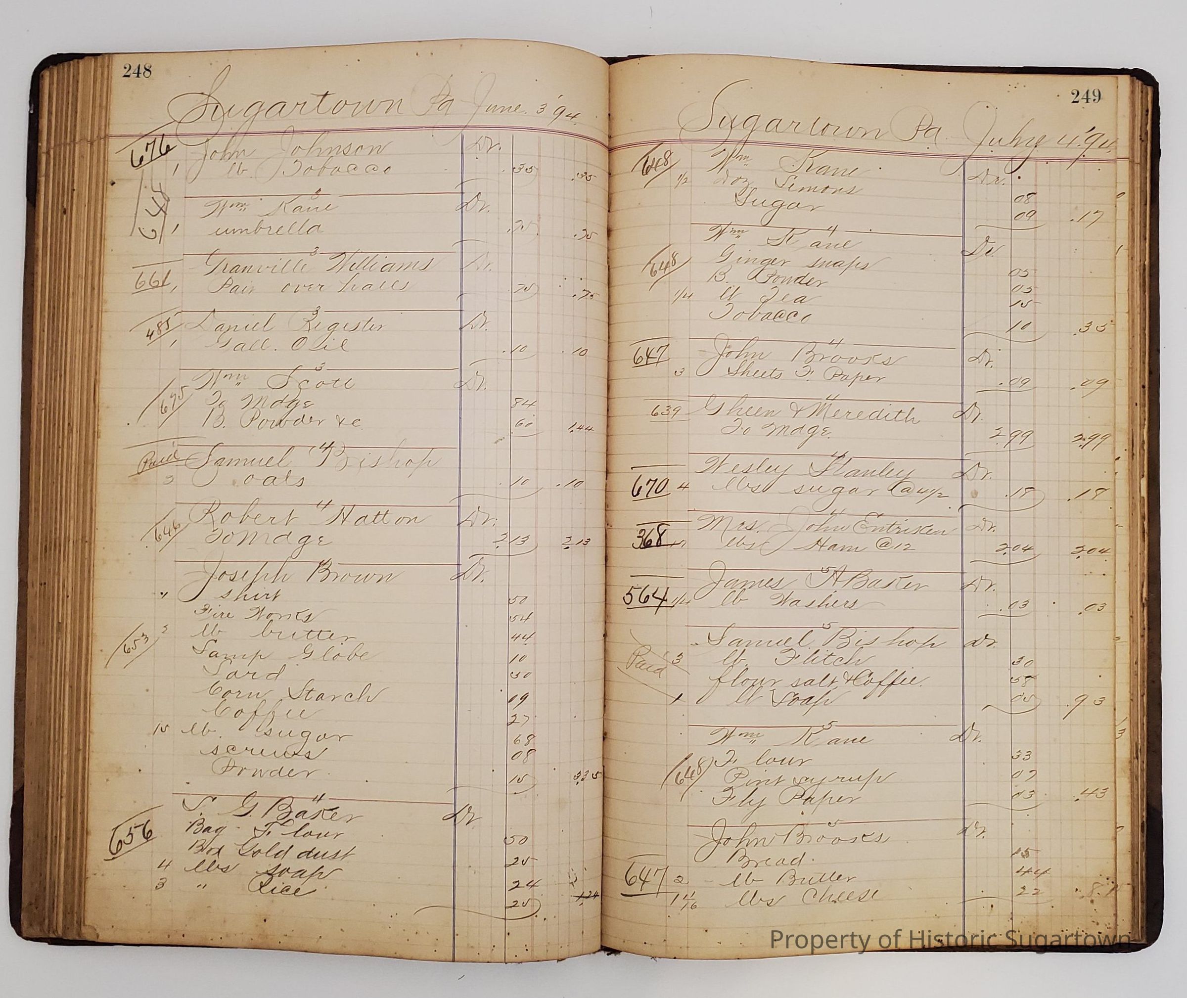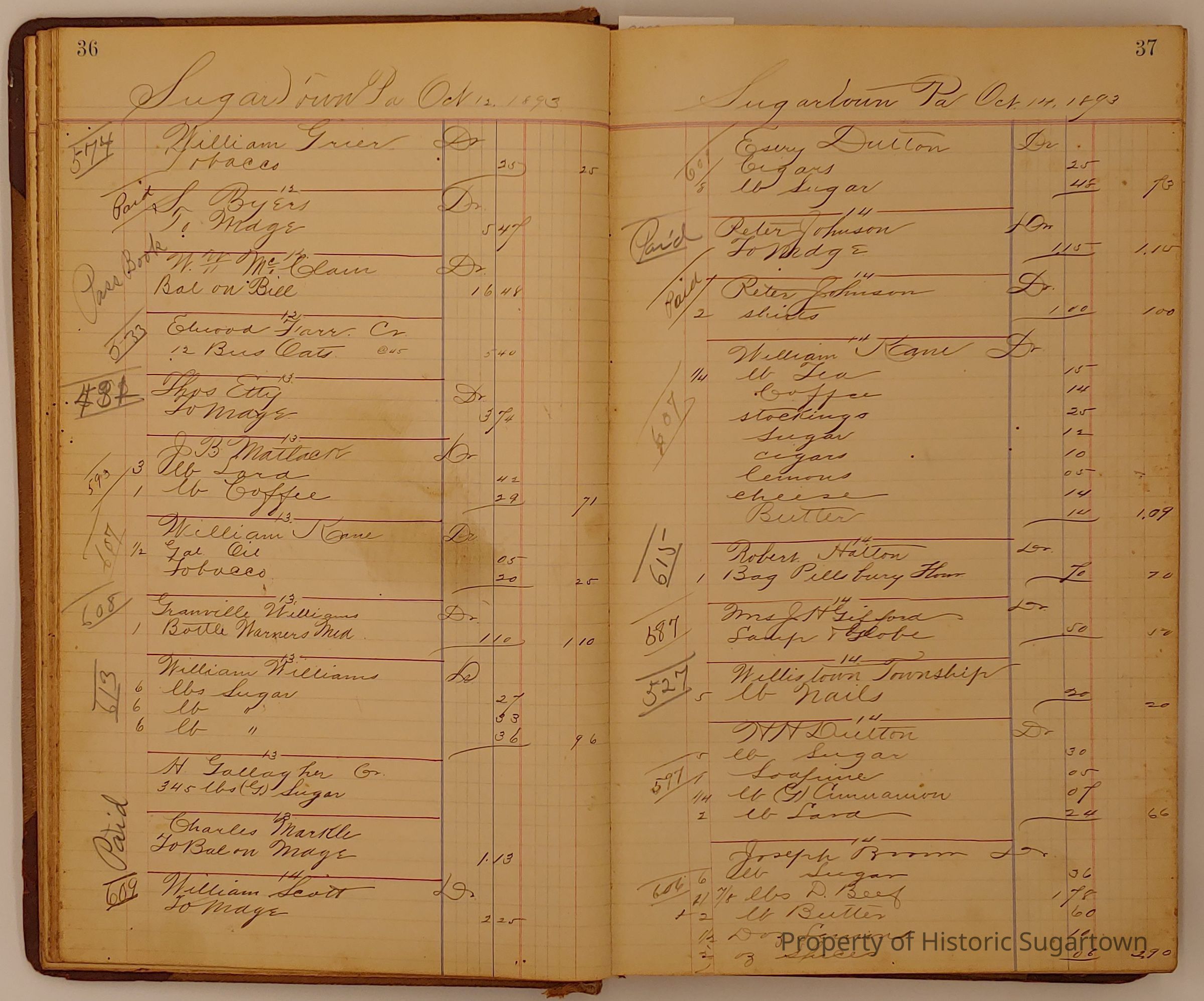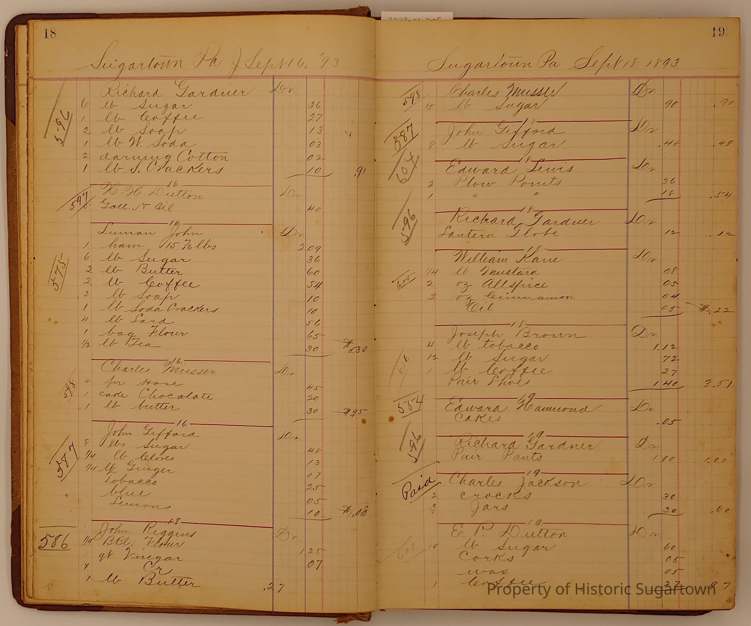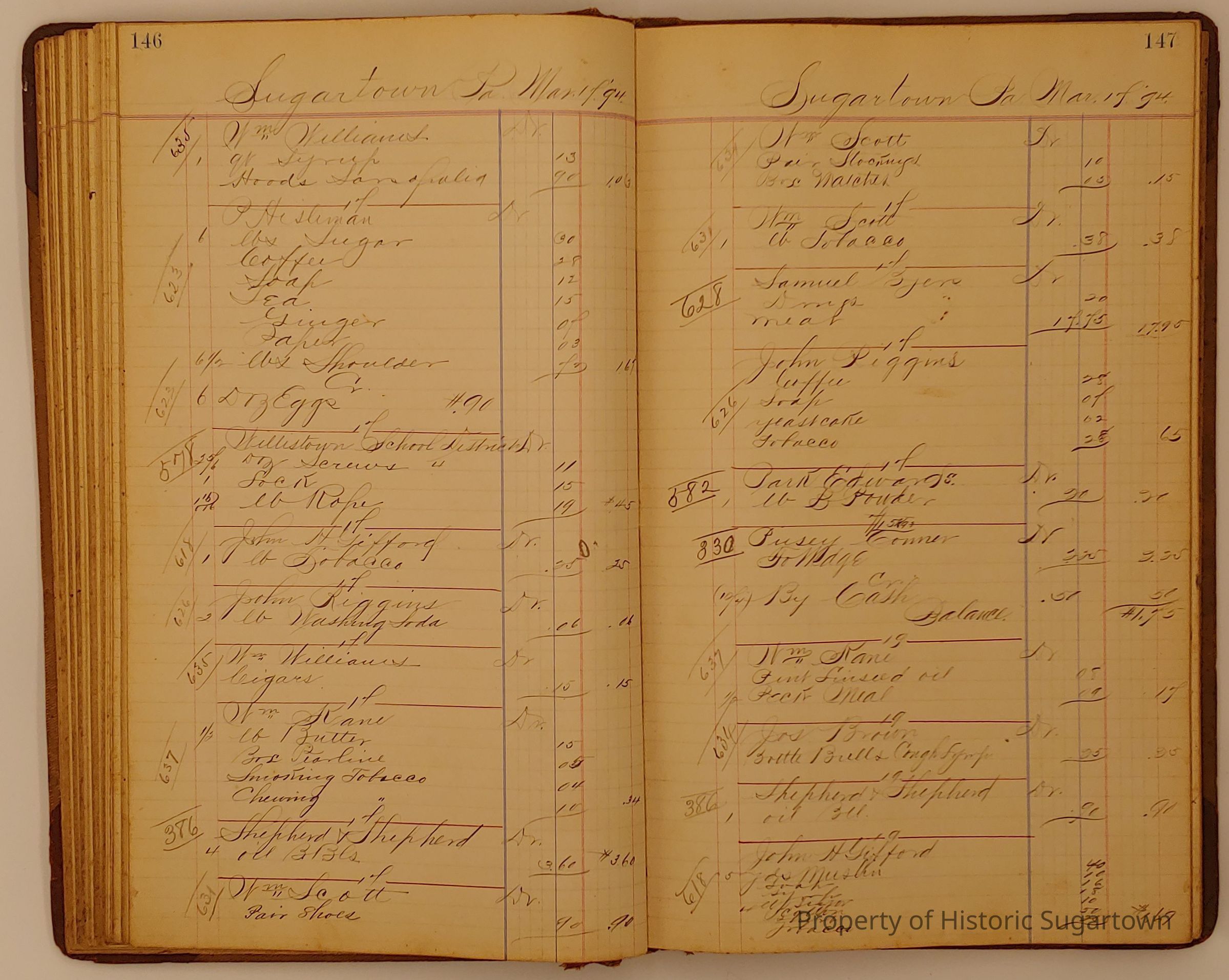 Hillery John Daybook 1893-1894 for General Store in Sugartown PA. Details sales records for general store, customers include local names that populate this archive.Collection