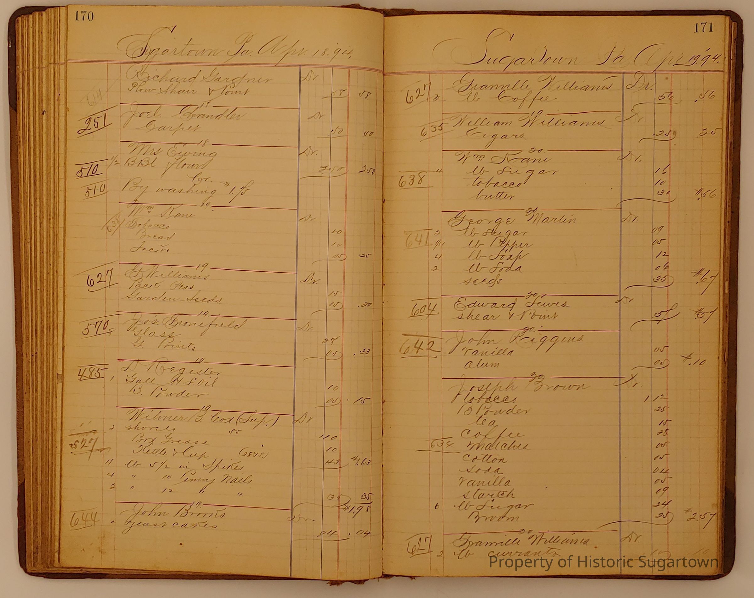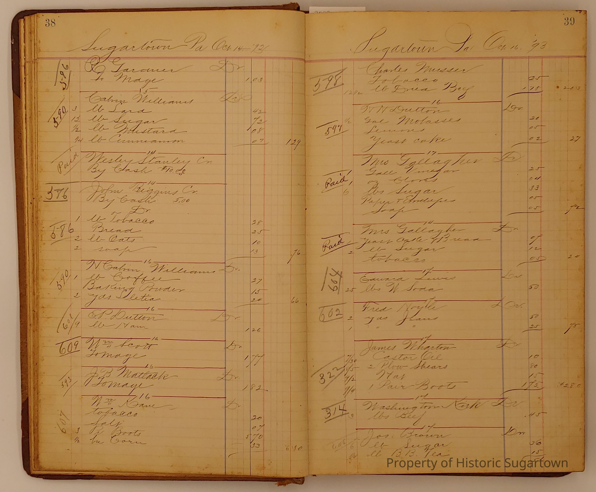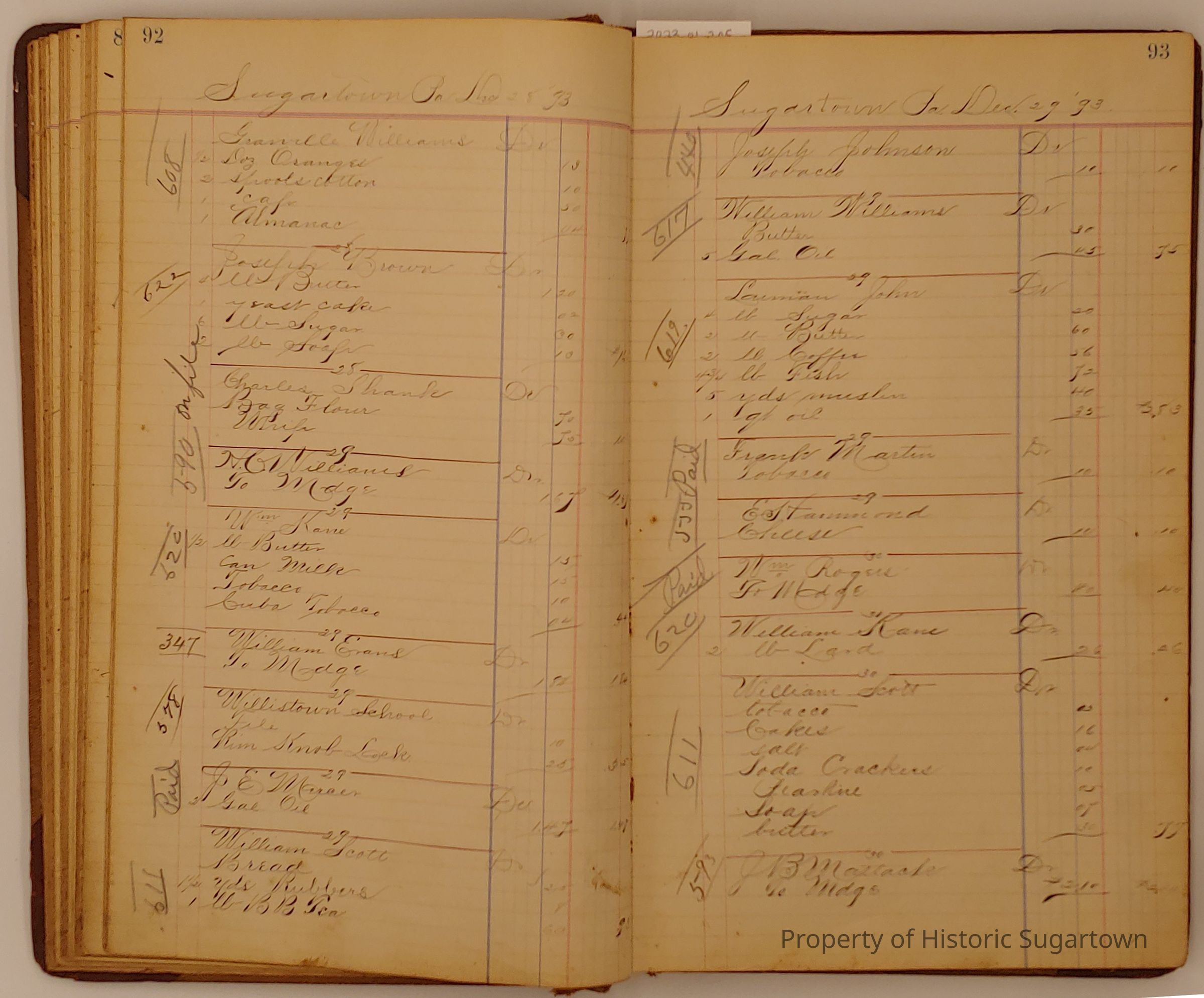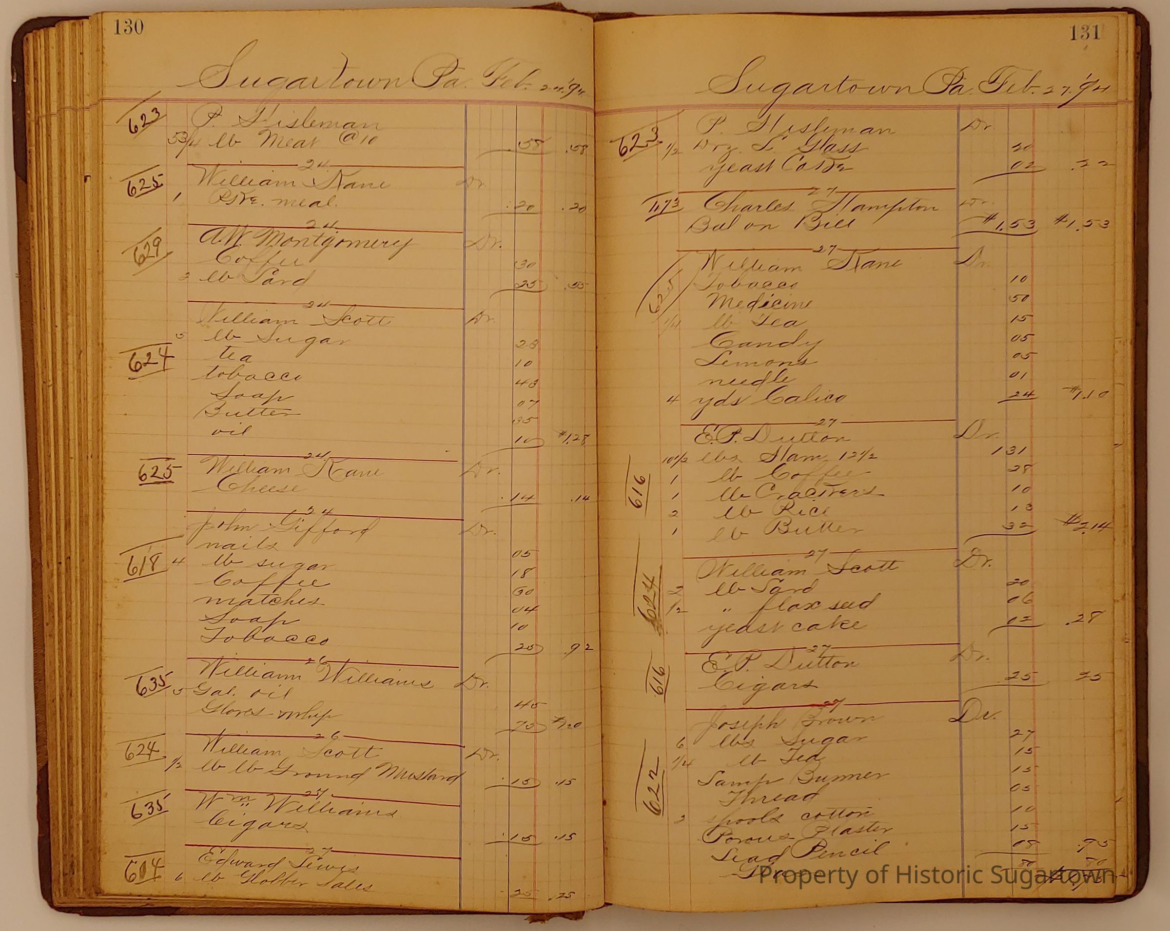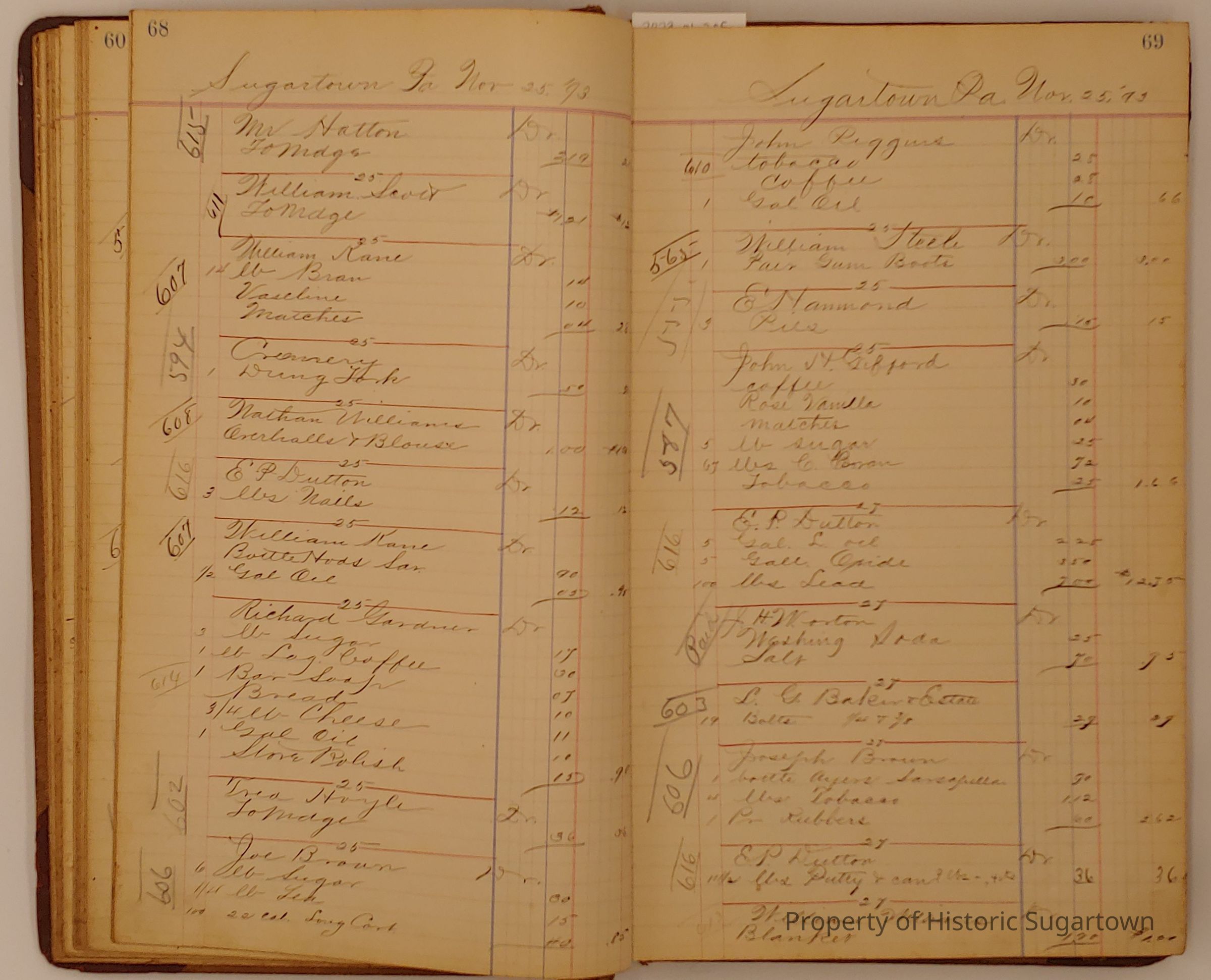 Hillery John Daybook 1893-1894 for General Store in Sugartown PA. Details sales records for general store, customers include local names that populate this archive.Collection
