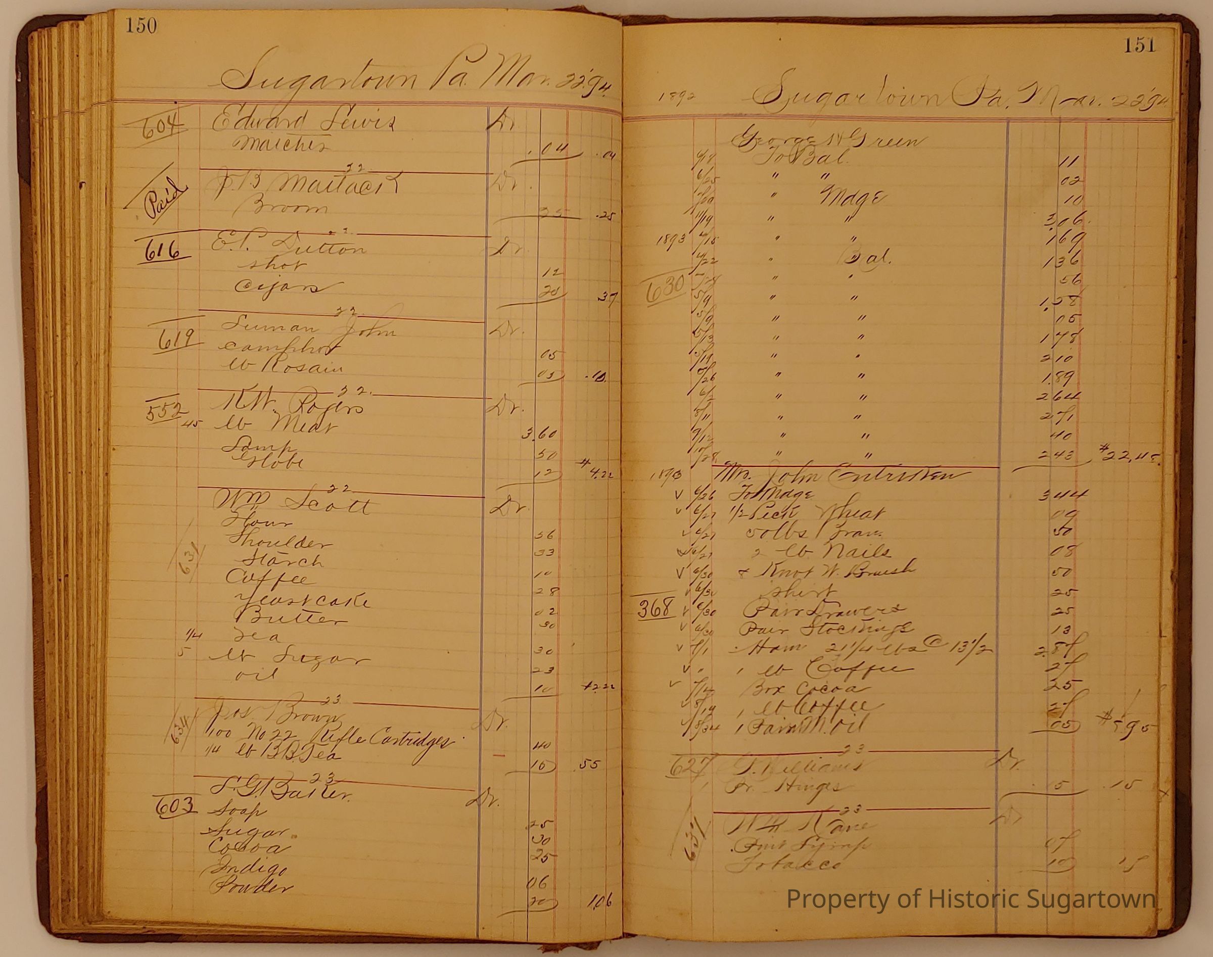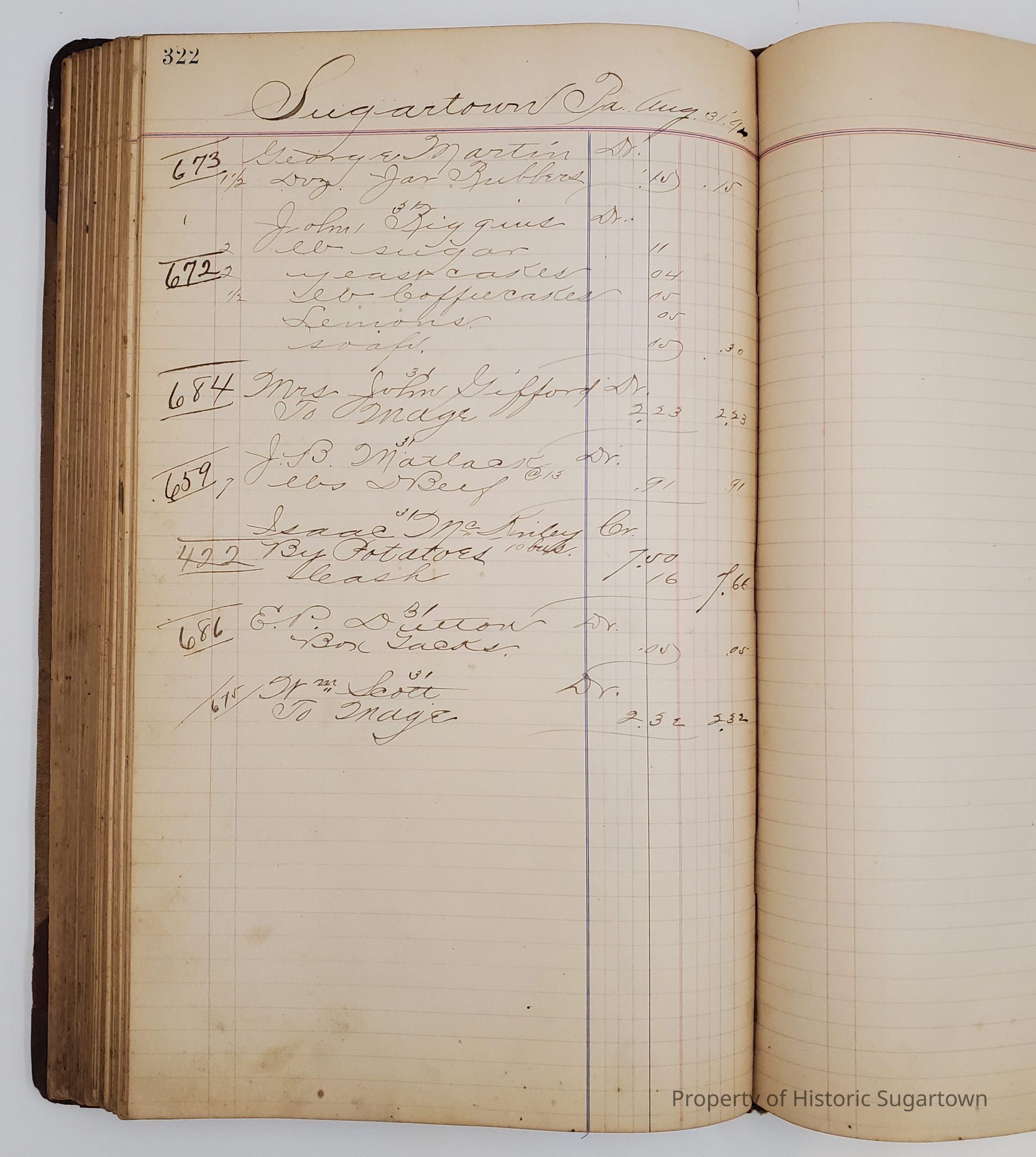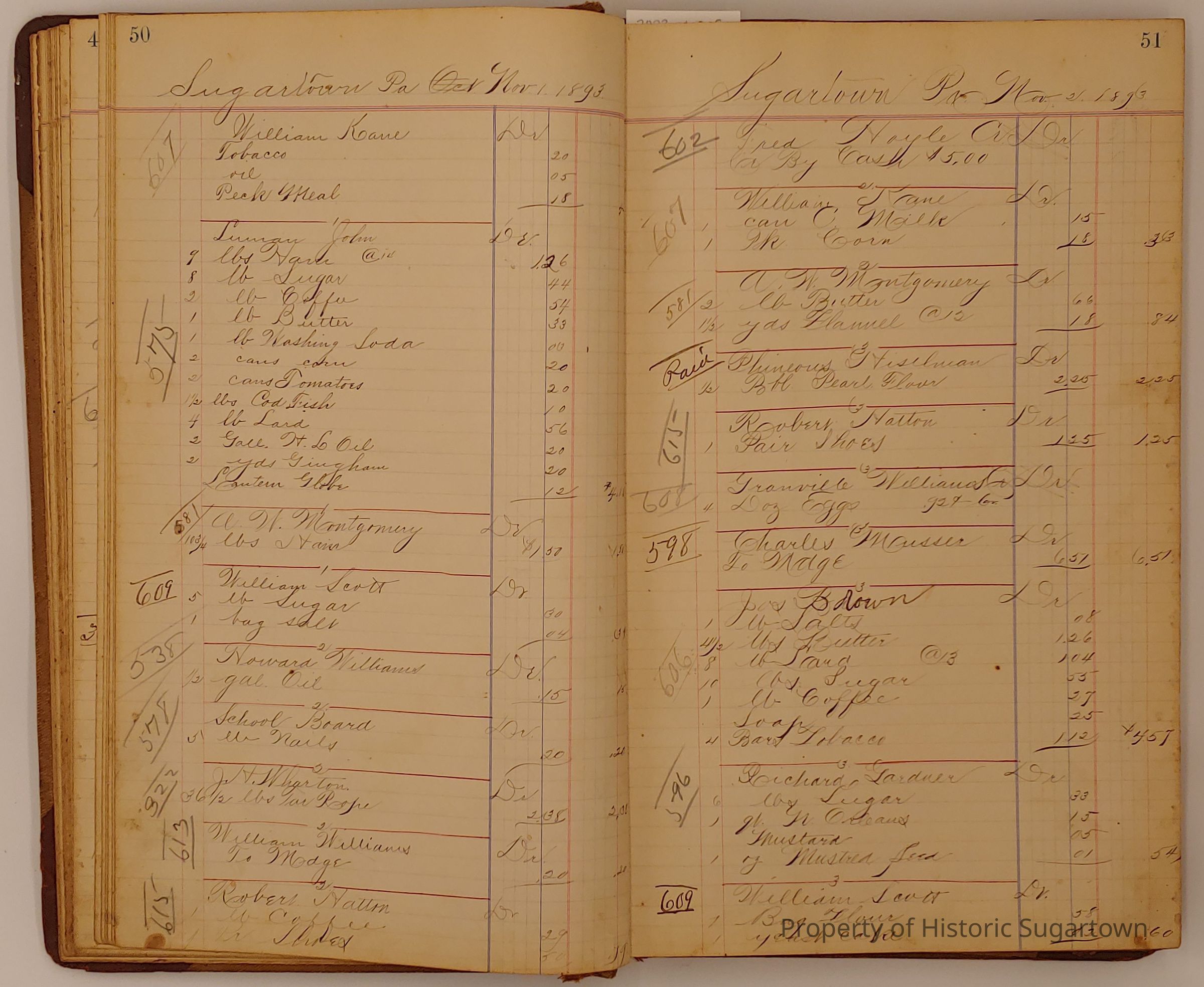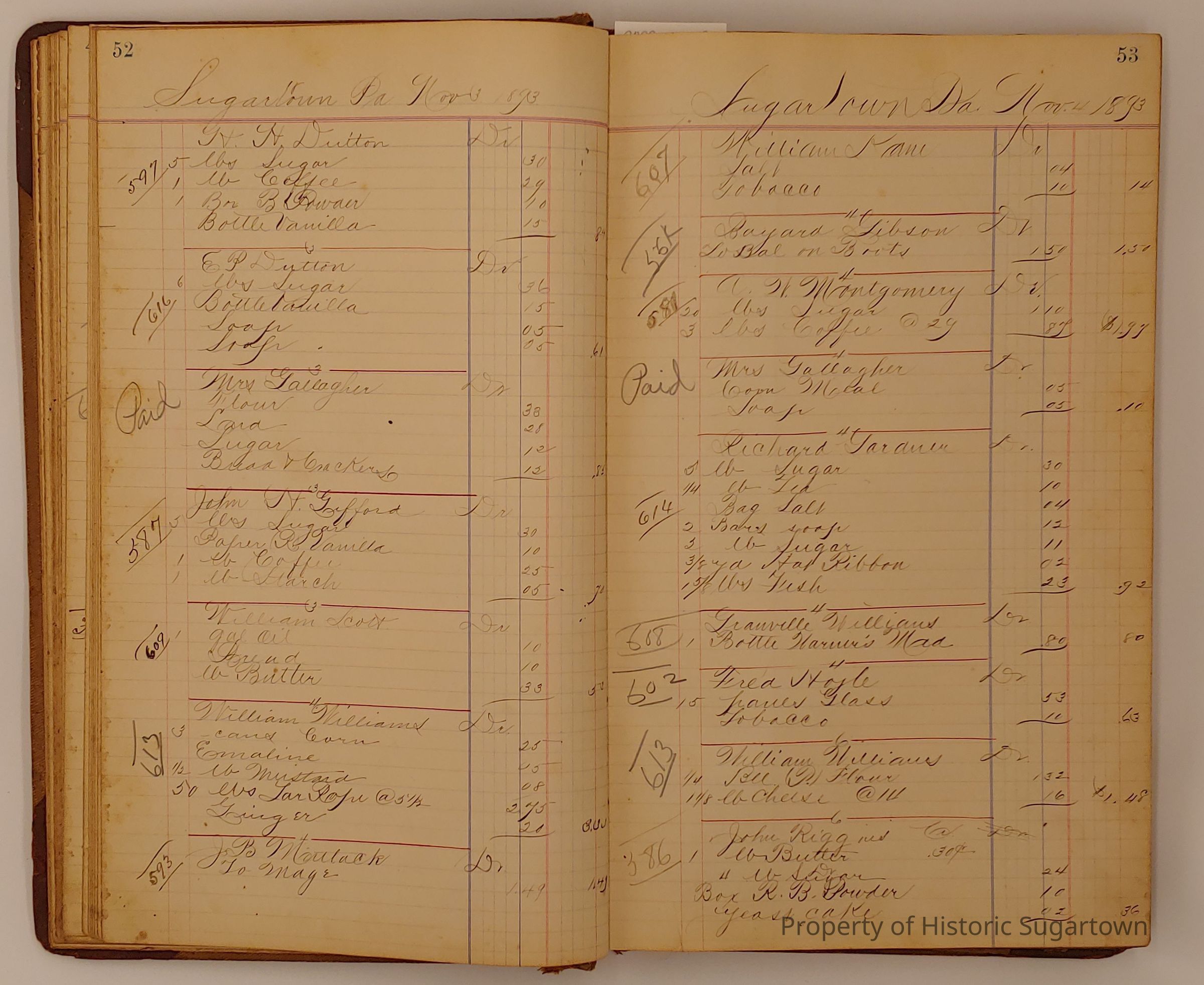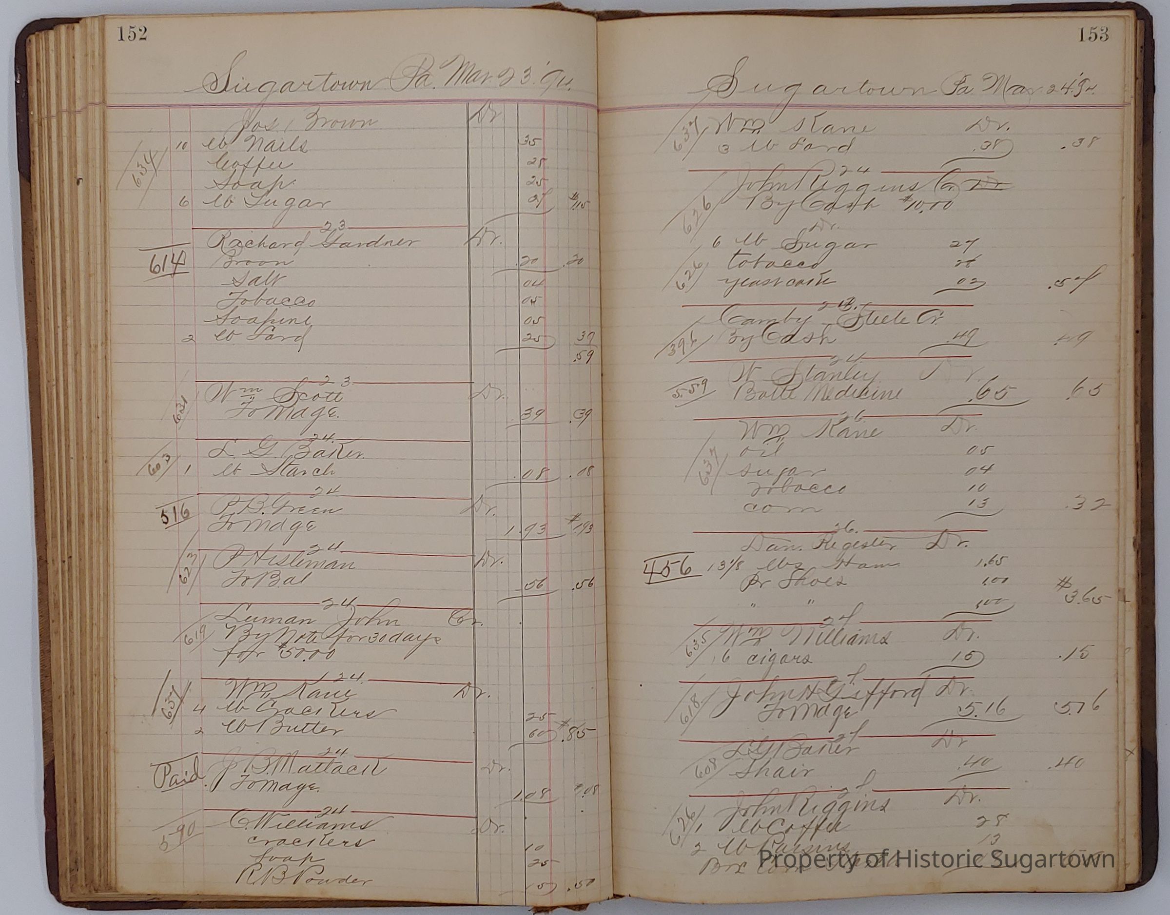 Hillery John Daybook 1893-1894 for General Store in Sugartown PA. Details sales records for general store, customers include local names that populate this archive.Collection