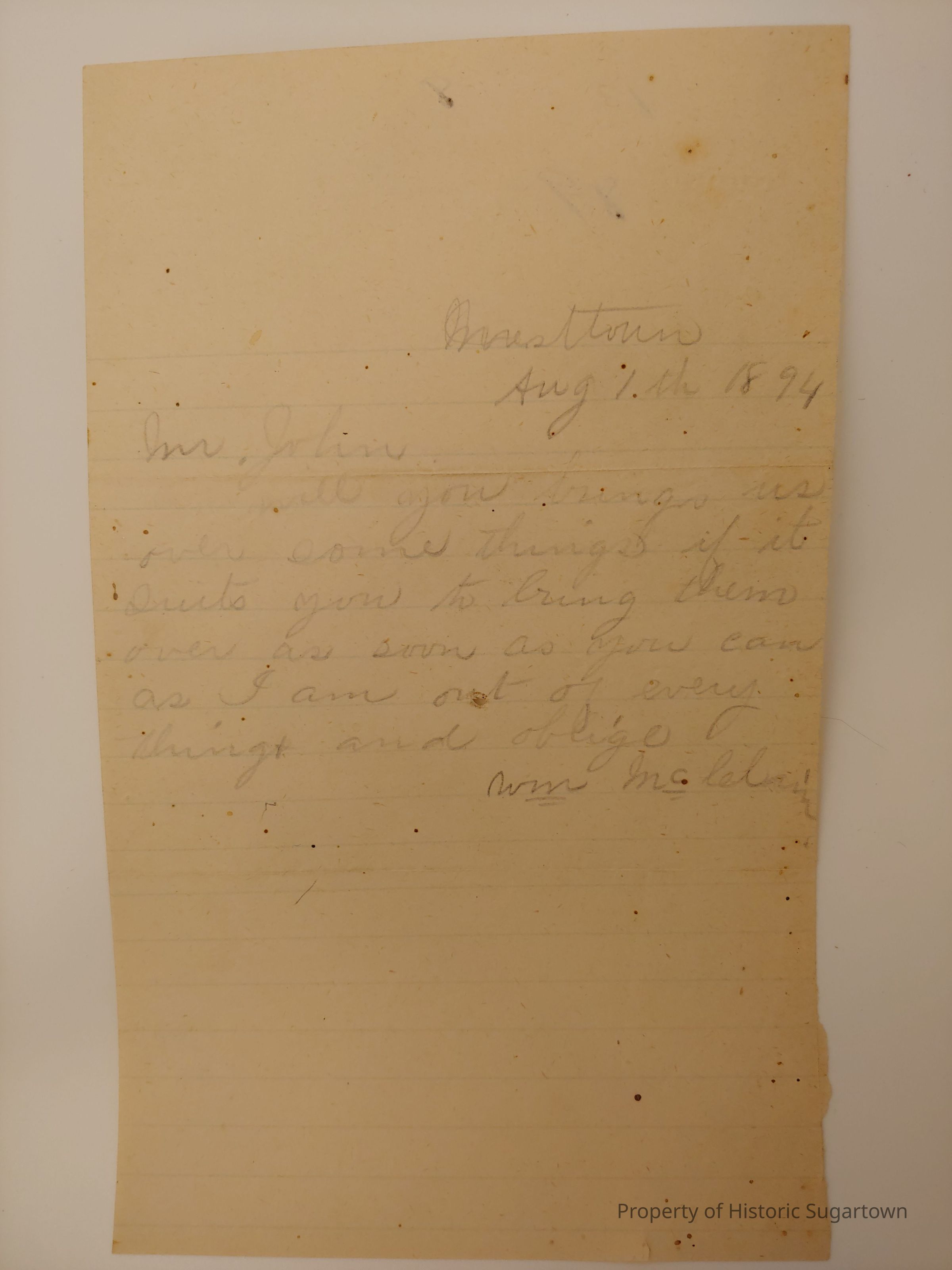 During the 1840s, Sharpless Worrall moved with his family to Sugartown in Willistown Township, Chester County, Pennsylvania, where he took over ownership of a general store and served as postmaster for 20 years. Upon his retirement, Worrall's son-in-law Hillery John took over the store, which he ran until his death. At that point it was taken over by Hillery's son, Clyde B. John, who eventually turned the business into an antiques shop. Worrall and John family papers and business records, 1830-1939, primarily consist of the business records of the general store under all three owners as well personal and family papers relating to the Worrall and John families.Context