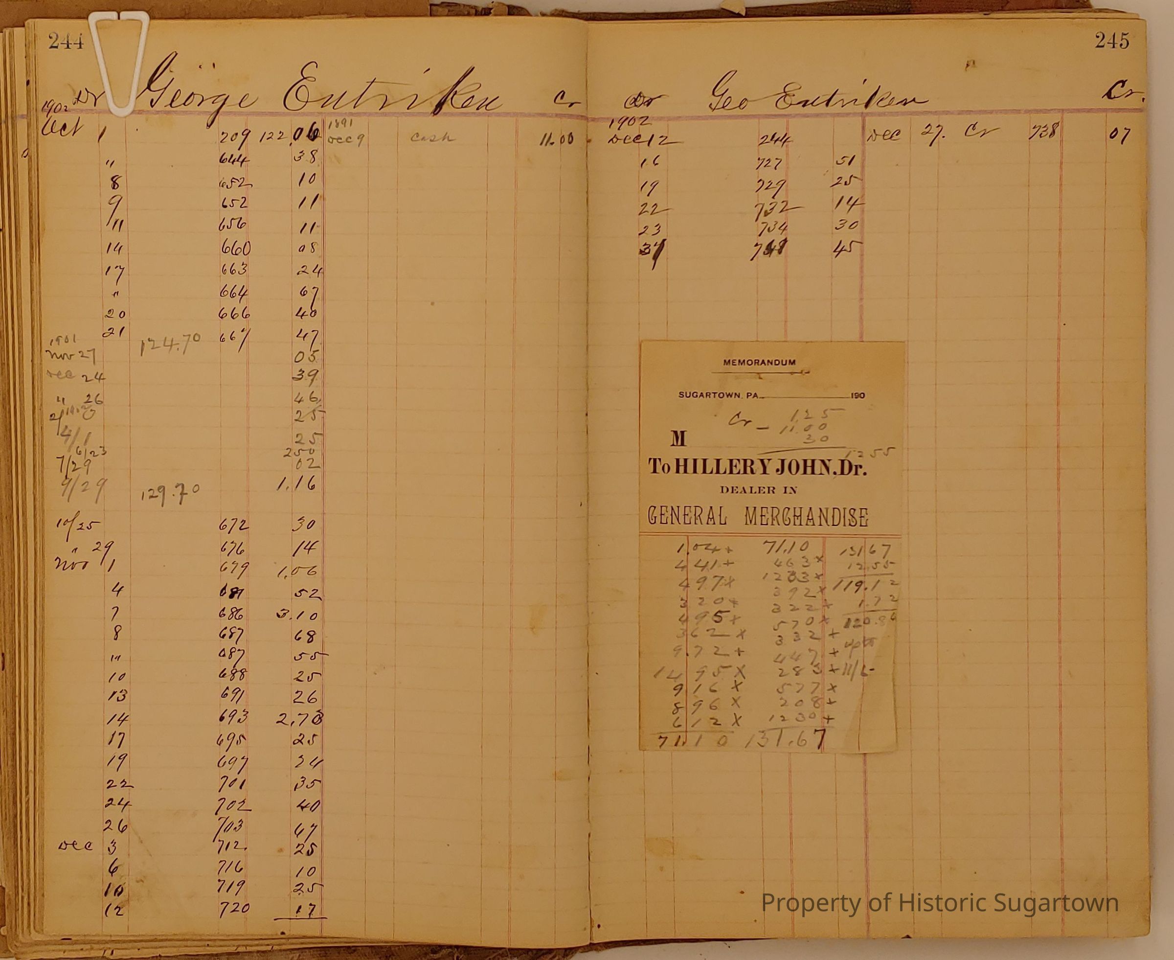 John Daybook 1901-1902 for General Store in Sugartown PA. Details sales records for general store, customers include local names that populate this archive.Collection