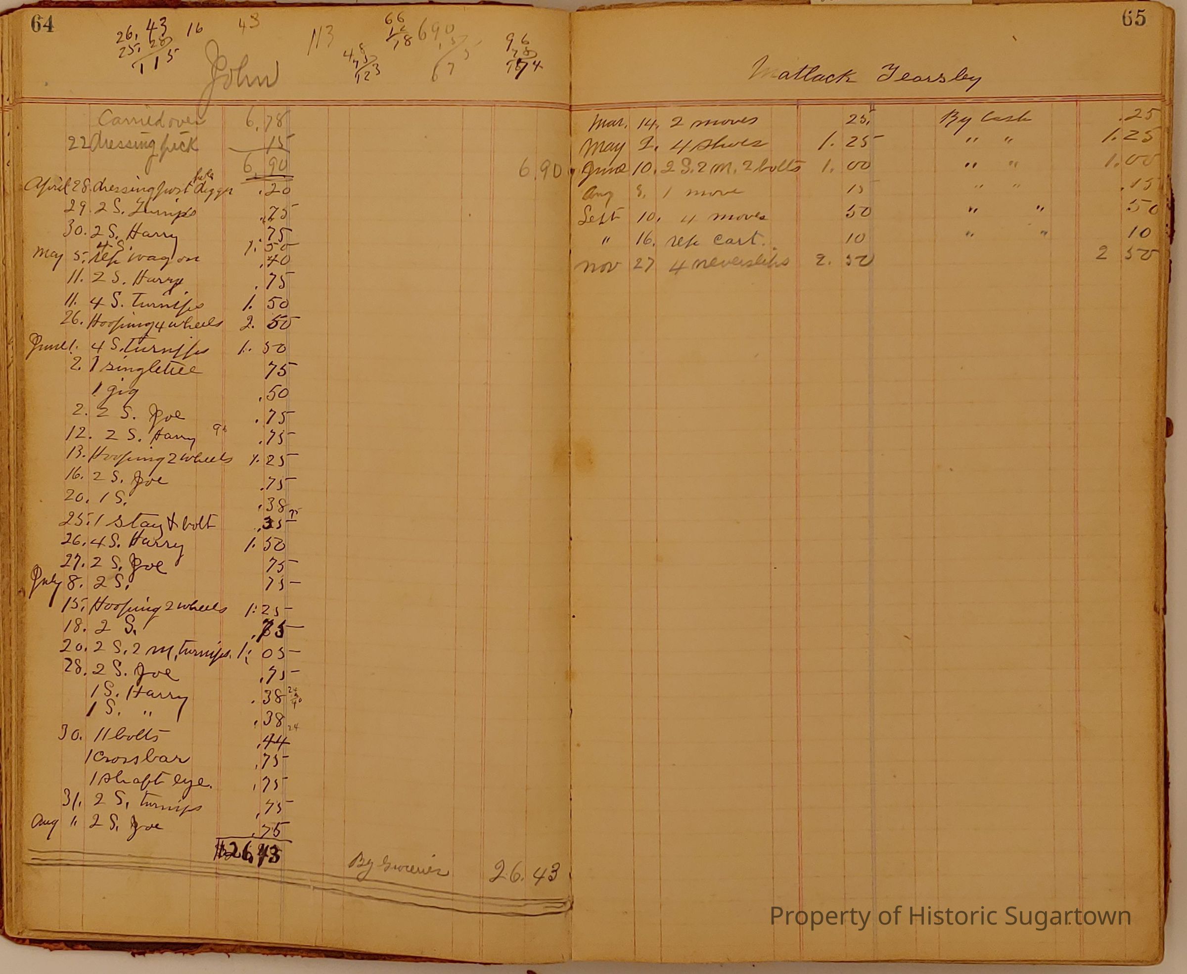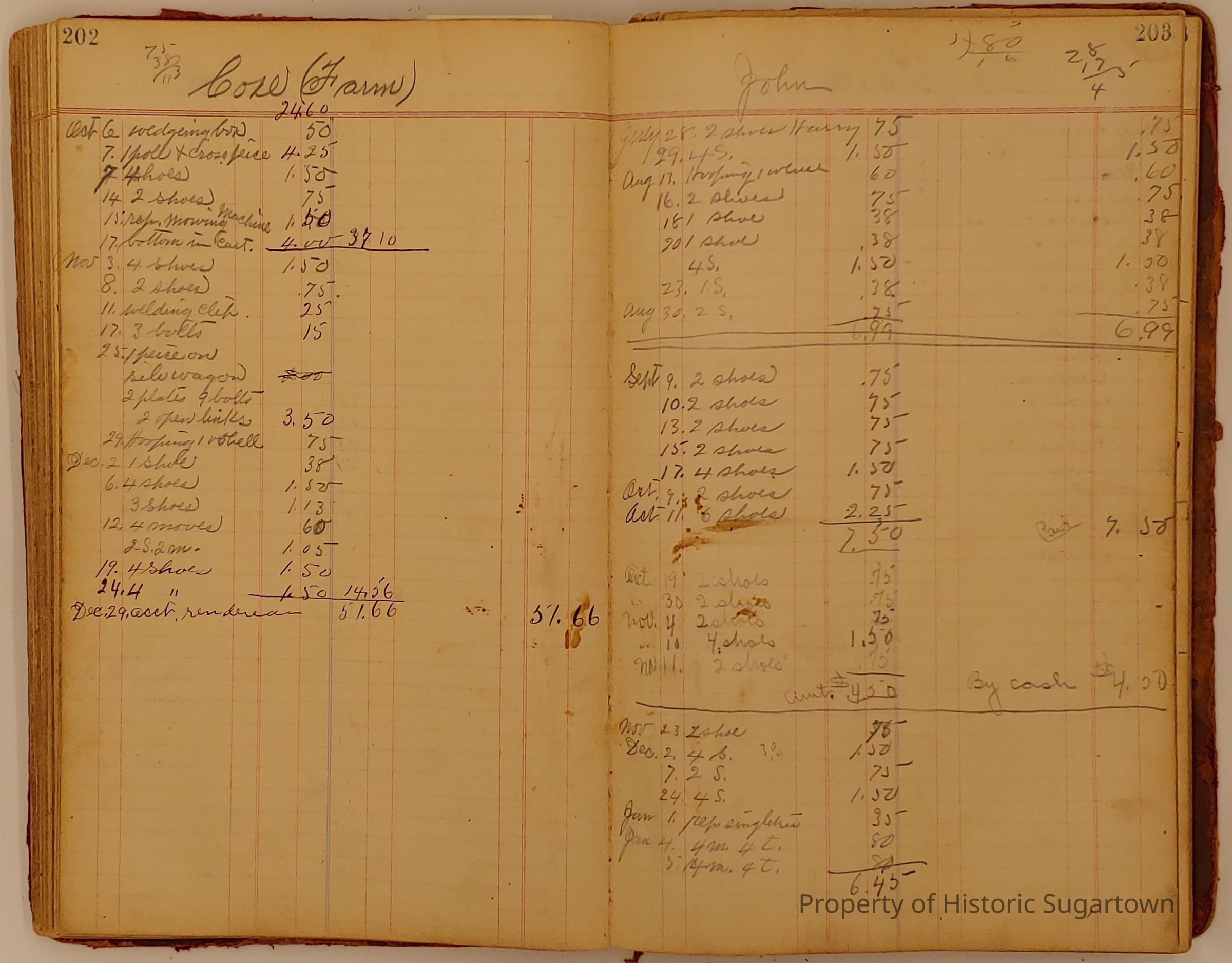 During the 1840s, Sharpless Worrall moved with his family to Sugartown in Willistown Township, Chester County, Pennsylvania, where he took over ownership of a general store and served as postmaster for 20 years. Upon his retirement, Worrall's son-in-law Hillery John took over the store, which he ran until his death. At that point it was taken over by Hillery's son, Clyde B. John, who eventually turned the business into an antiques shop. Worrall and John family papers and business records, 1830-1939, primarily consist of the business records of the general store under all three owners as well personal and family papers relating to the Worrall and John families.Context
