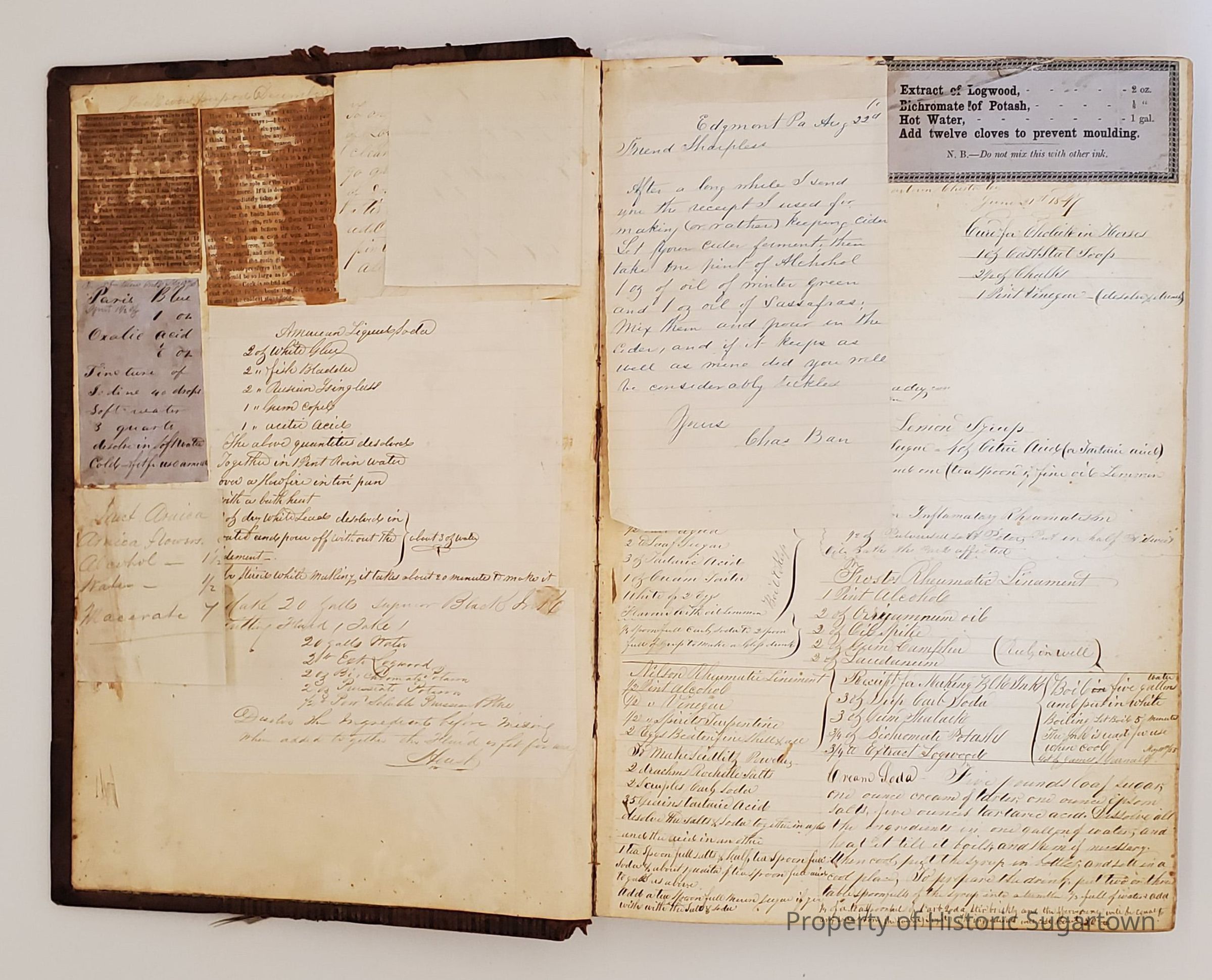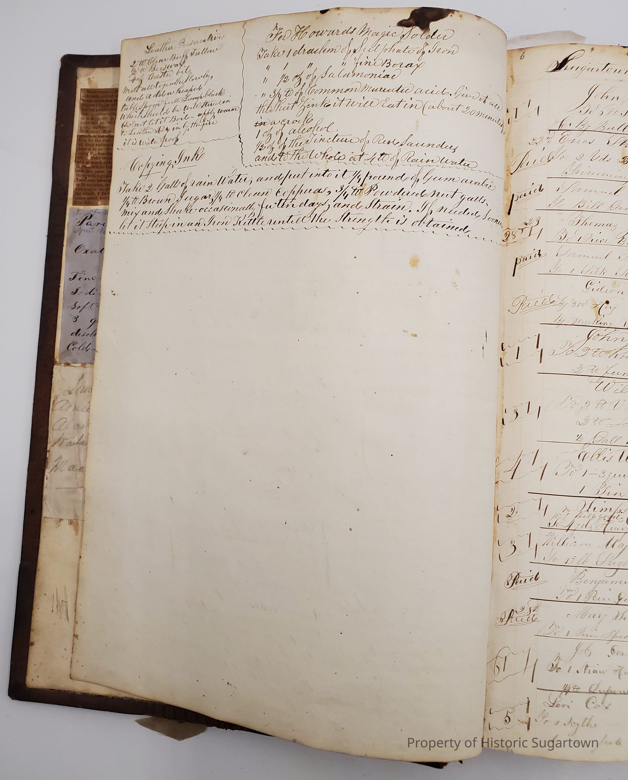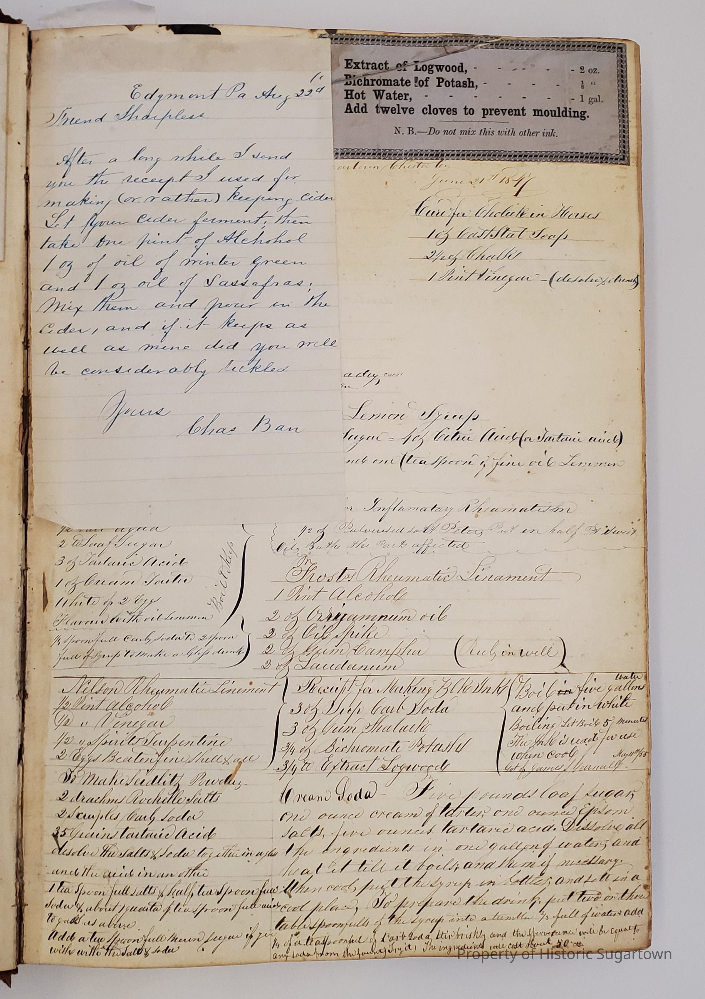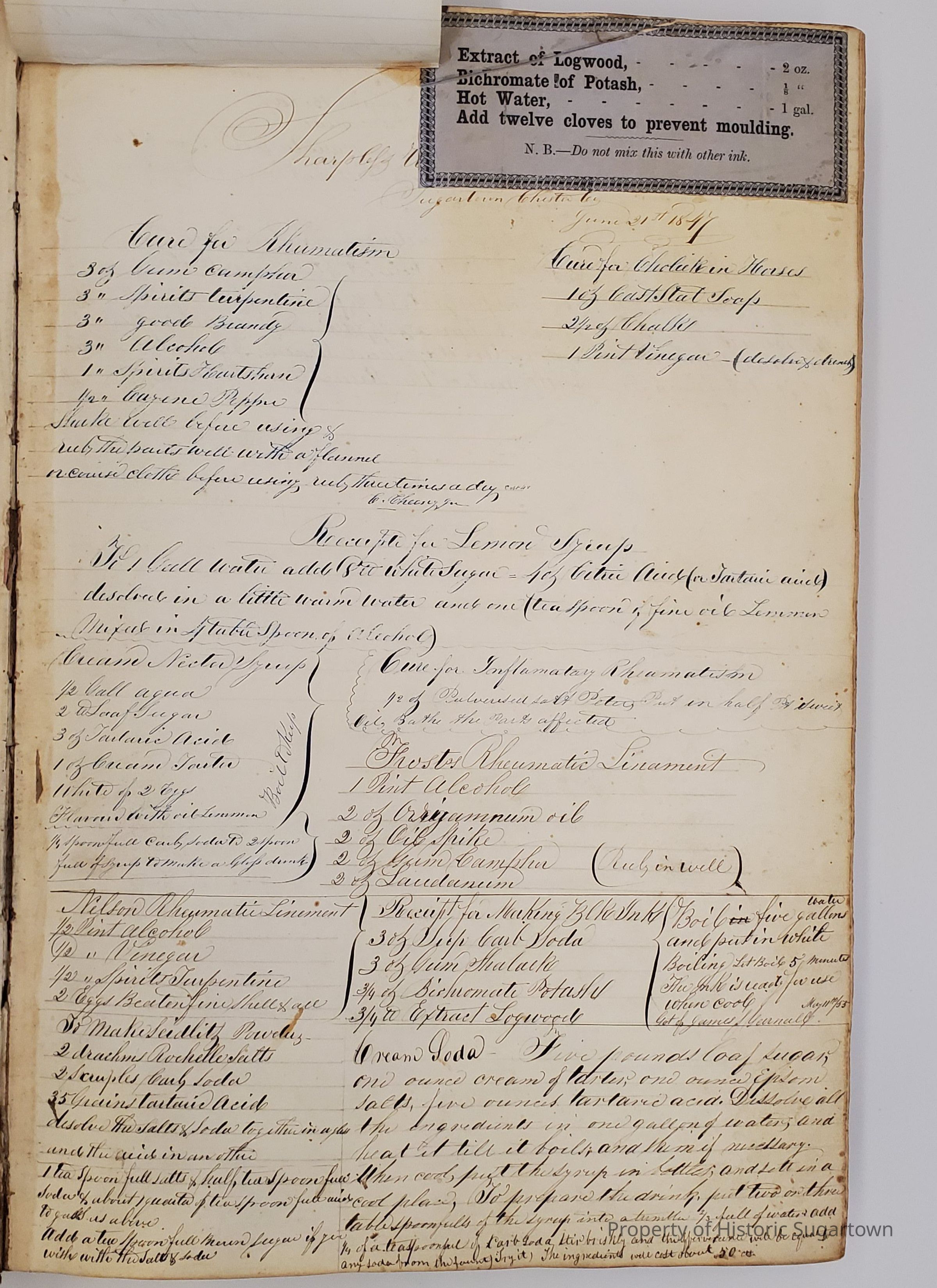 Worrall Daybook 1846-1852. The first daybook we have record of belonging to Sharpless Worrall. Includes medical and other recipes. Many familiar names from Sugartown are represented in this daybook.Collection