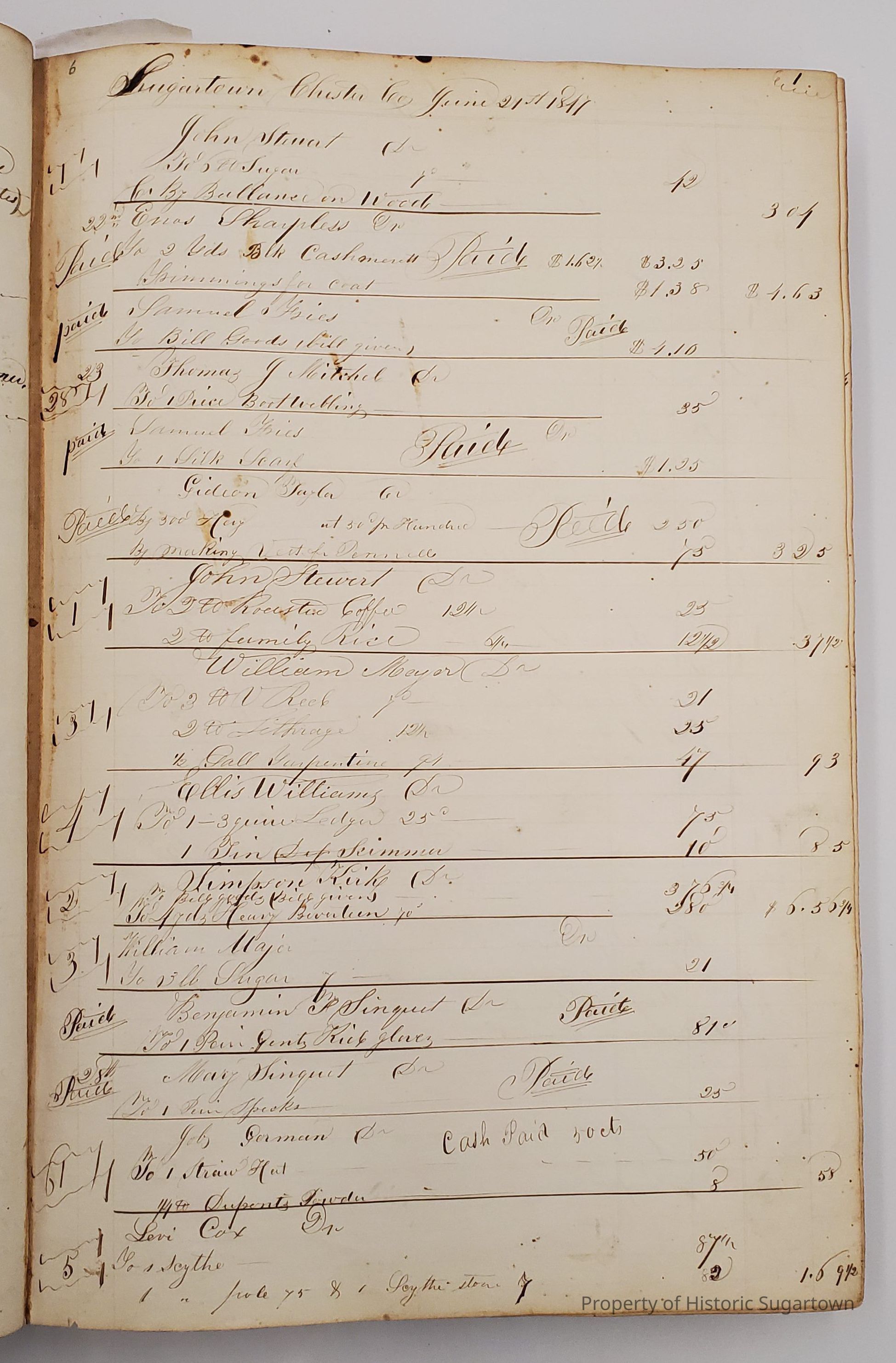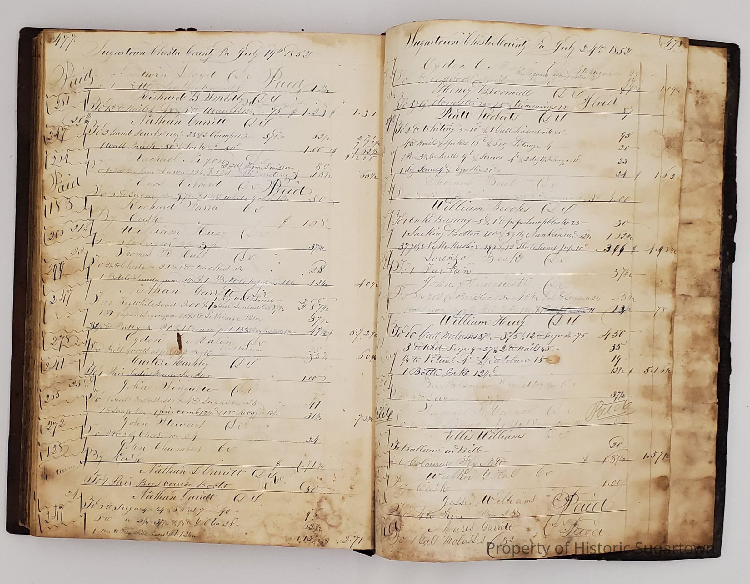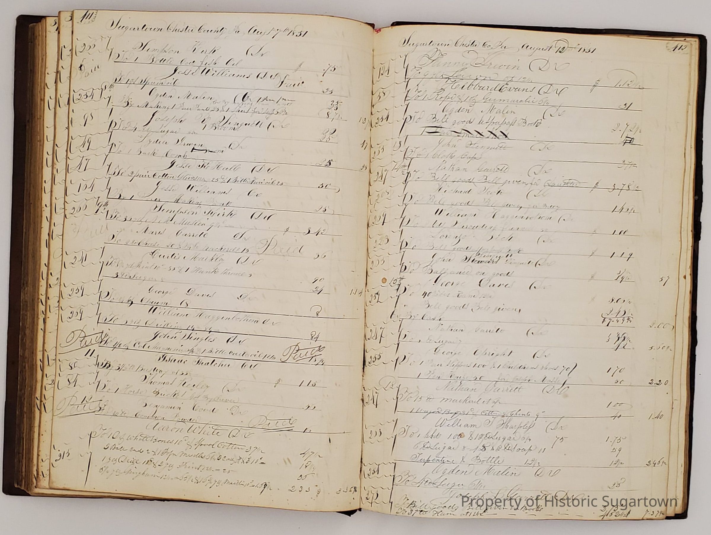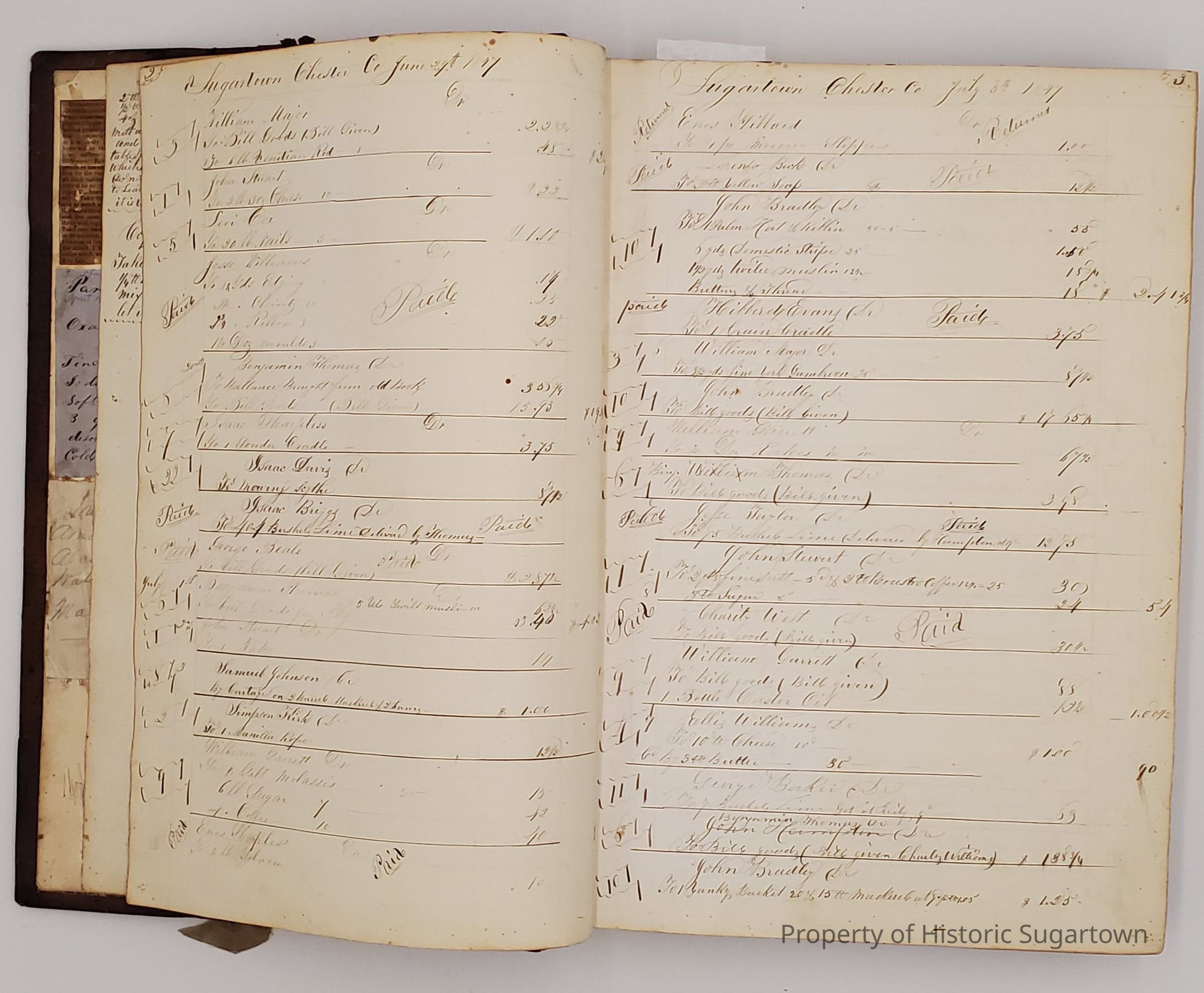 During the 1840s, Sharpless Worrall moved with his family to Sugartown in Willistown Township, Chester County, Pennsylvania, where he took over ownership of a general store and served as postmaster for 20 years. Upon his retirement, Worrall's son-in-law Hillery John took over the store, which he ran until his death. At that point it was taken over by Hillery's son, Clyde B. John, who eventually turned the business into an antiques shop. Worrall and John family papers and business records, 1830-1939, primarily consist of the business records of the general store under all three owners as well personal and family papers relating to the Worrall and John families.Context