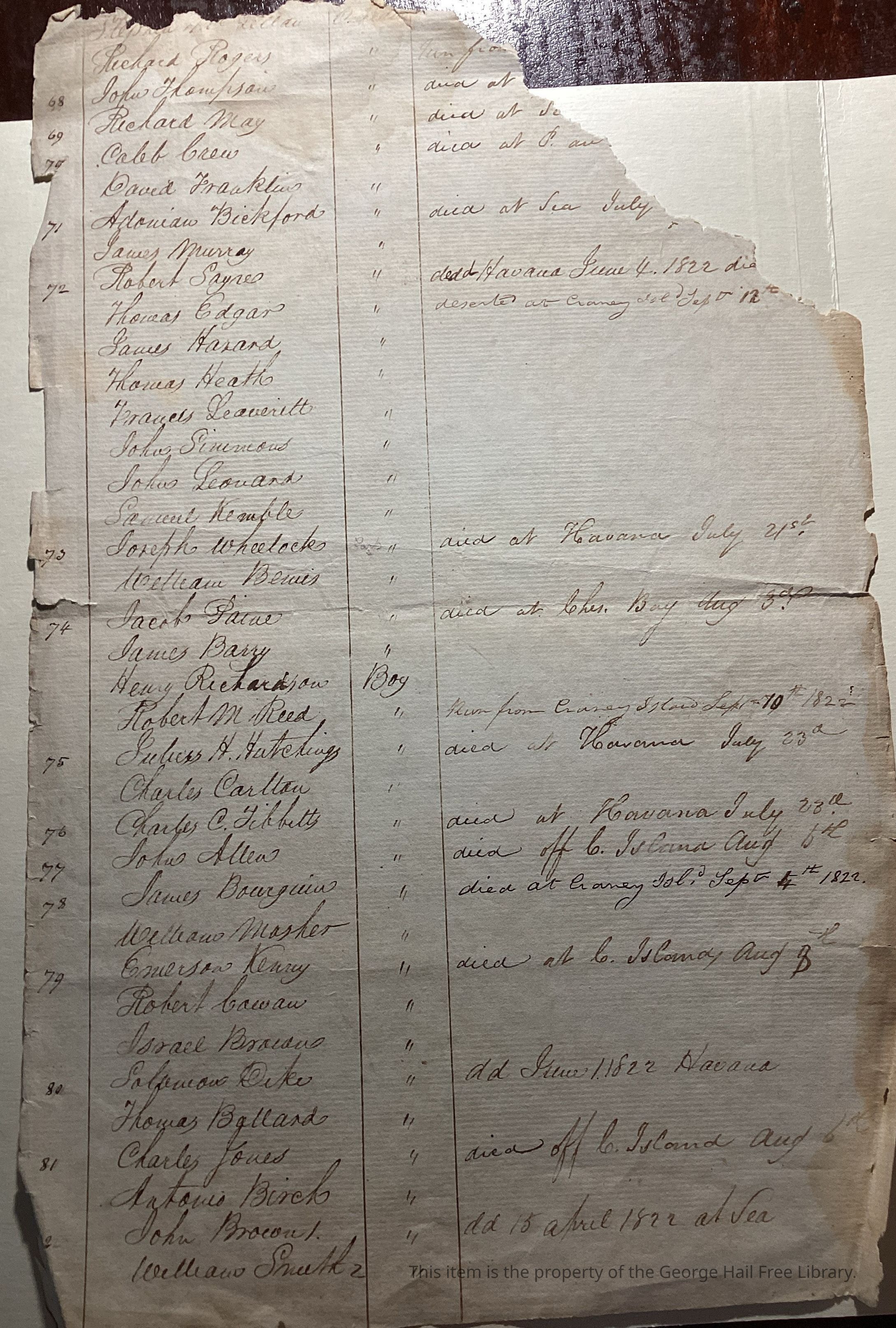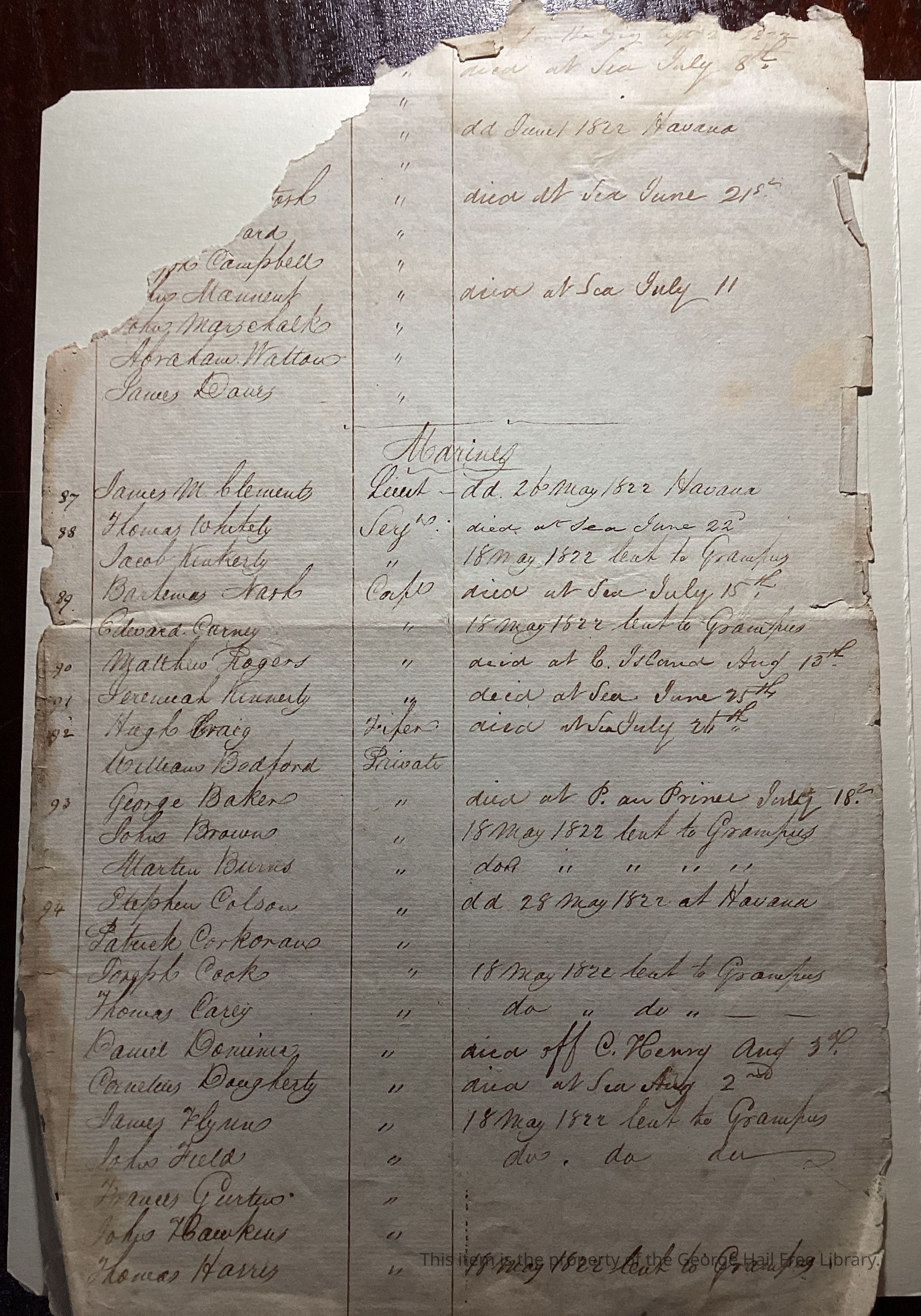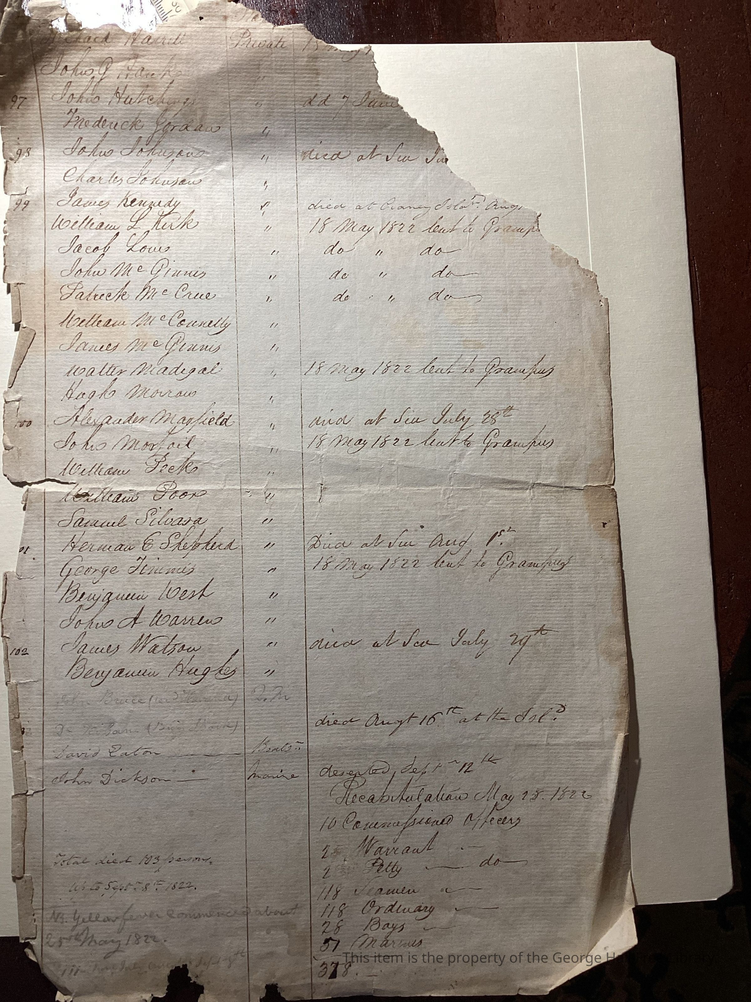 Ship’s Accounting of Crew Who Perished at Sea (ca 1822)Entry/Object ID