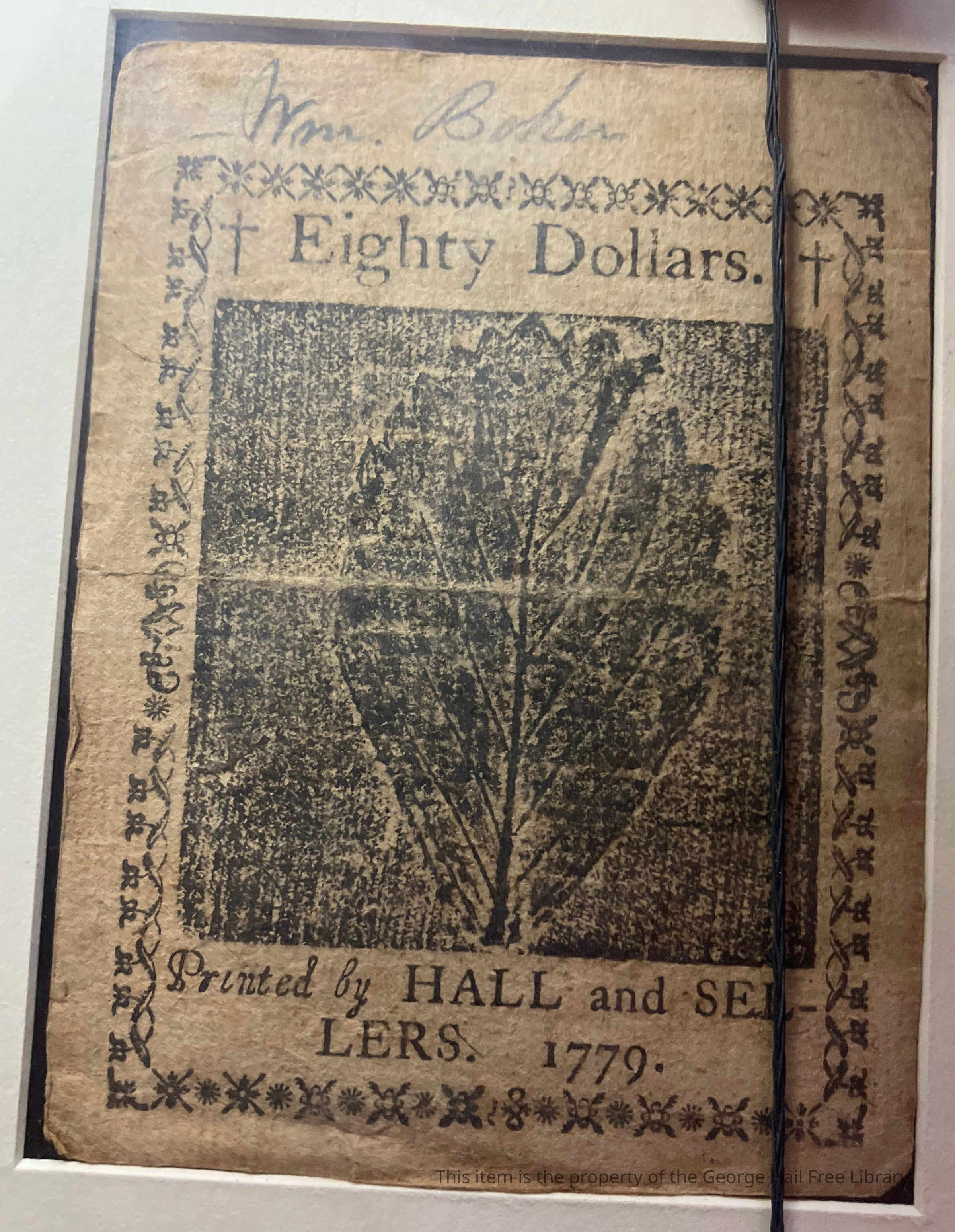 This Continental Currency eighty dollar bill shows a lot of wear. It’s easy to picture this small (only 3 by 3.75 inches) piece of paper passed from hand to hand in the early 19th century, leaving some of the the printing very faint.