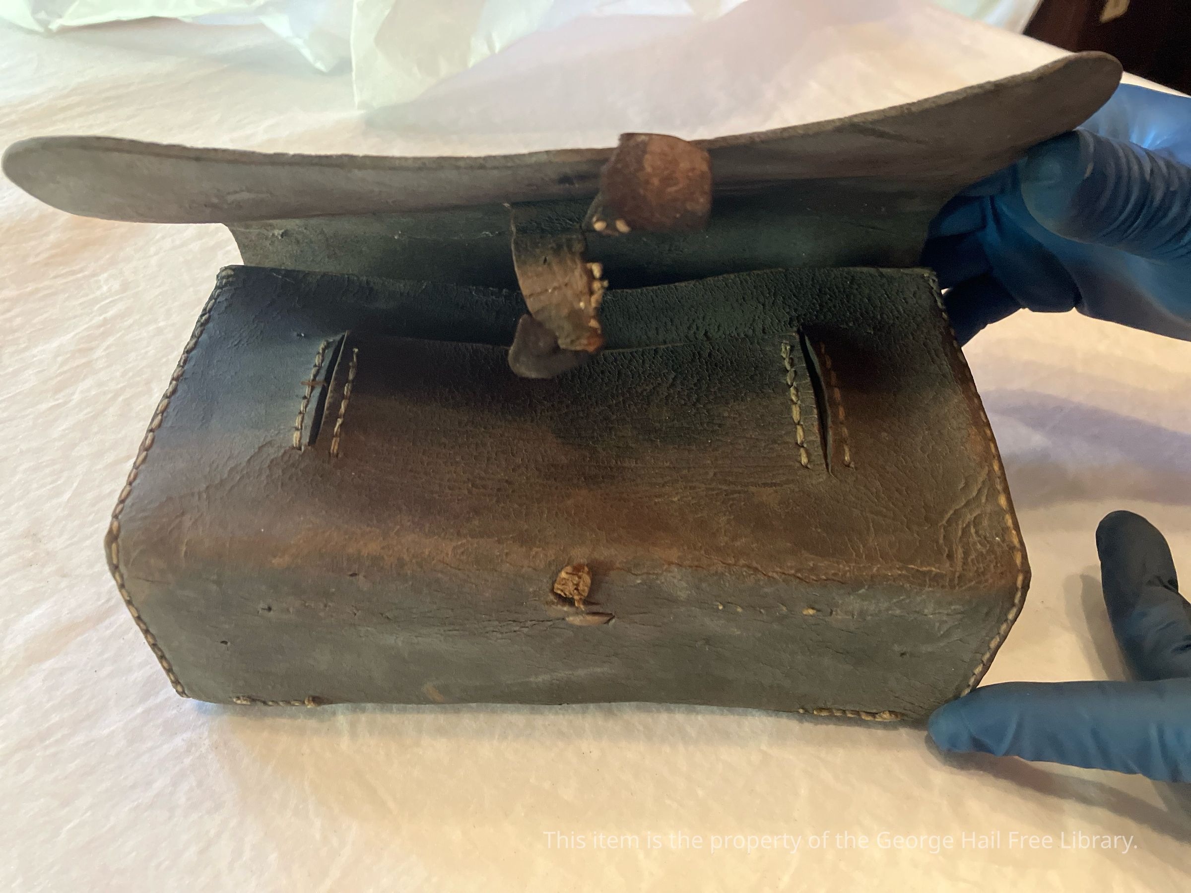 "Most American soldiers carried their ammunition in cartridge boxes worn over the shoulder or around the waist. These leather pouches, often made by saddlers and harness makers, contained drilled wooden blocks to hold individual cartridges, round paper tubes containing gunpowder, lead bullets and, often (as here) small buckshot that improved a soldier's chance of hitting his target. The premade cartridges allowed soldiers to load their musket faster and get off more shots than if they had to load loose gunpowder and a musket ball by hand. This example from the Revolutionary War allows a soldier to keep 19 cartridges at the ready. The Militia Act of 1792, which set federal standards for the organization of the Militia, ruled that all soldiers would be required to carry cartridge boxes that “contain not less than twenty-four cartridges, suited to the bore of his musket or firelock.” Museum of the American RevolutionUse
