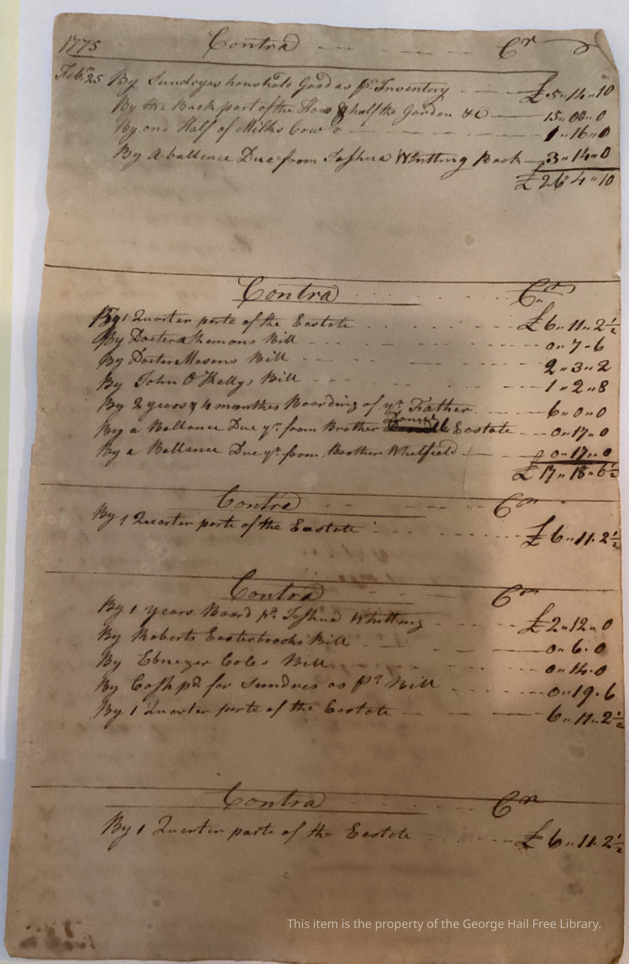 The word “contra” is used several times. This may refer to a contra account/s, which is “an account used to offset the balance in a related account. When the main account is netted against the contra account, the contra account reduces the value of the main account while preserving the original balance of the main account.” (Source: https://accountinghowto.com/contra-account/)Inscription/Signature/Marks
