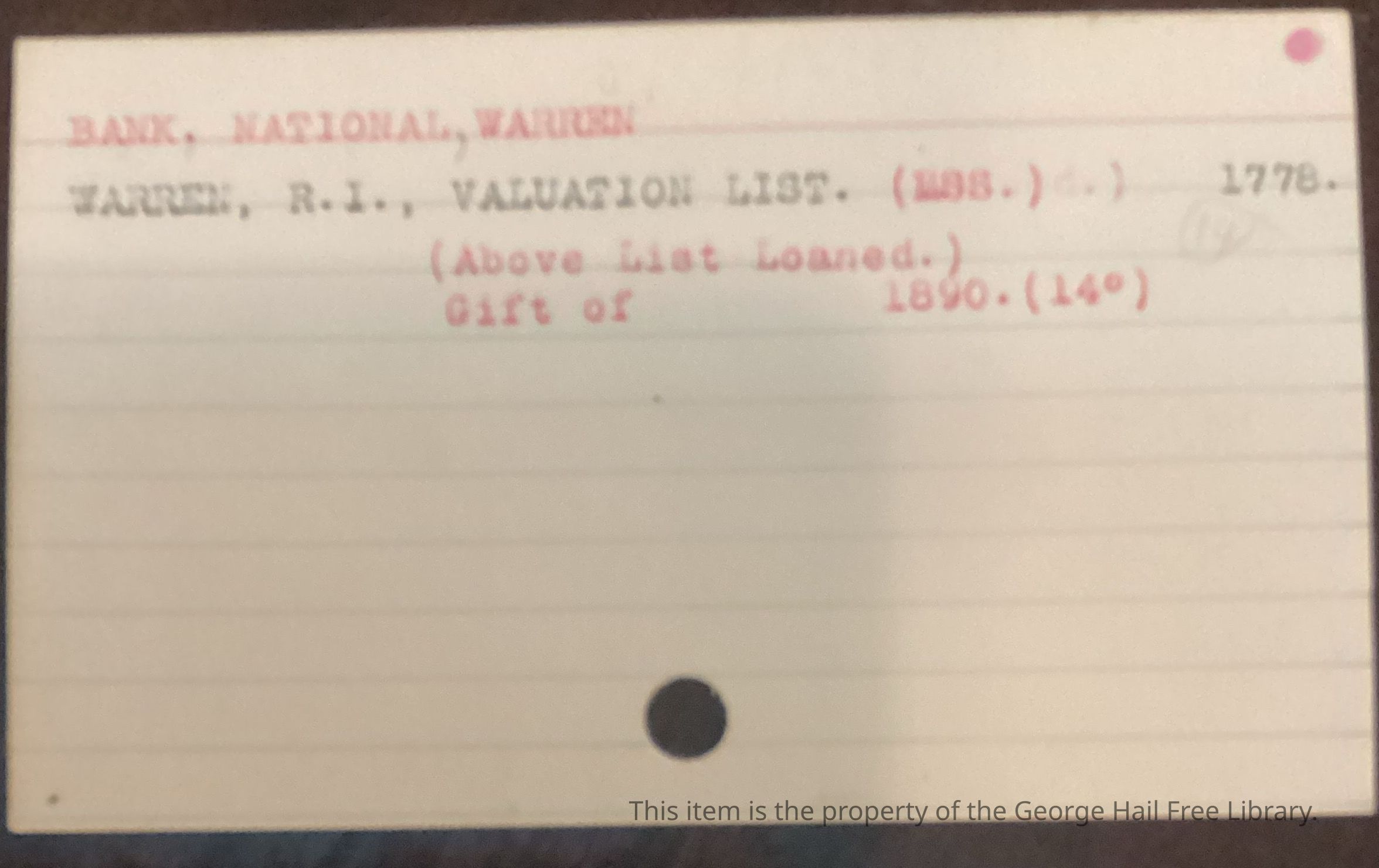 Based on a card found in Historical Card Catalog, this list may have been given by the First National Bank of Warren, loaned in 1890. Presumable the copy that the library now possesses was made around that time.