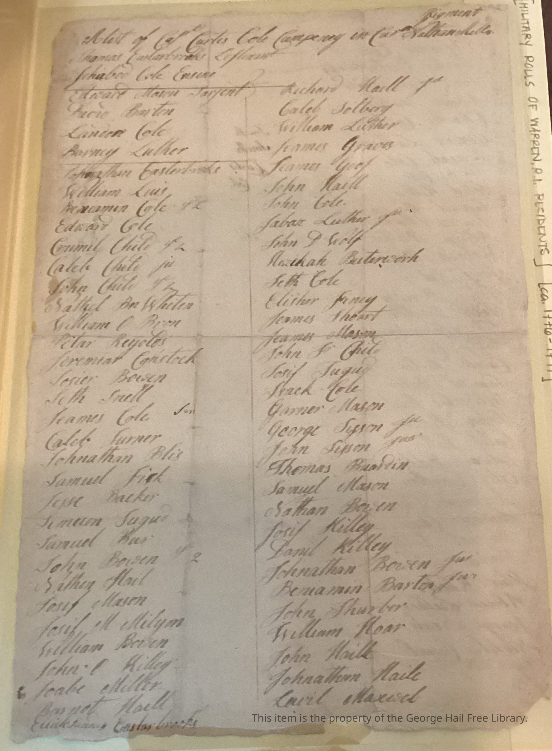 Military Roll of Warren, RI Residents (ca. late 17th century)Entry/Object ID