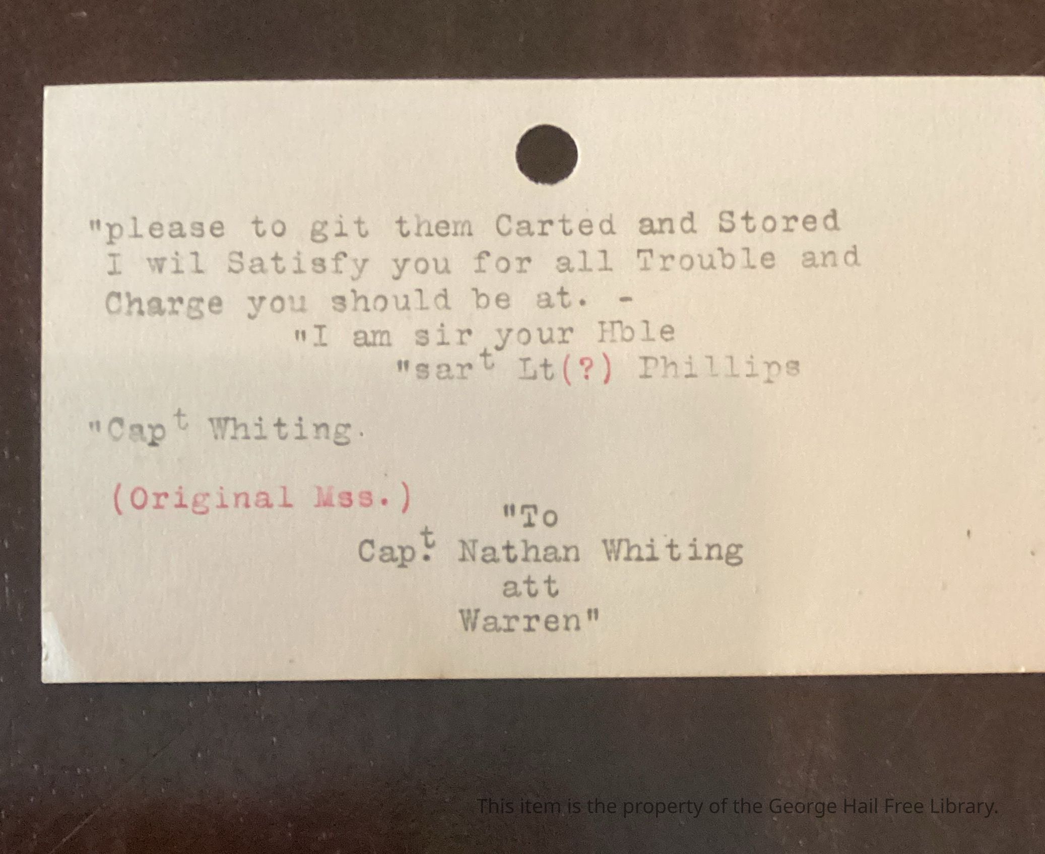Letter to Capt. Nathan Whiting from Capt. (?) Phillips (1777)Entry/Object ID