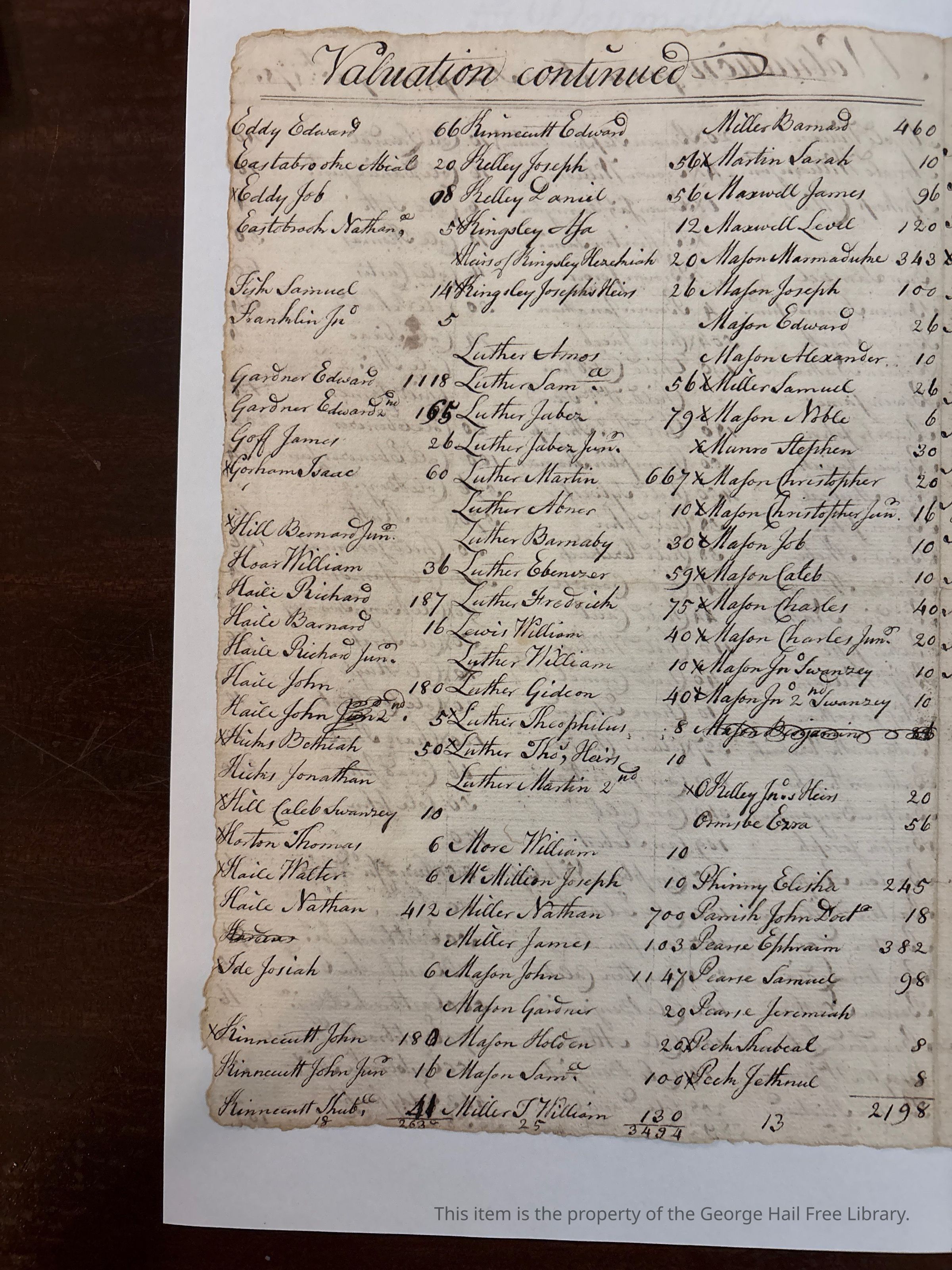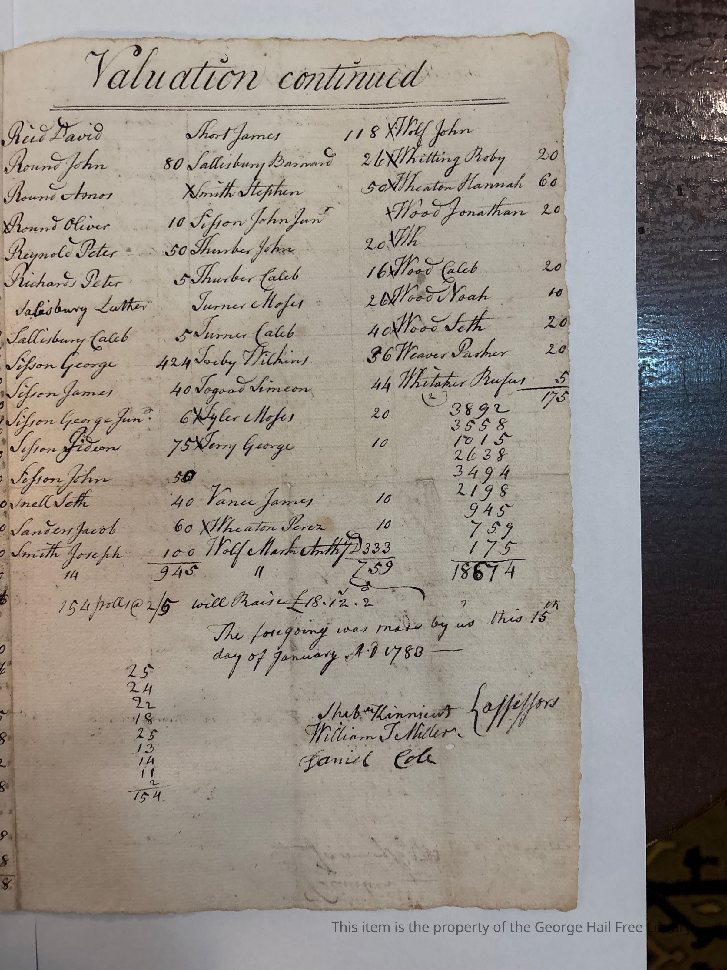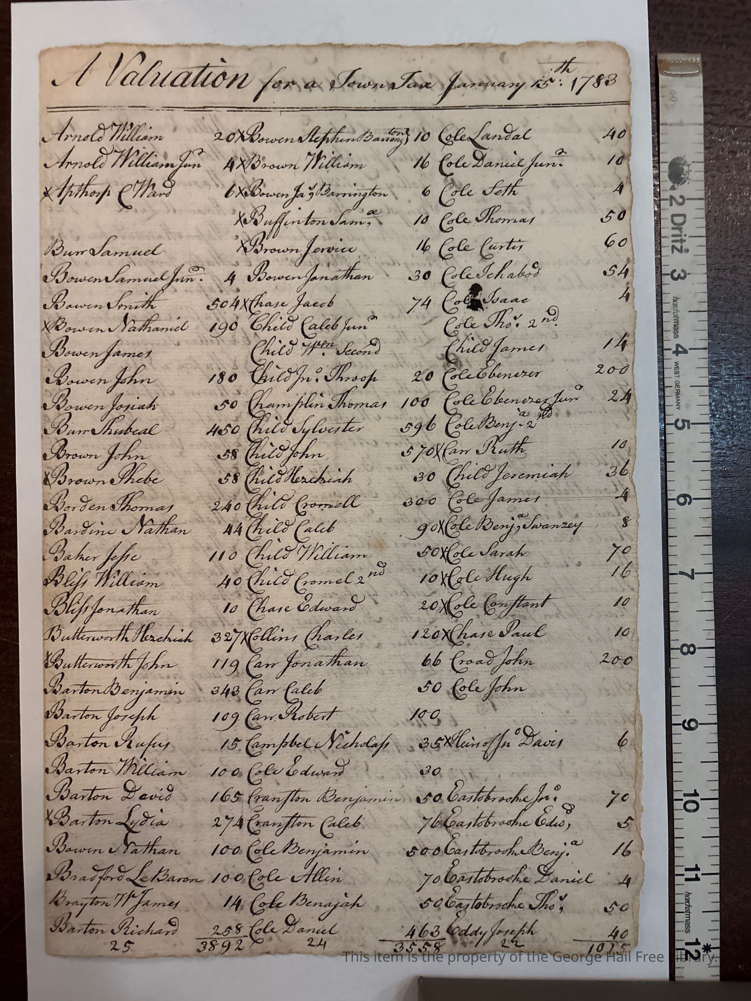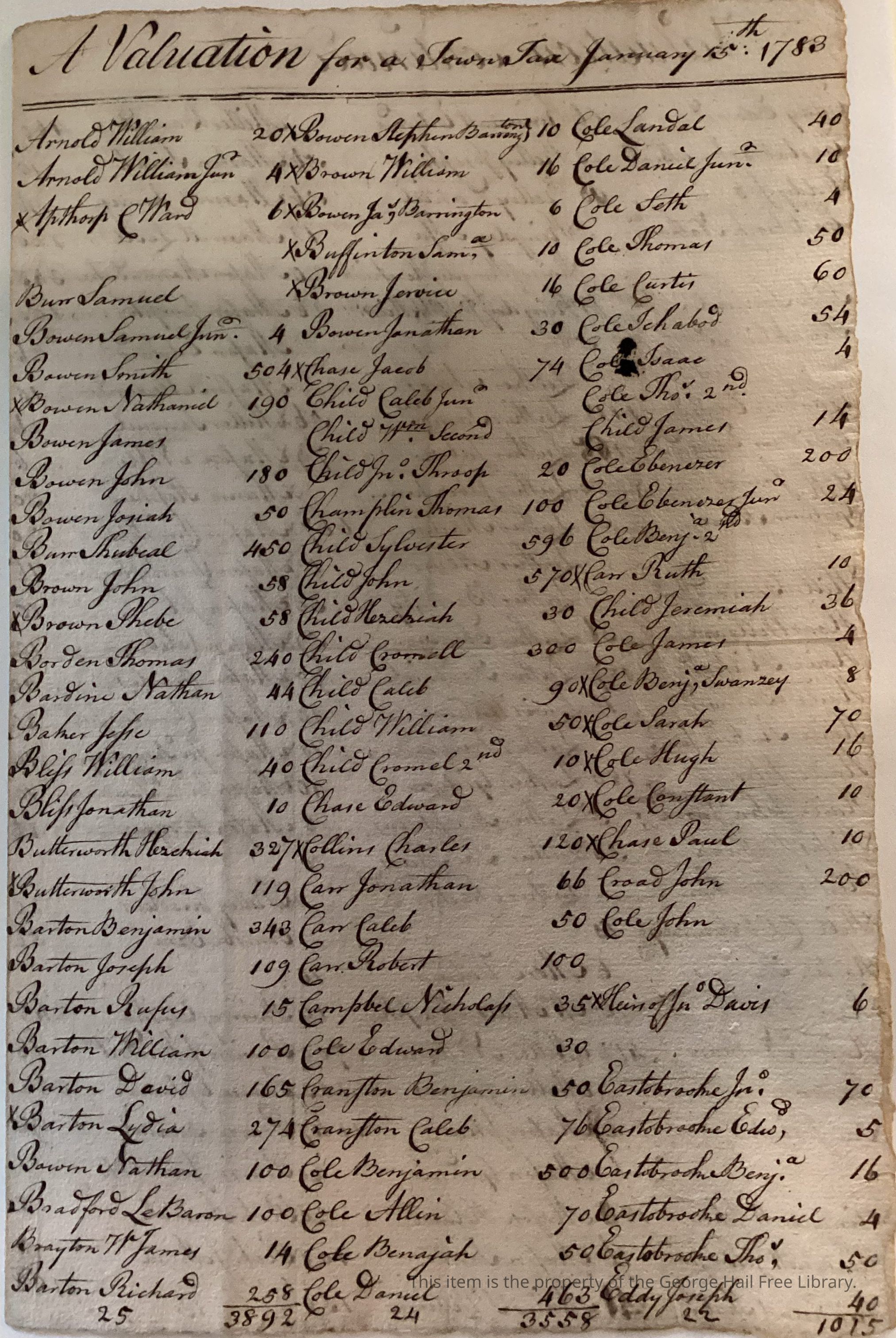 A Valuation for a Town Tax, Warren, RI (1783)Entry/Object ID