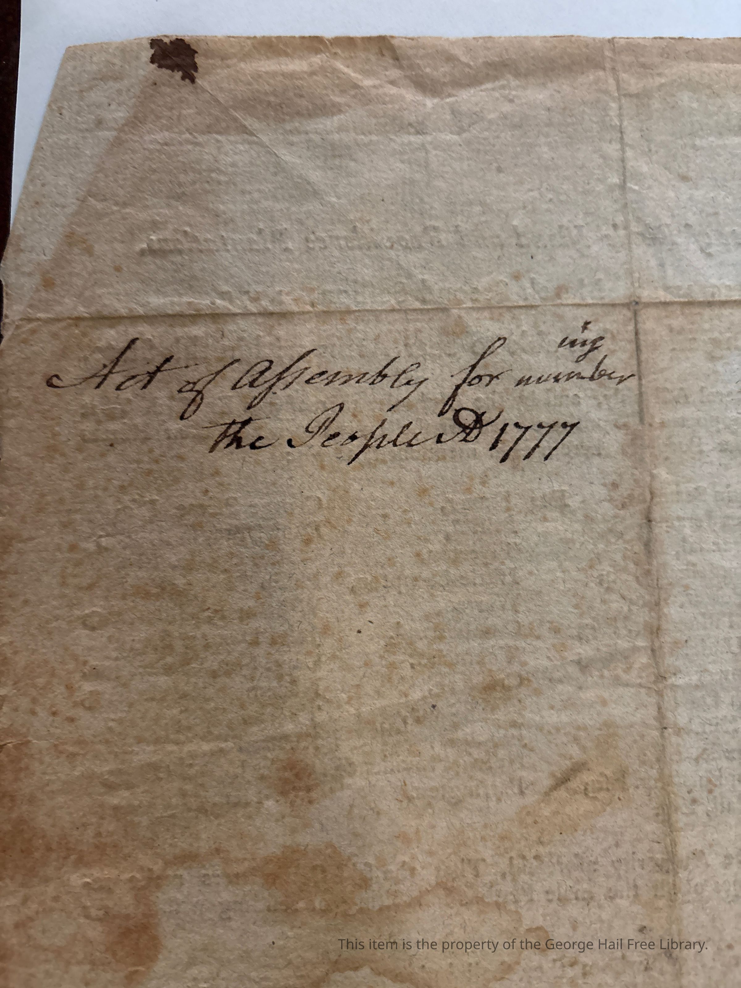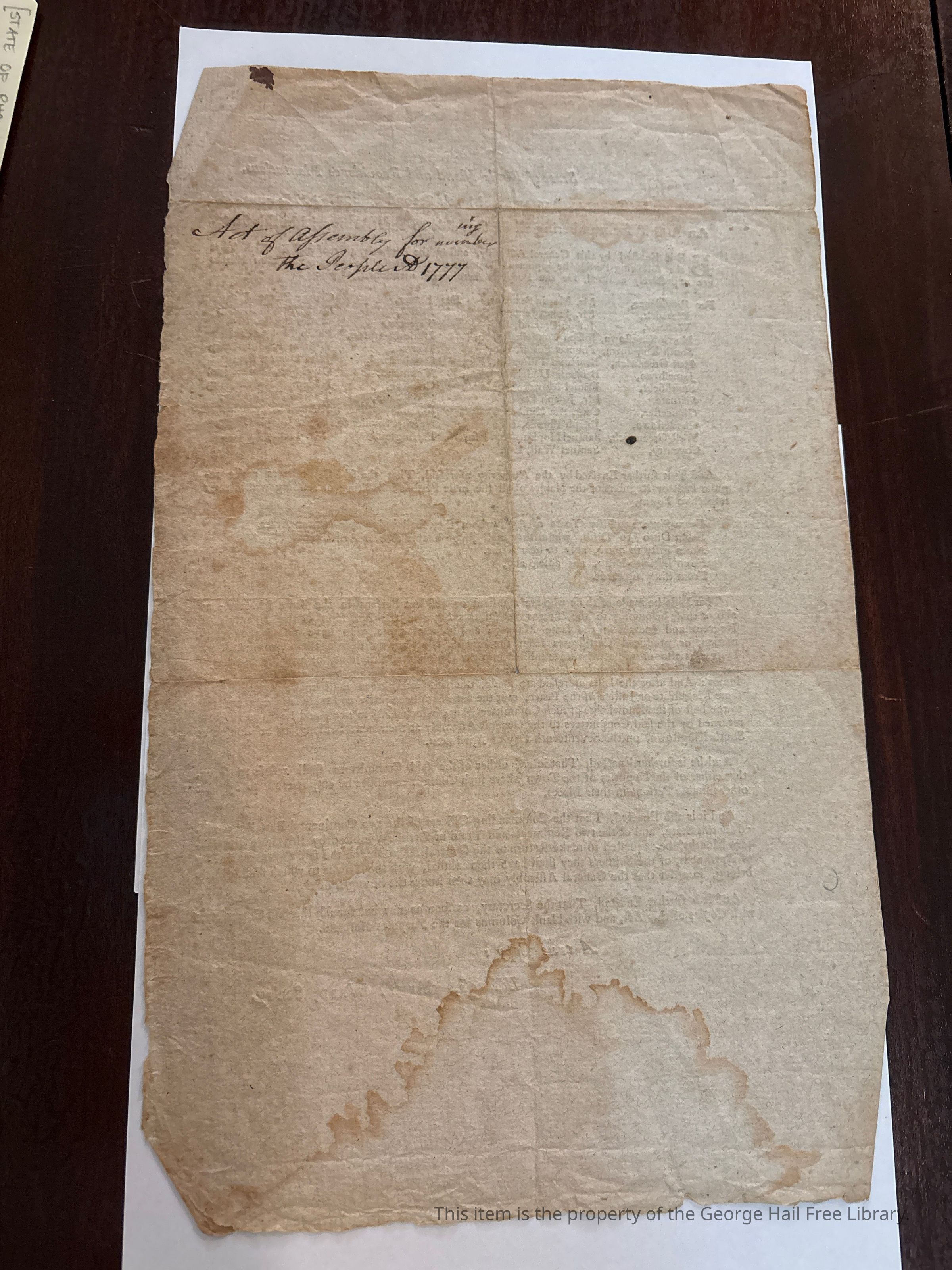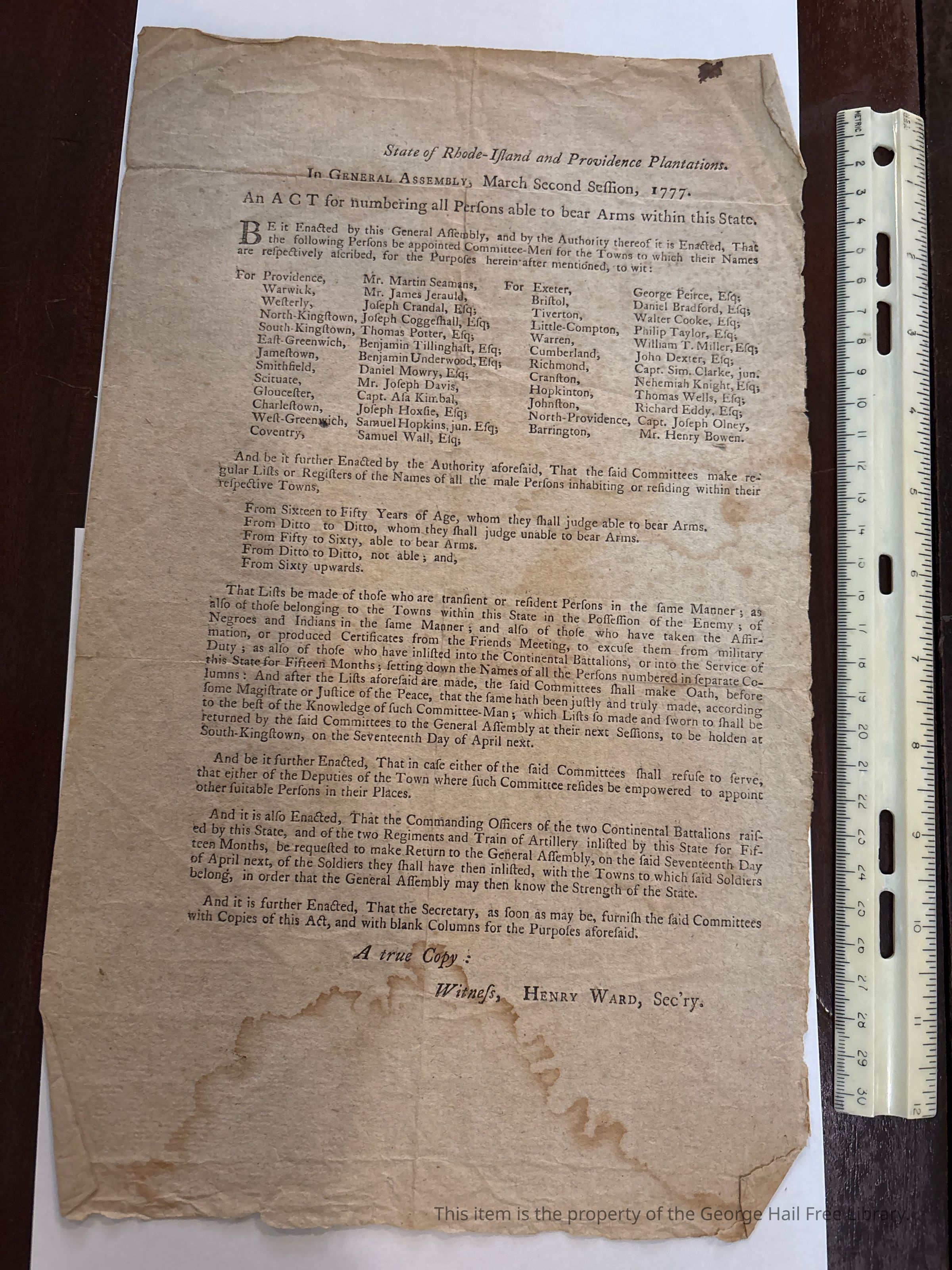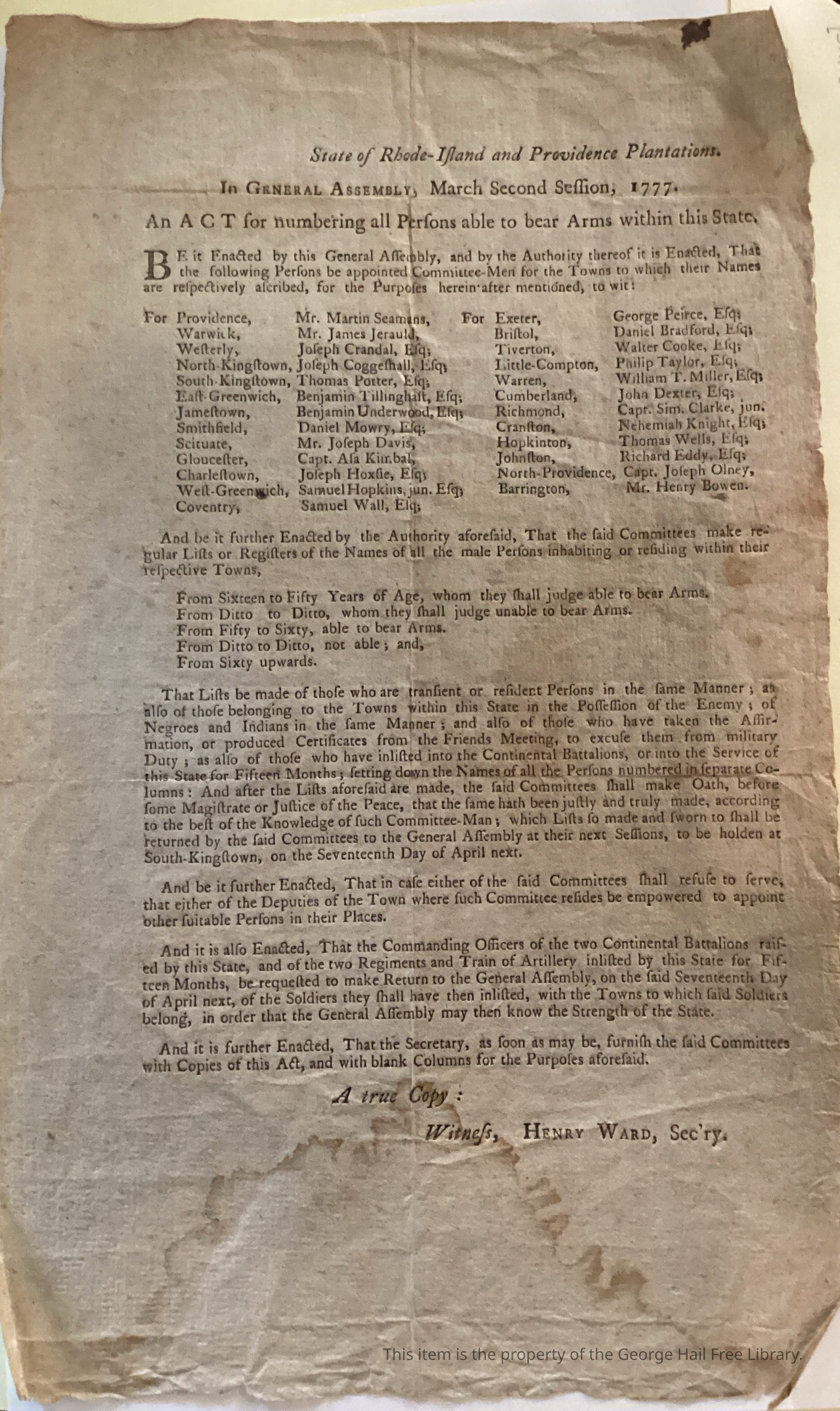 1777 Act from General Assembly of RI (Who Can Bear Arms)Entry/Object ID