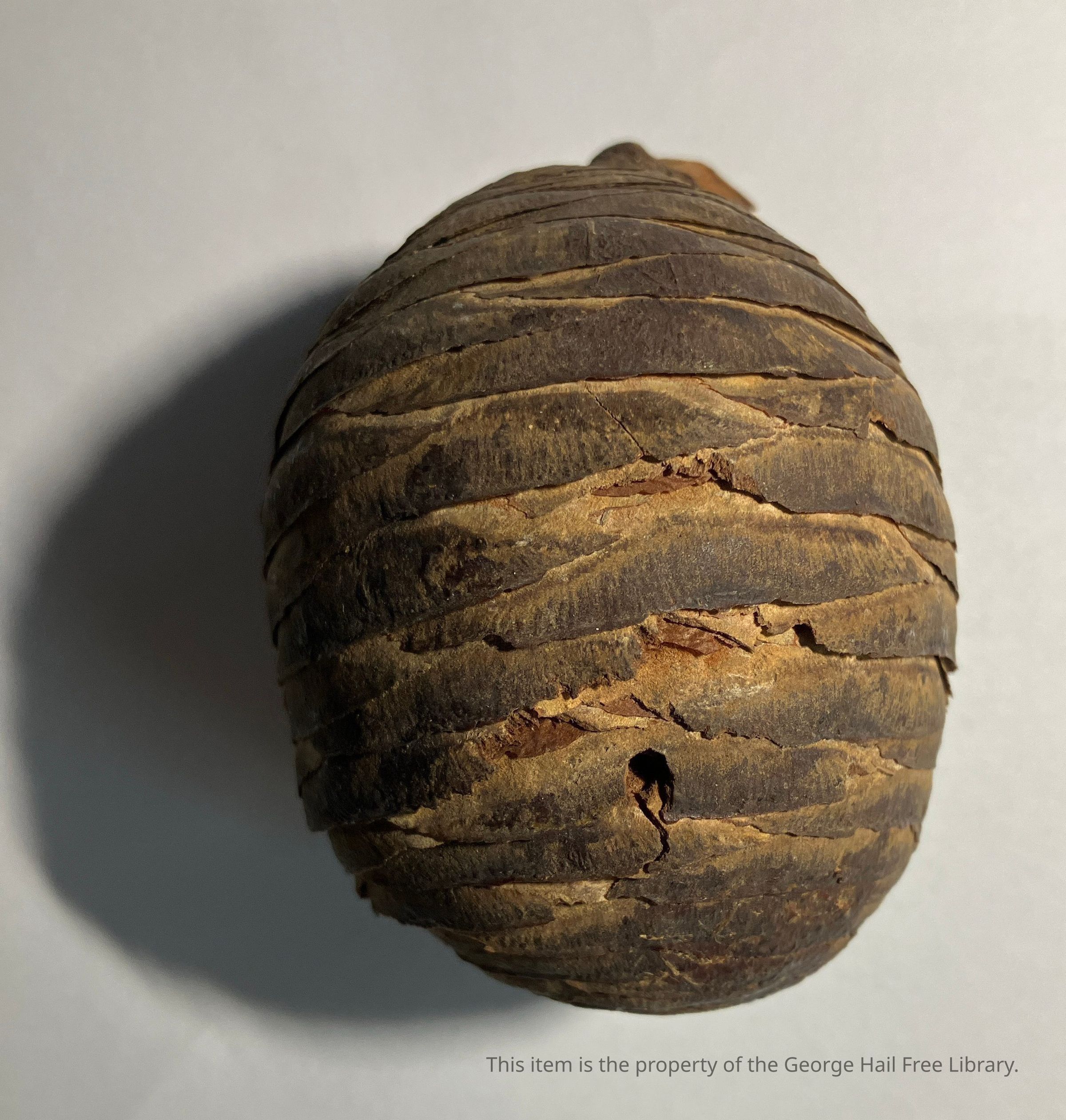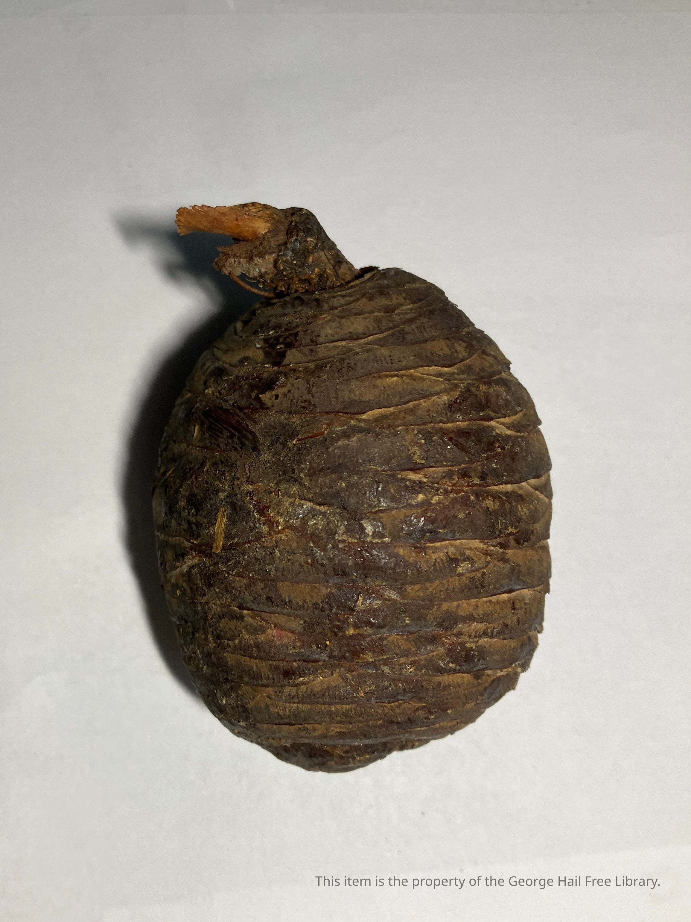 "Branch [missing] with cone (Cedar of Lebanon) brought from the "Holy Land" by H.A. Scovill, Nephew of the Donor.Acquisition