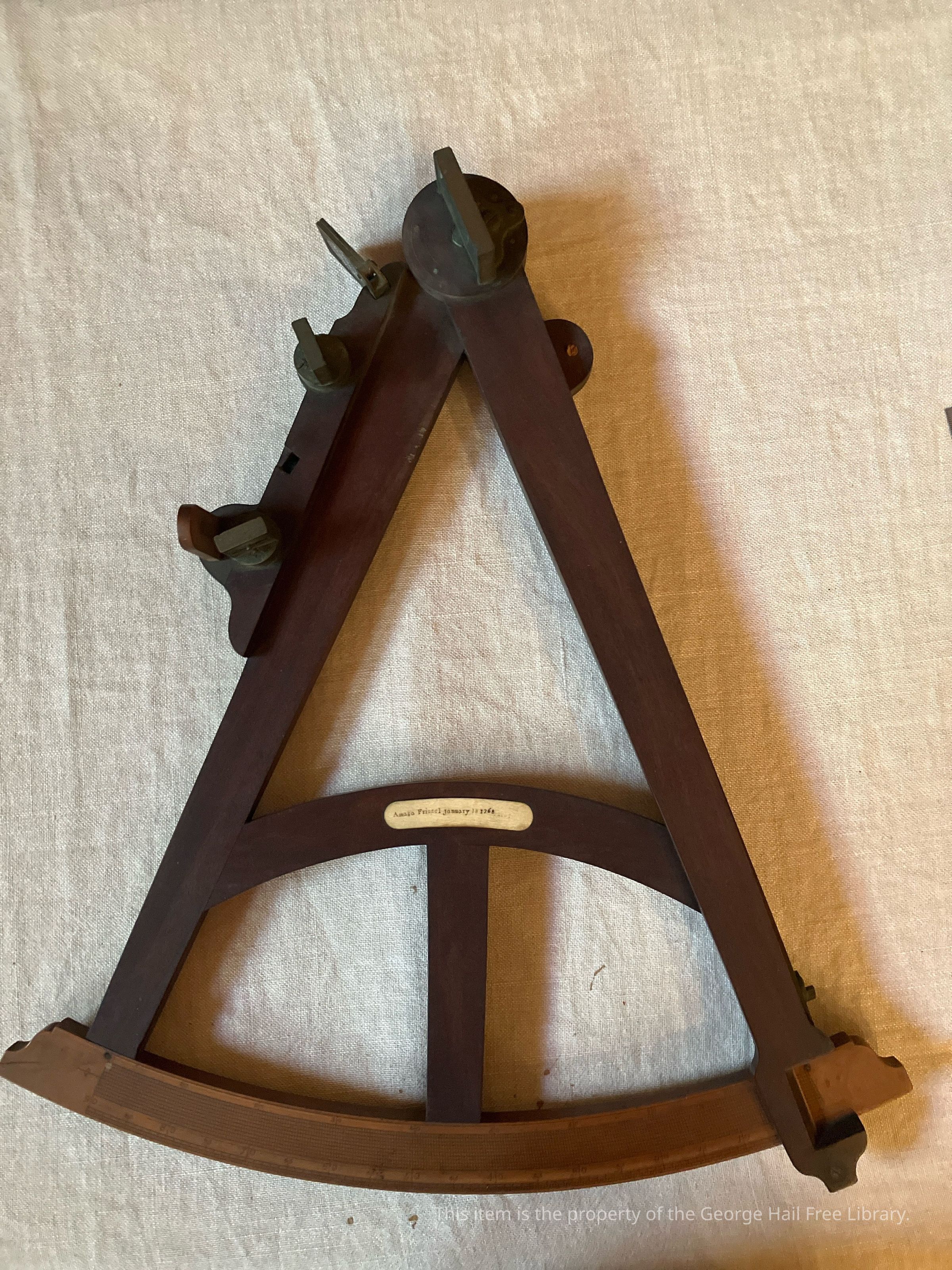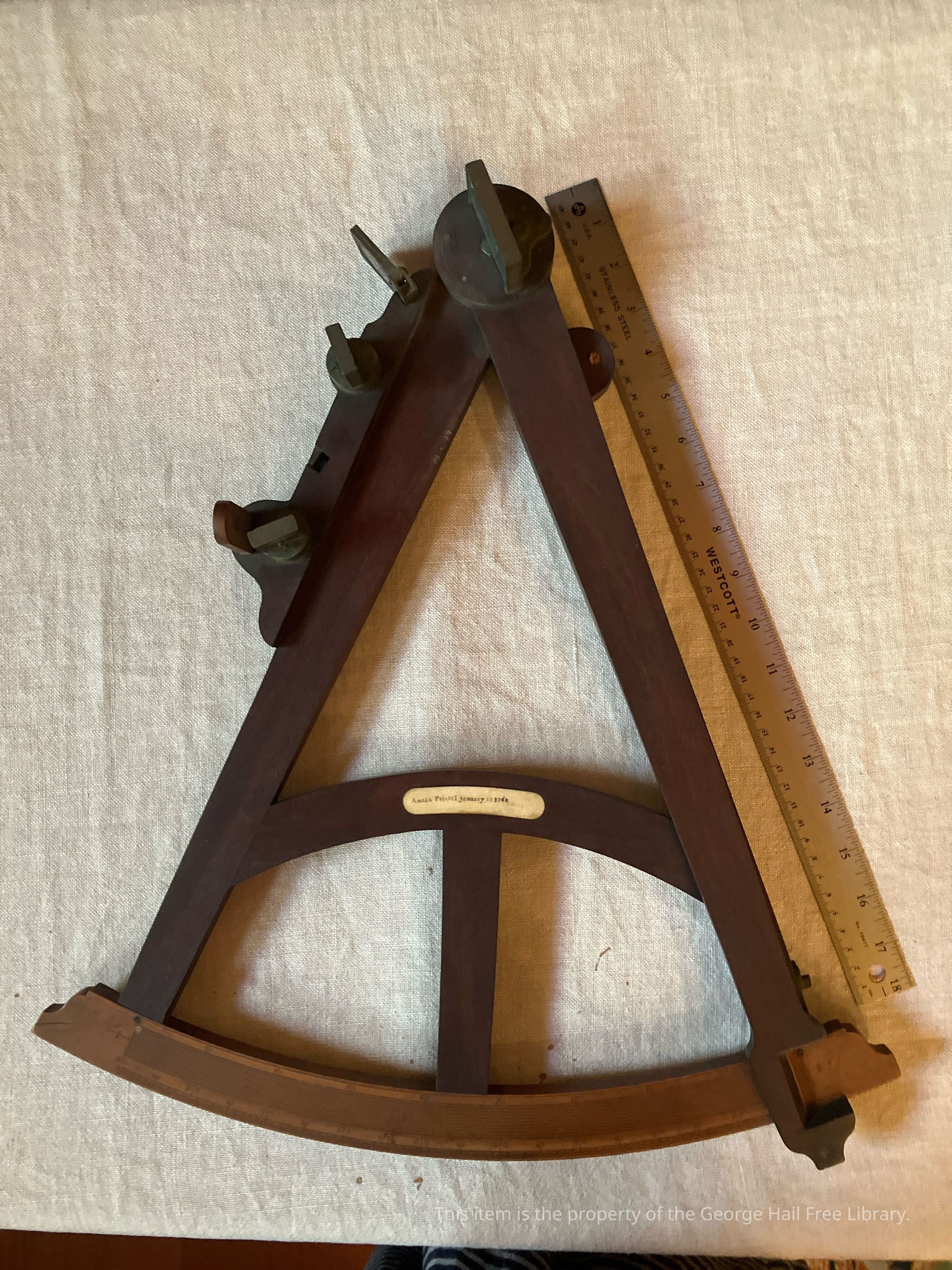 "In the late 18th century, navigators began to use octants to determine their latitude. The octant helped navigators find the precise height of the sun (or, at night, the height of a star) above the horizon. Holding the instrument upright, a navigator would look through the sight, which consisted of one transparent glass window and one mirror. He would first line the instrument up with the horizon by looking through the glass window. Then, he would slowly move the measuring arm, which was attached to the mirror, until the mirror reflected the sun. The resulting measurements on the octant allowed the navigator to calculate the altitude of the sun. By looking up the date and the height of the sun in an almanac, the navigator could then find his ship’s latitude.