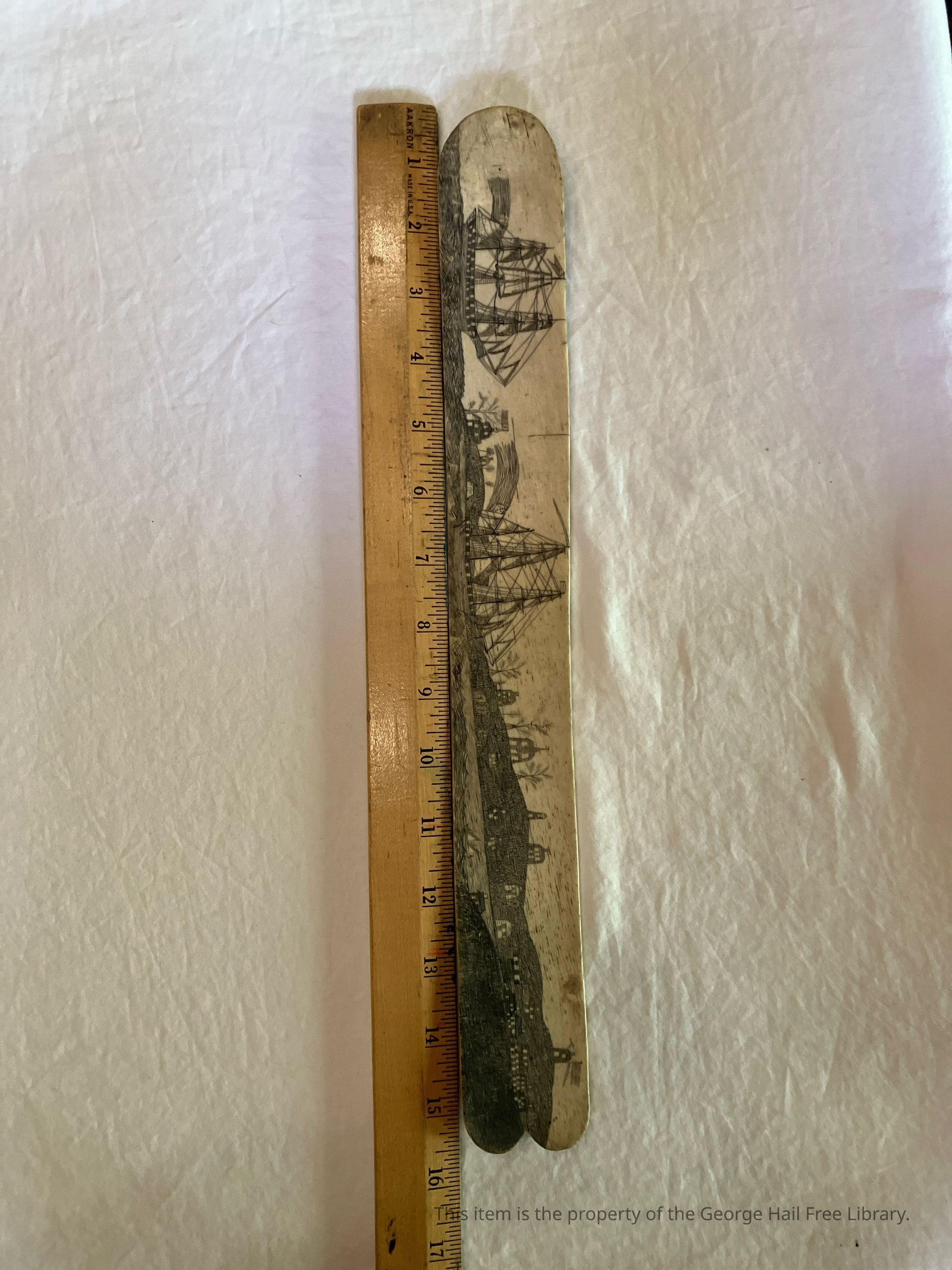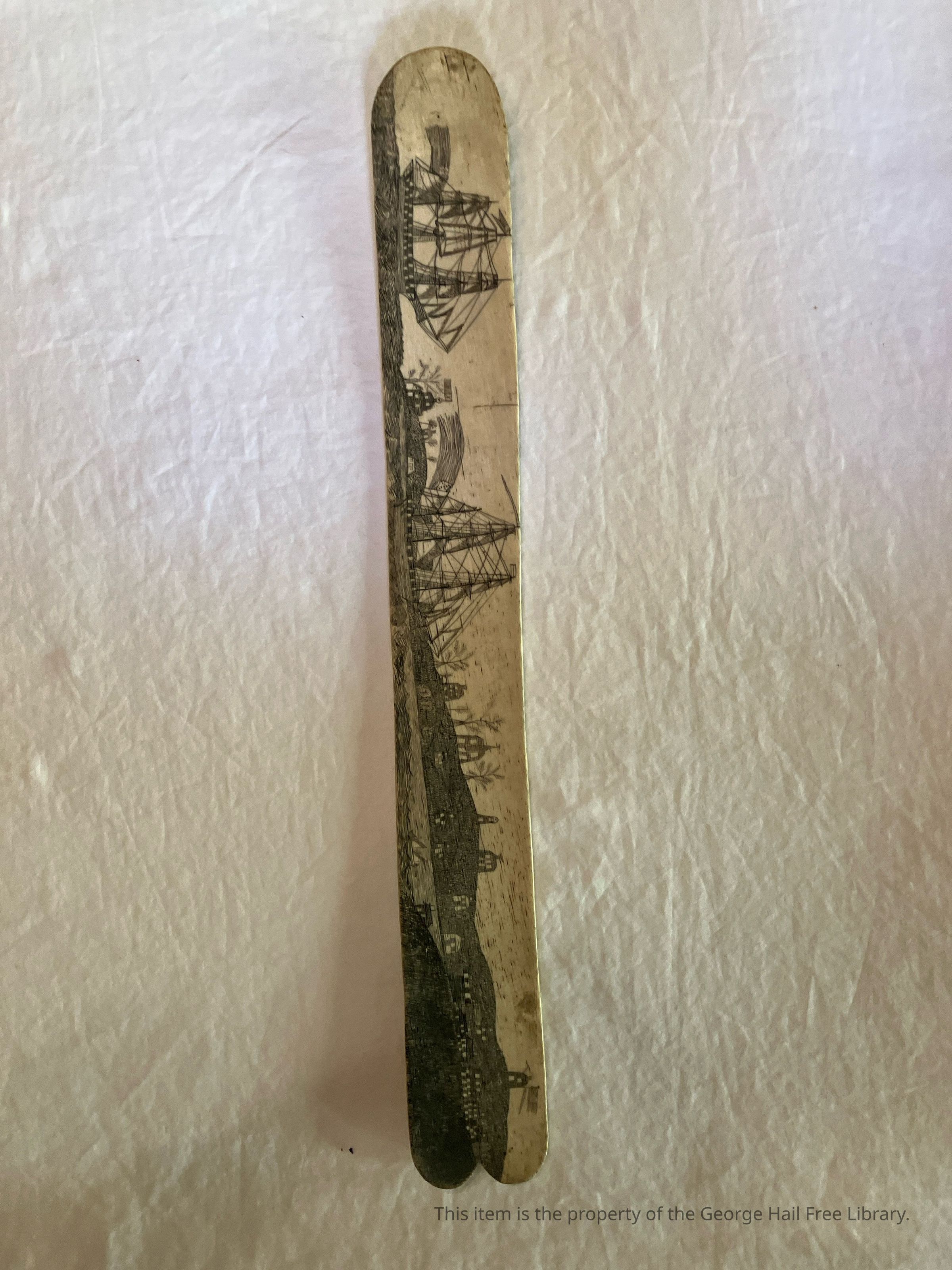 Scrimshaw Busk with Engraving of Ships and Land