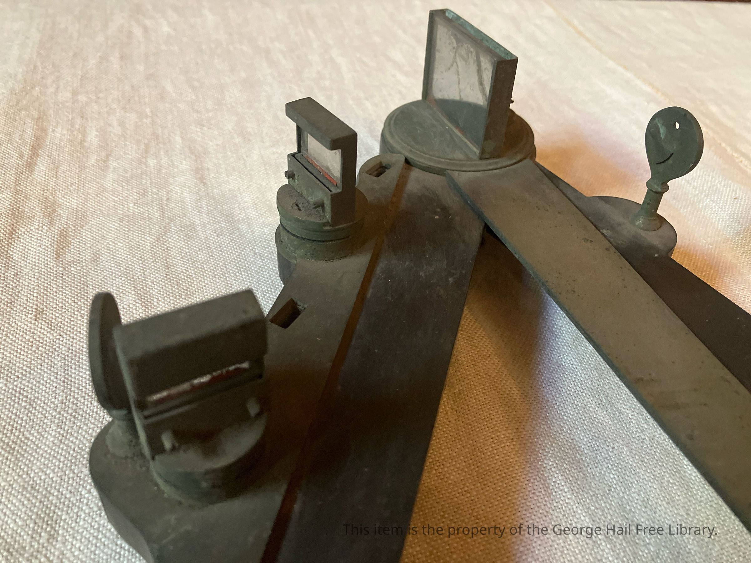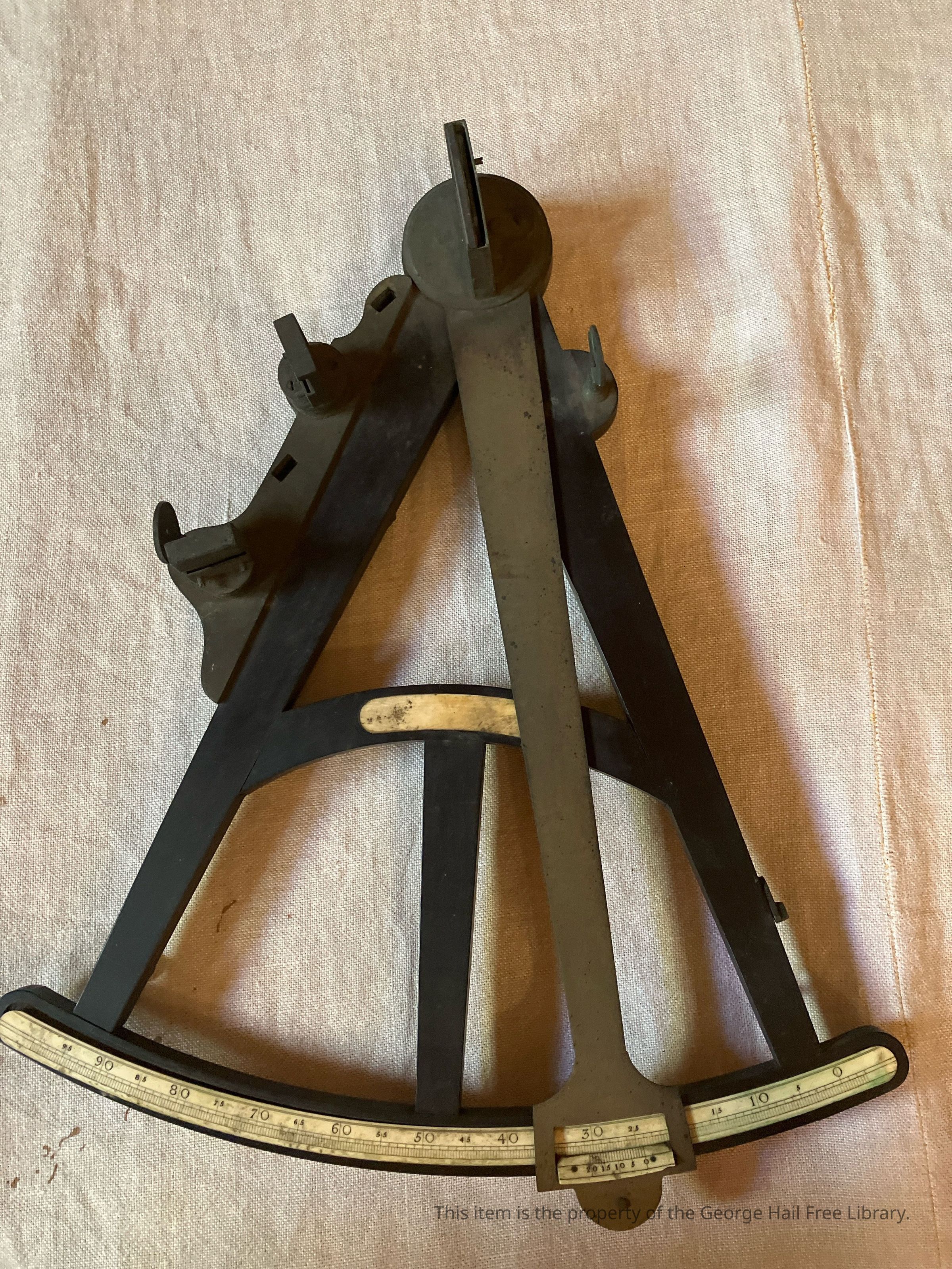 A sextant is a tool that measures angles. Navigators used sextants to measure the angle between a visible object, like the sun or a star, and the horizon. Using mirrors and a scale, the sextant provided navigators with precise measurements that allowed them to determine the distance between objects and calculate their latitude while at sea.Lexicon