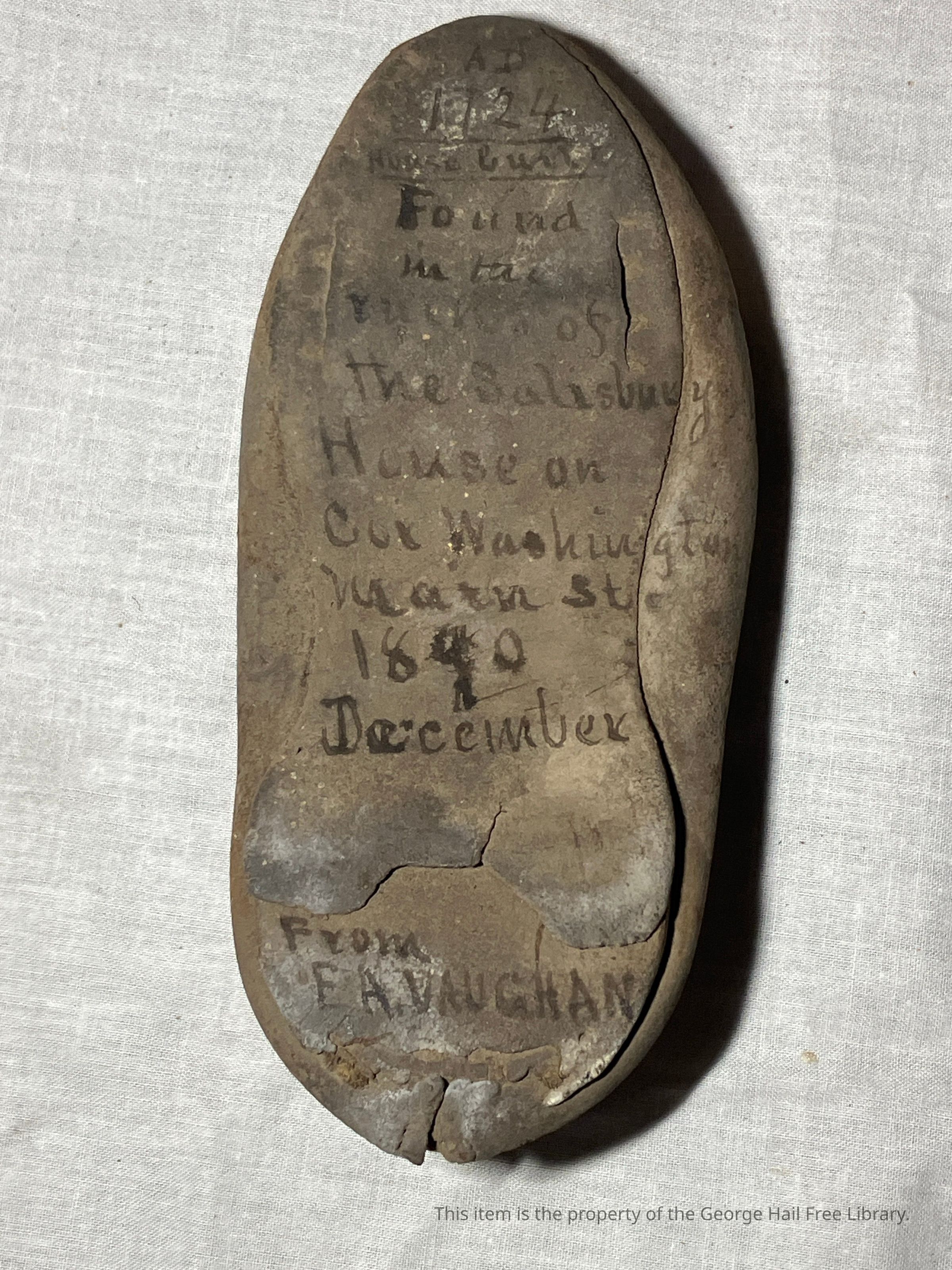 AD 1724 House burn[ed] Found in the ruins of the Salisbury House on Cor Washington Main Str[eet] 1890 December From E.A. VAUGHAN