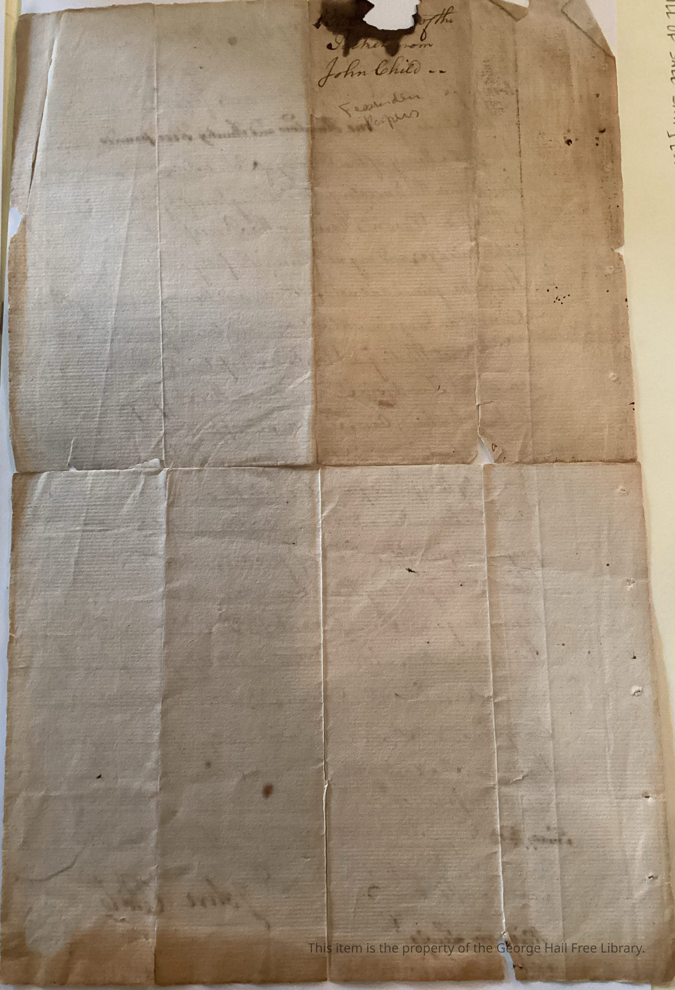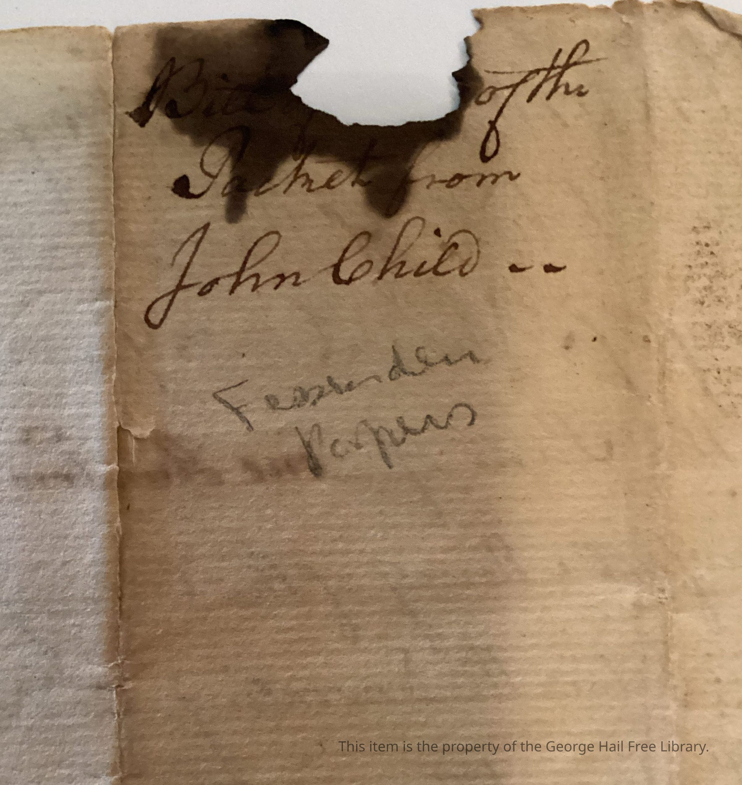 Pencil on back indicates “Fessenden Papers”. A paper seal is on the front that appears to be placed over a red wax seal.Location