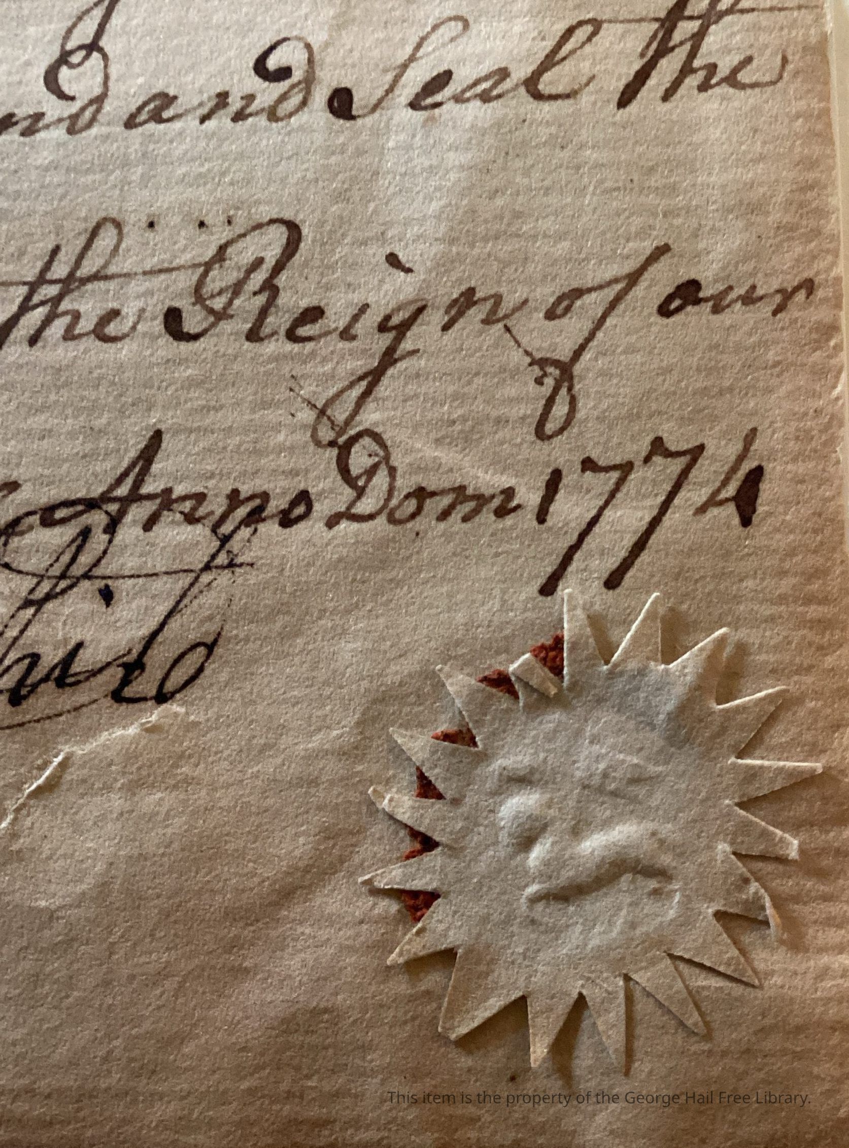 In witness whereof I have here unto set my hand and Seal the Twenty fourth Day of December in the fifteenth year of the Reign of our Sovereign Lord George the third King of Great Brittain [BRITAIN] & Anno Dom 1774 Sealed and Delivered in Presence of us