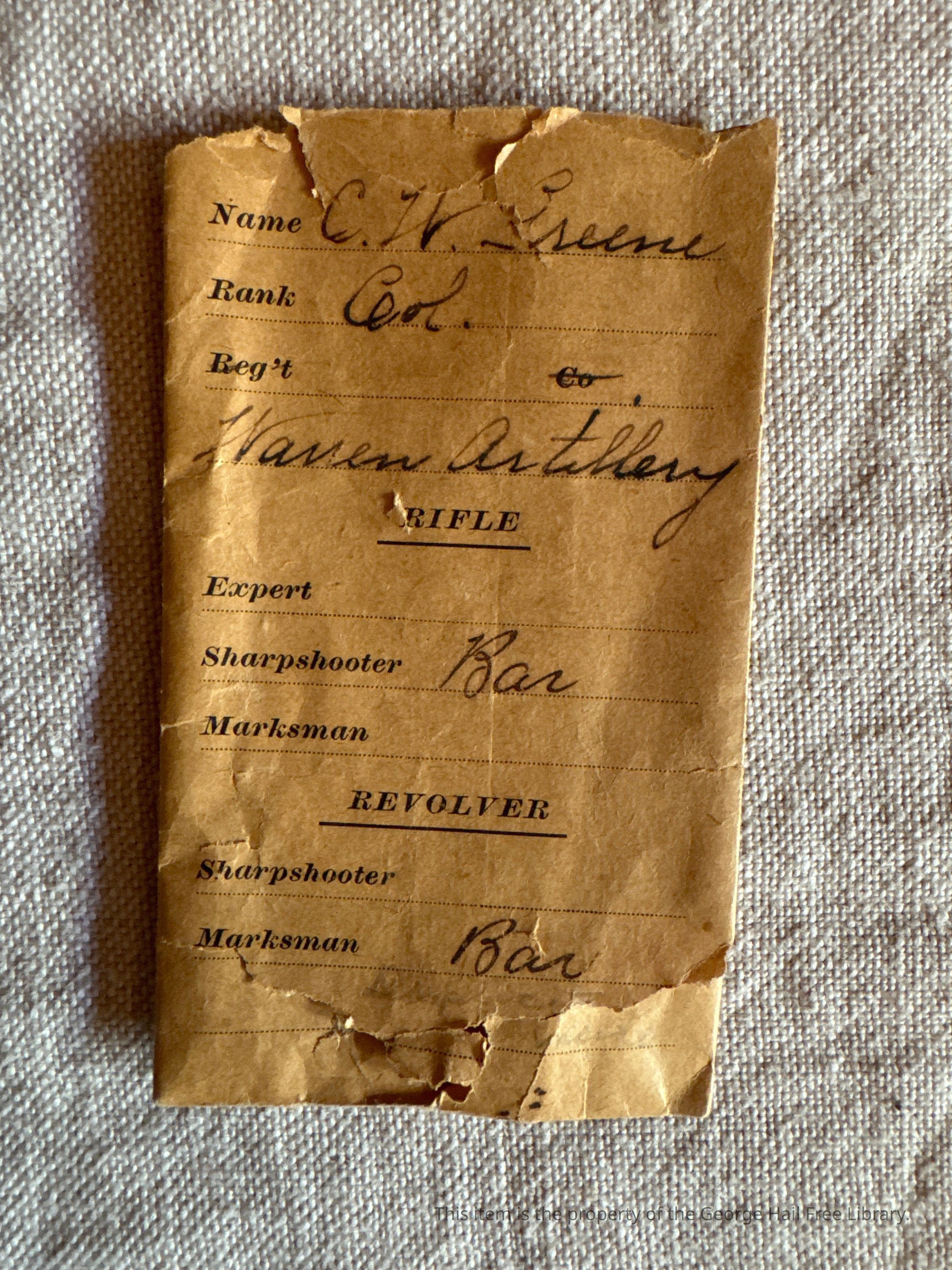 Medal for Colonel Charles Whipple Greene for Marksmanship with a Rifle and RevolverInscription/Signature/Marks