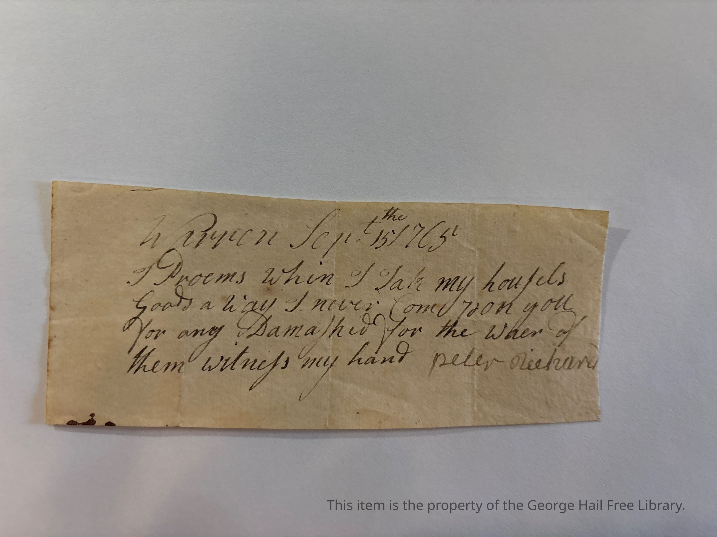 Note appears to be a promise to leave the town of Warren.Made/Created
