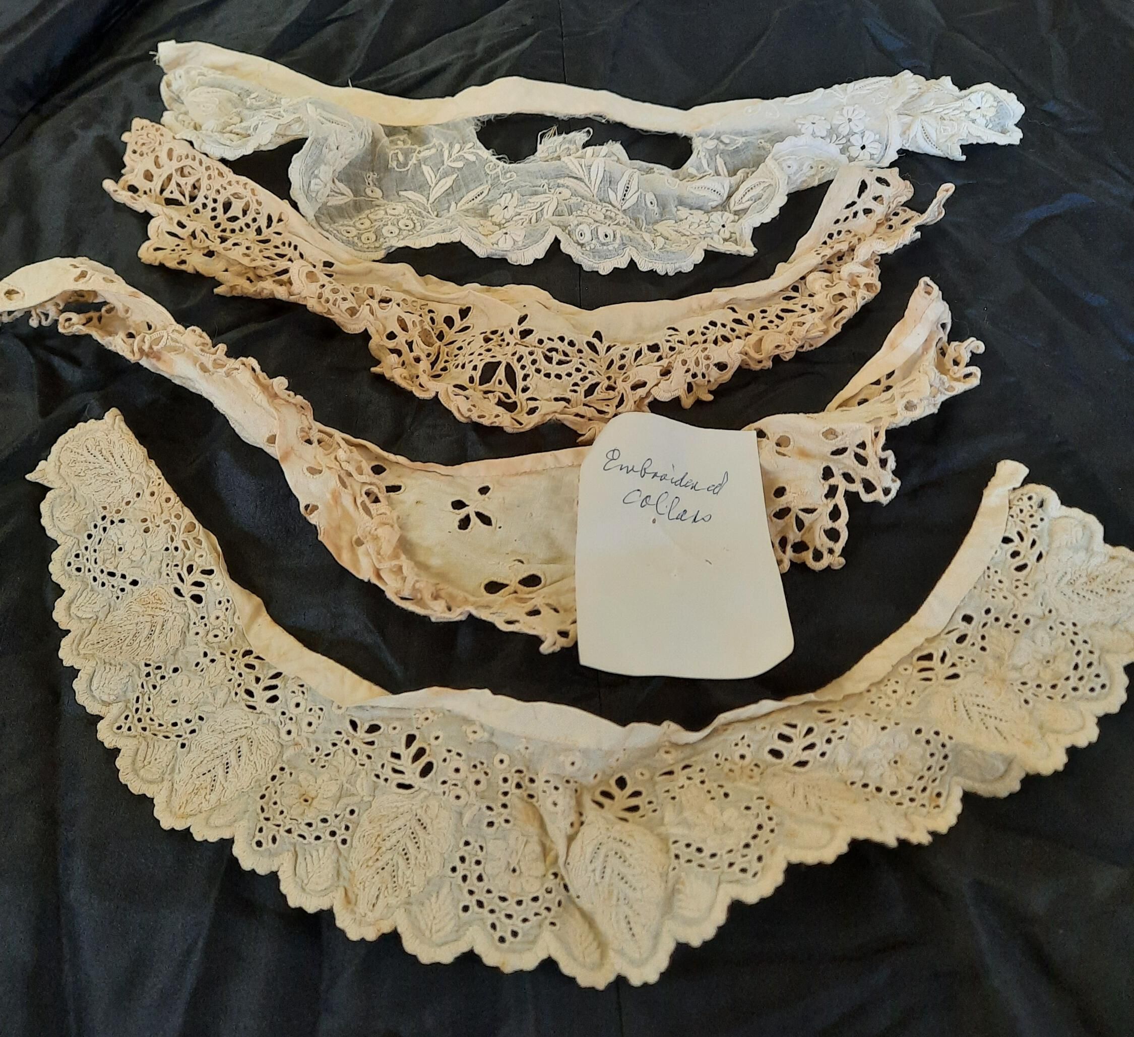 Collars that may have belonged to the Samuel Melendy family. Amongst the belongings of his great-granddaughter Pearl (Hartshorn) Darling.Acquisition