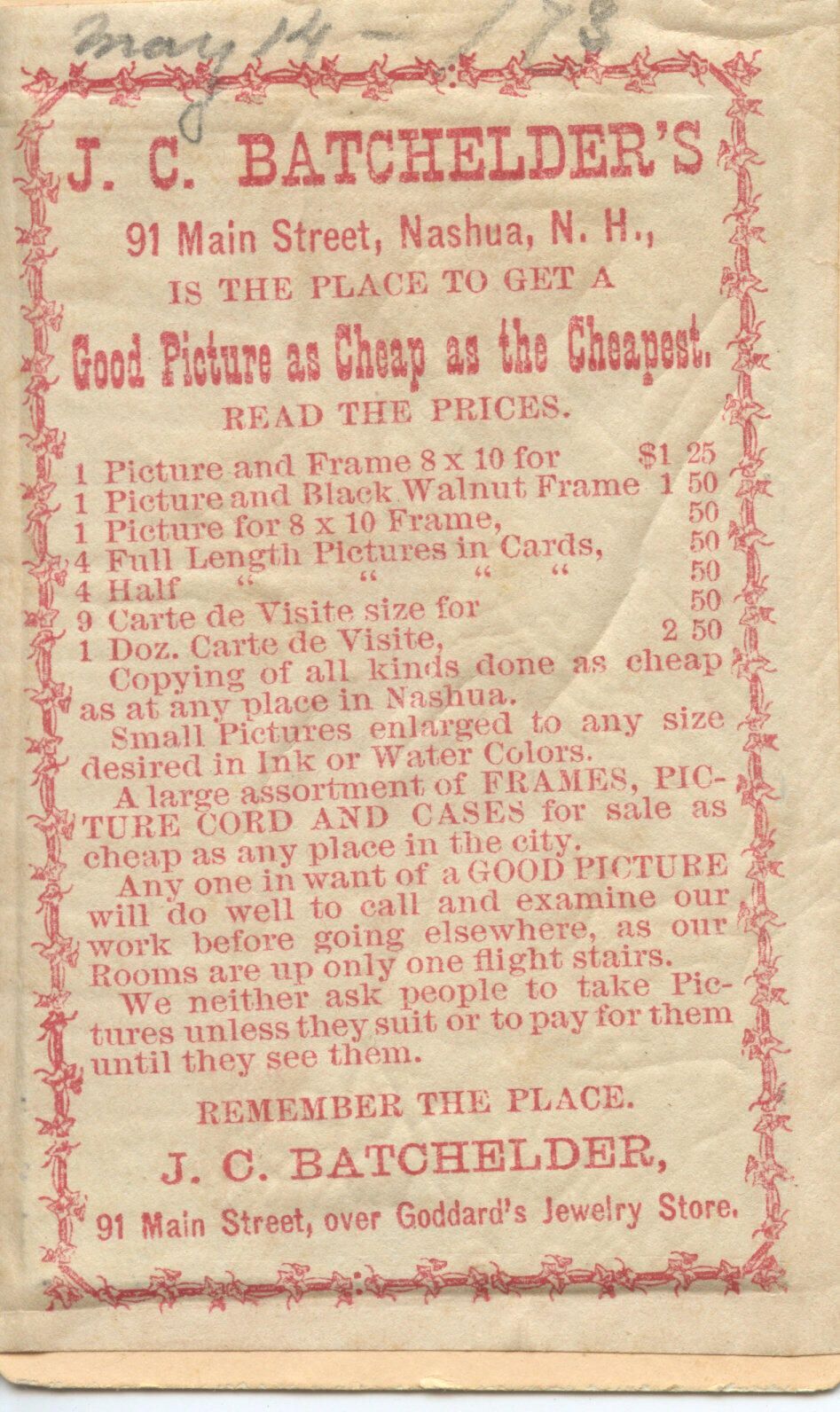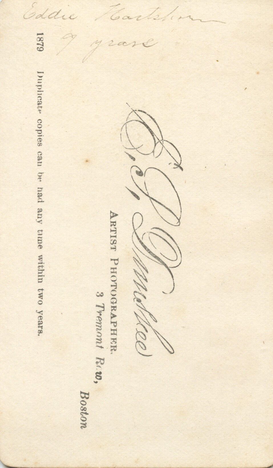 A photo album containing 100 images, mostly carte de visites with a few tintypes, of the Wilkins/Hartshorn family and friends. All the identified photos have been scanned. Several of the images in this album are duplicates and have been previously scanned.Acquisition