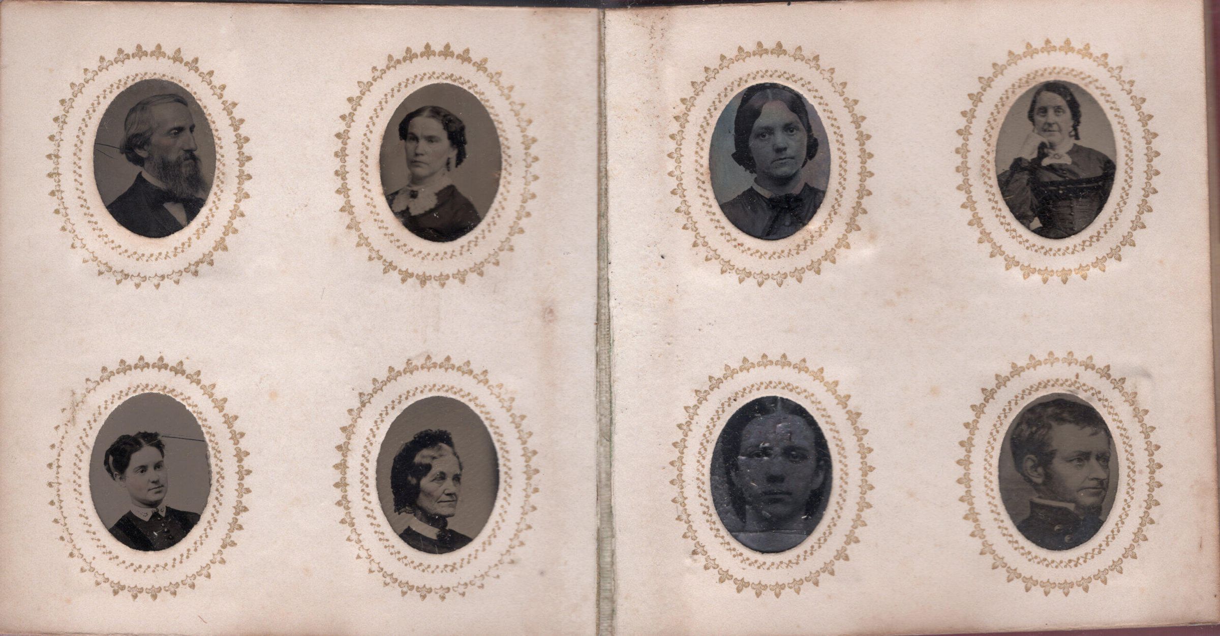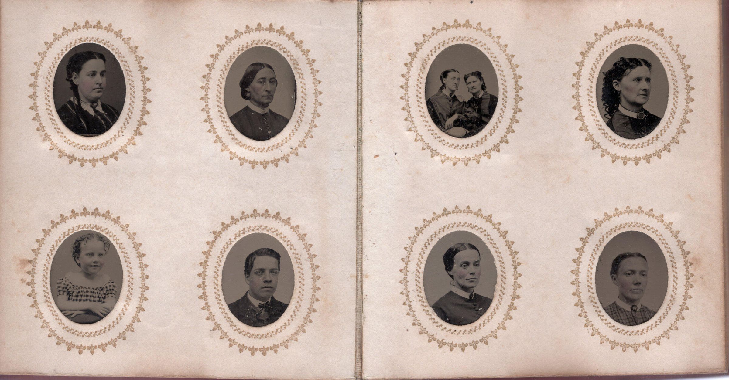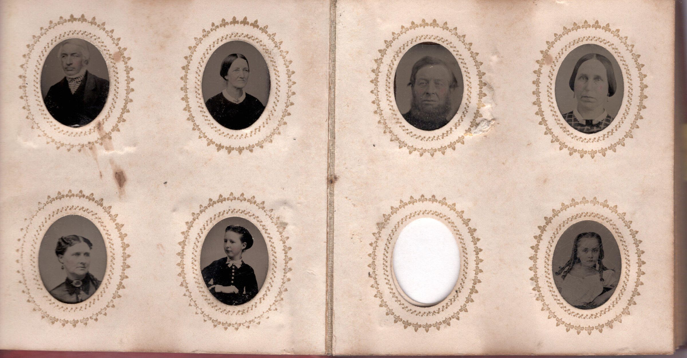 89 gem tintypes portraits in an album. Many of the Wilkins/Hartshorn family, but also includes various town's people.Acquisition