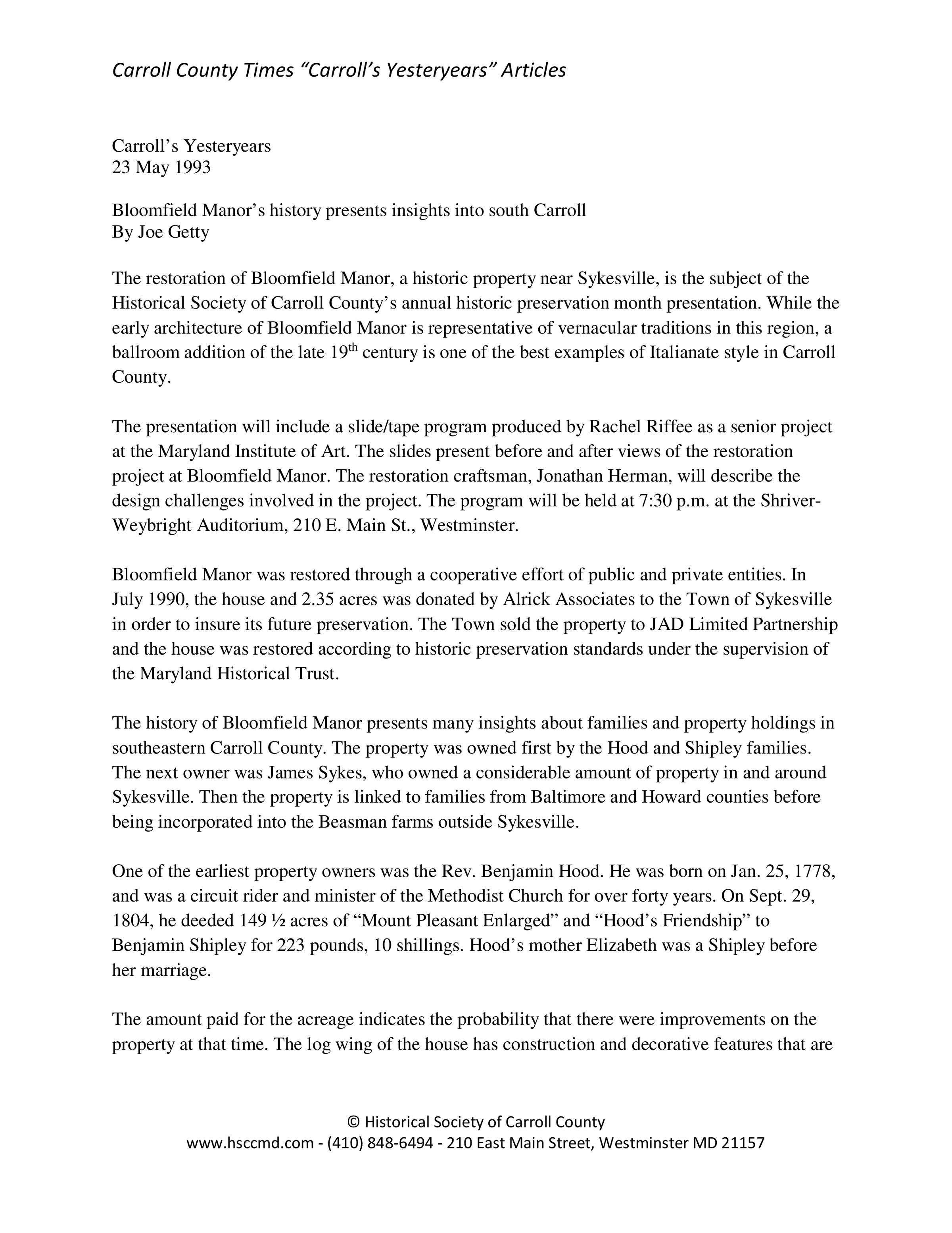 Historical Society of Carroll County, Maryland