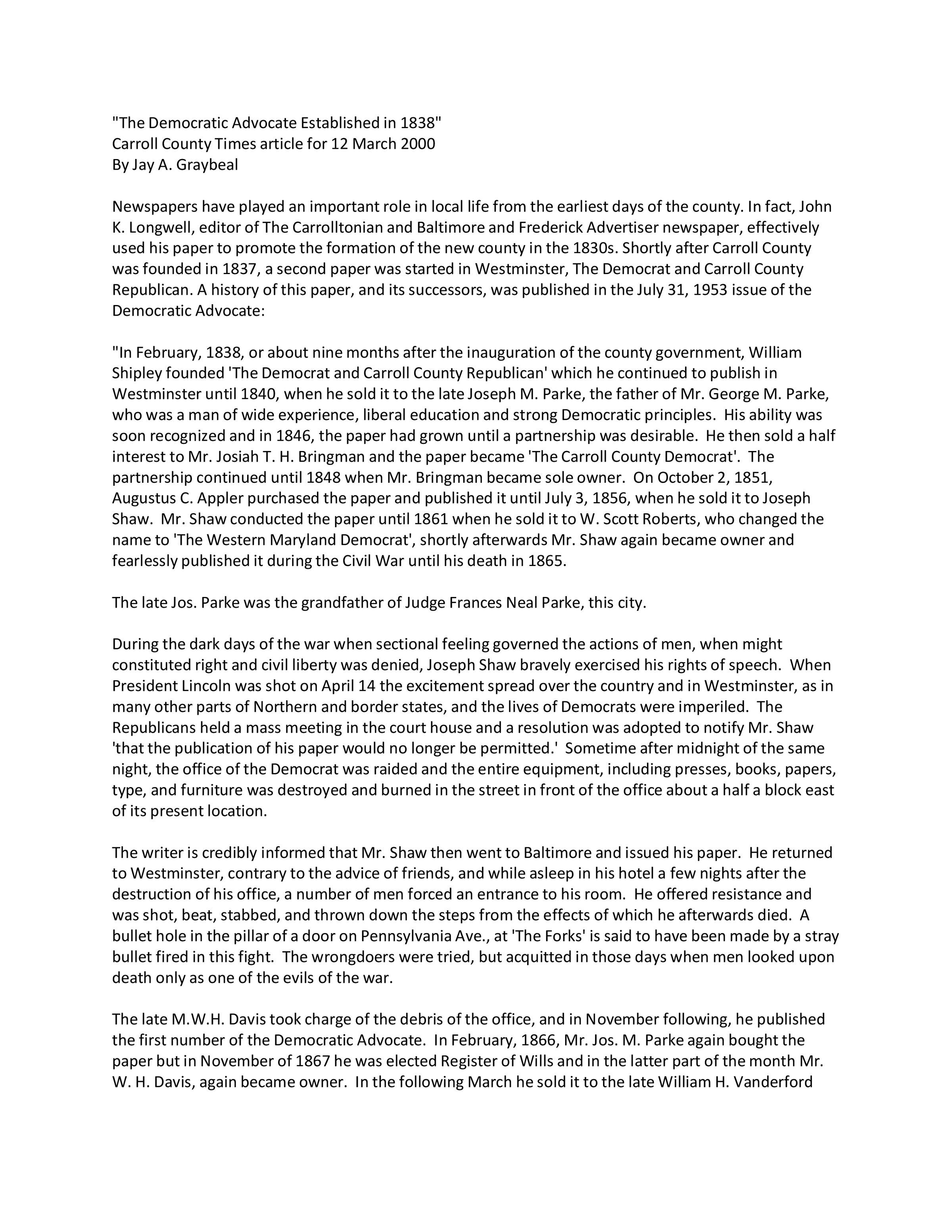 Historical Society of Carroll County, Maryland