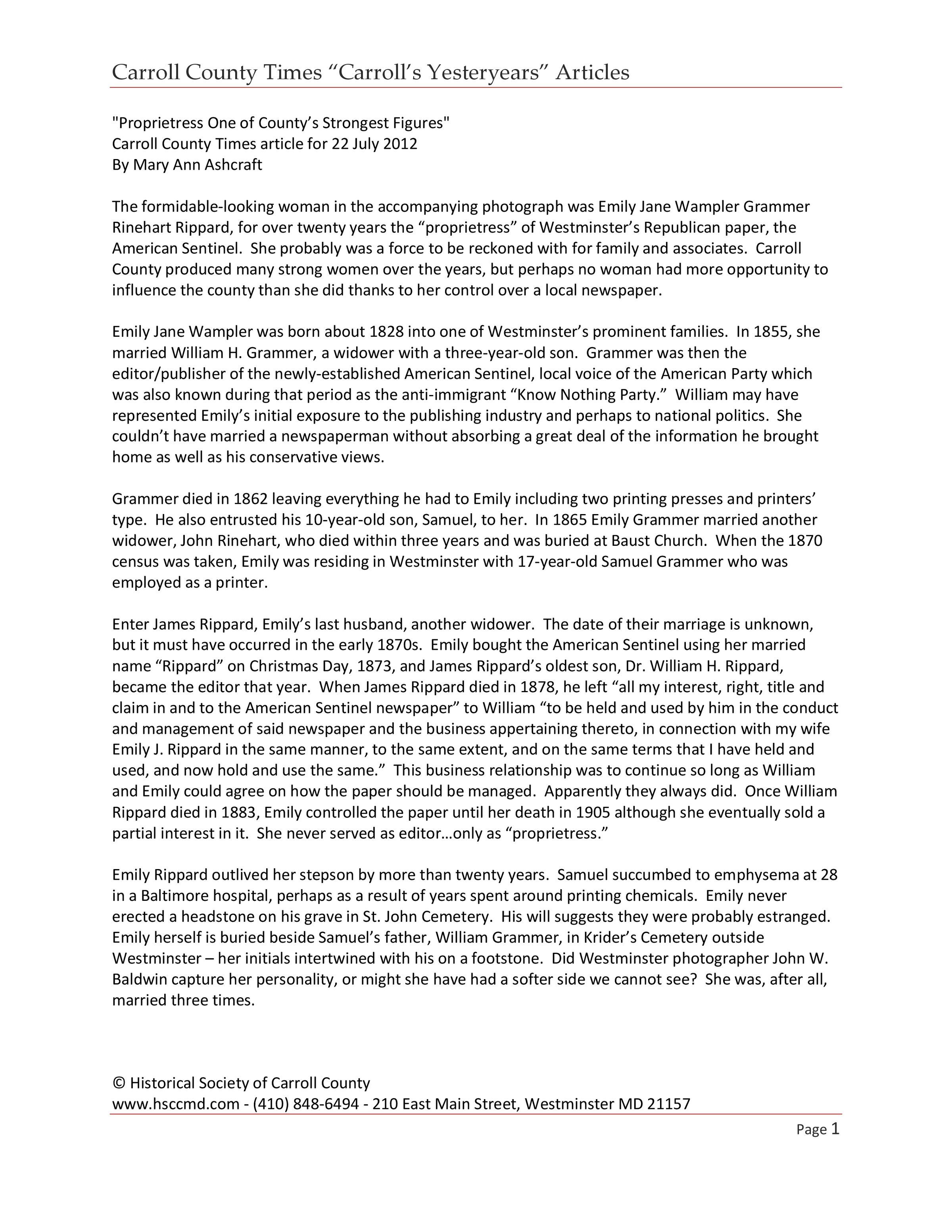 Historical Society of Carroll County, Maryland