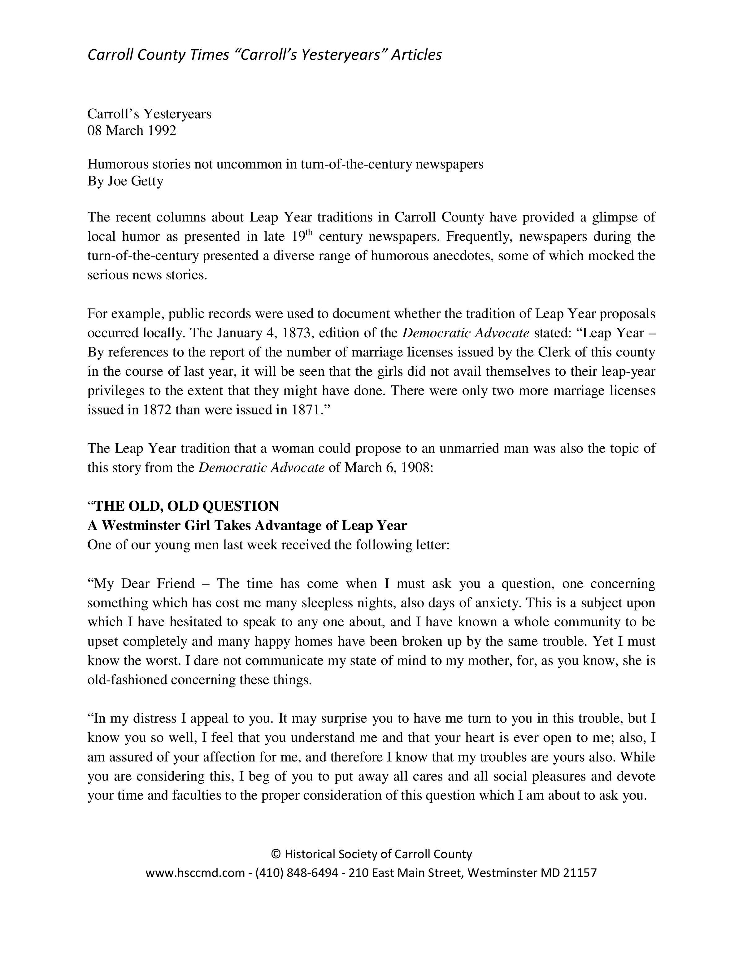 Historical Society of Carroll County, Maryland