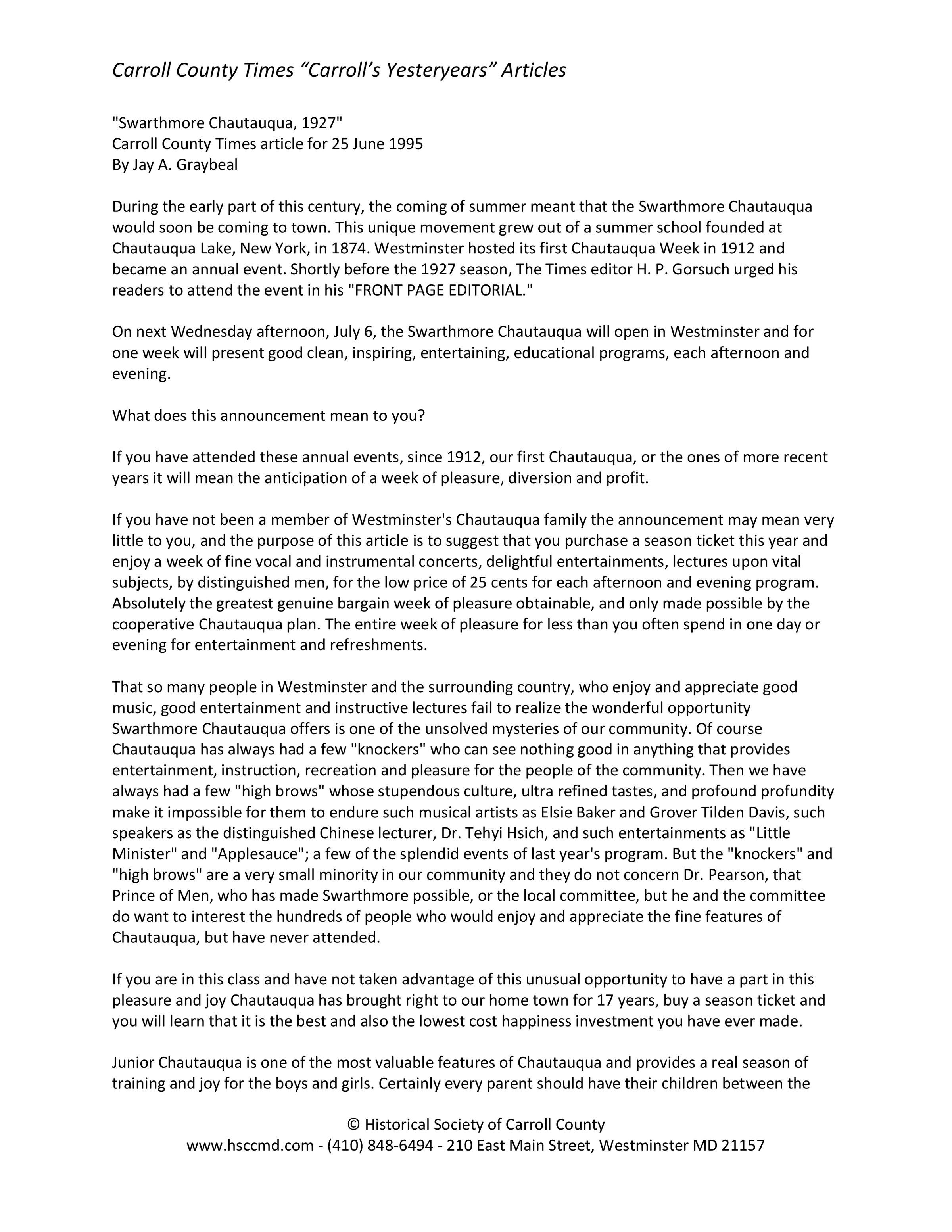 Historical Society of Carroll County, Maryland