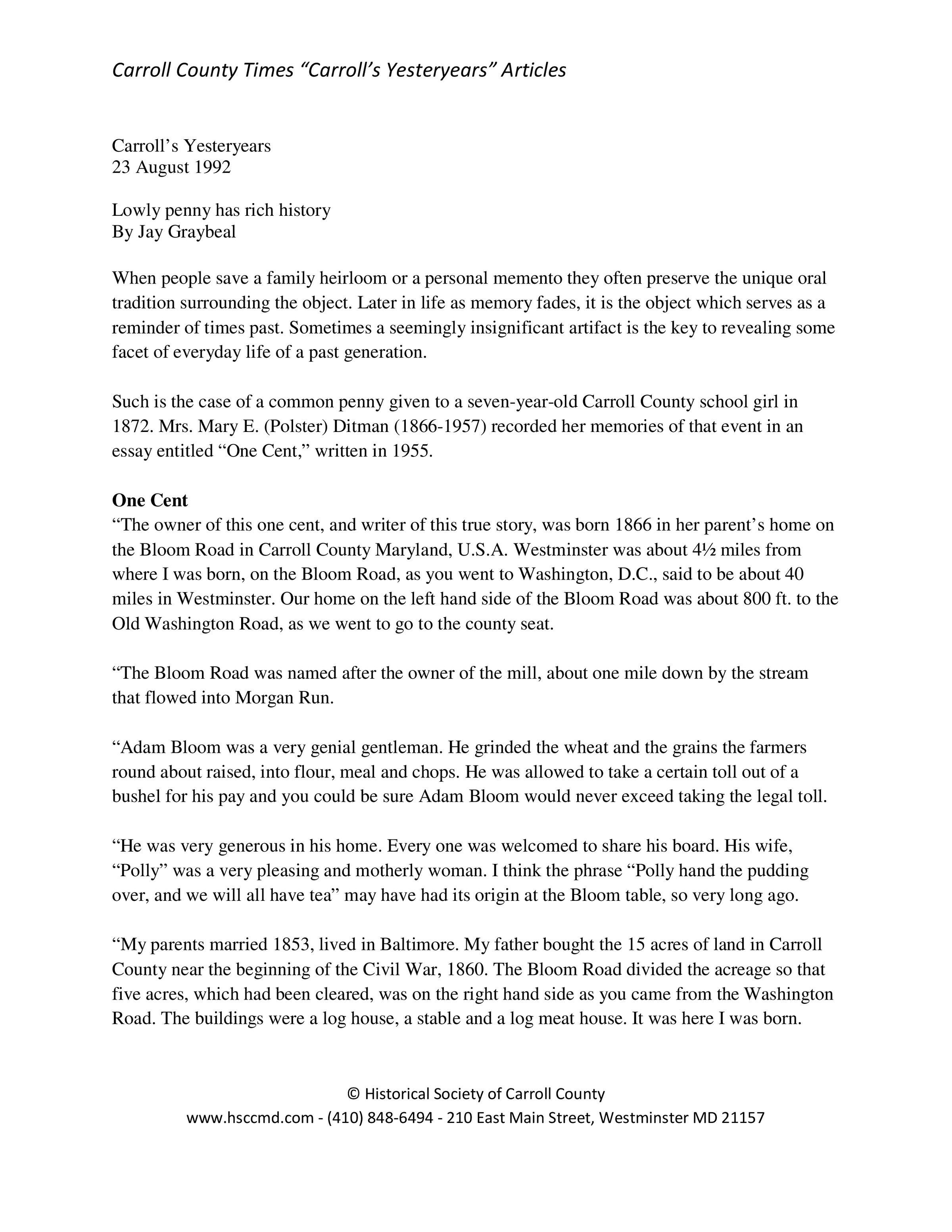 Historical Society of Carroll County, Maryland