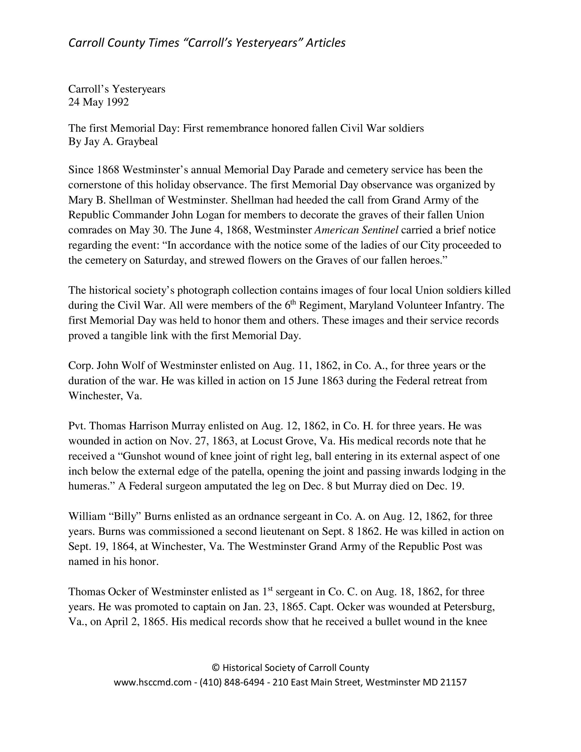 Historical Society of Carroll County, Maryland