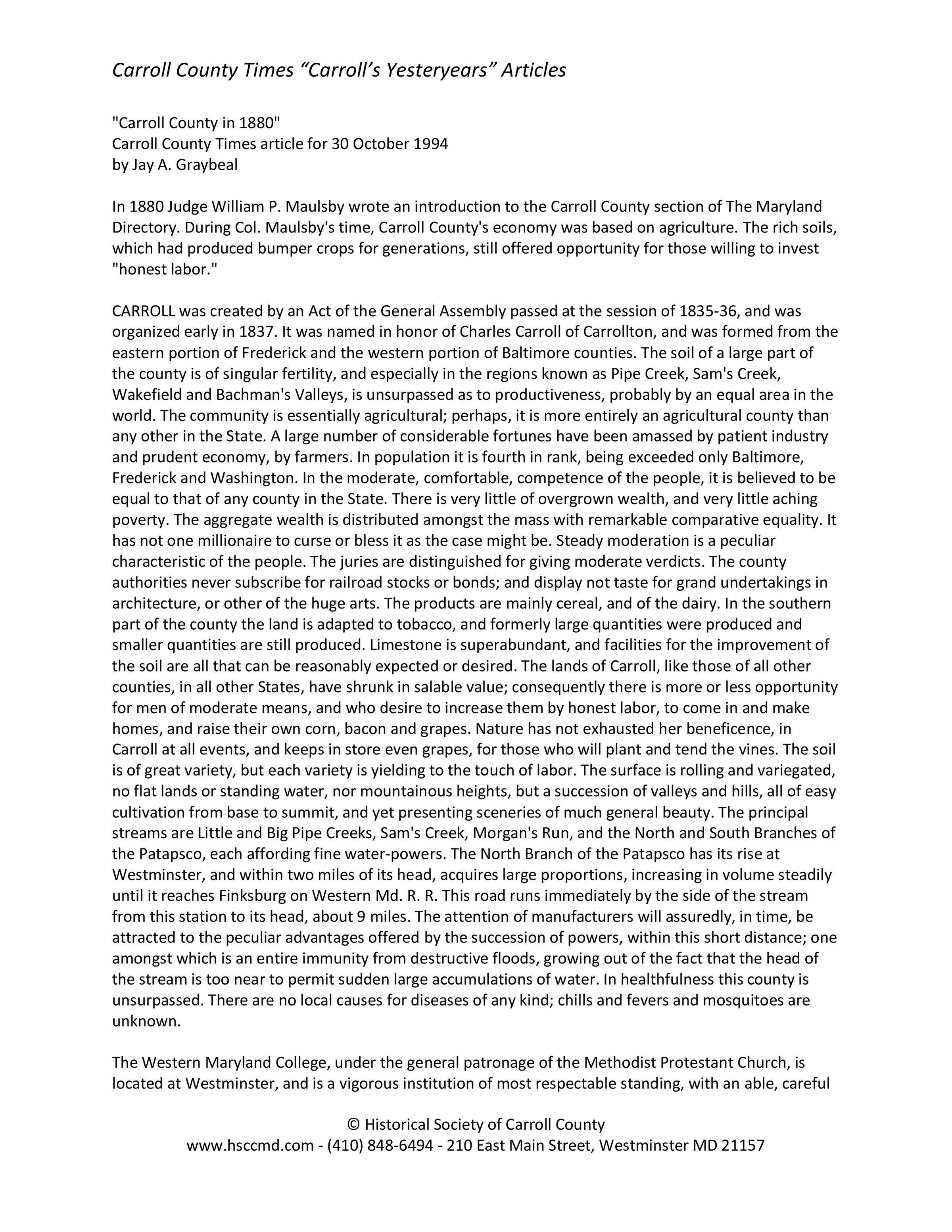 Historical Society of Carroll County, Maryland
