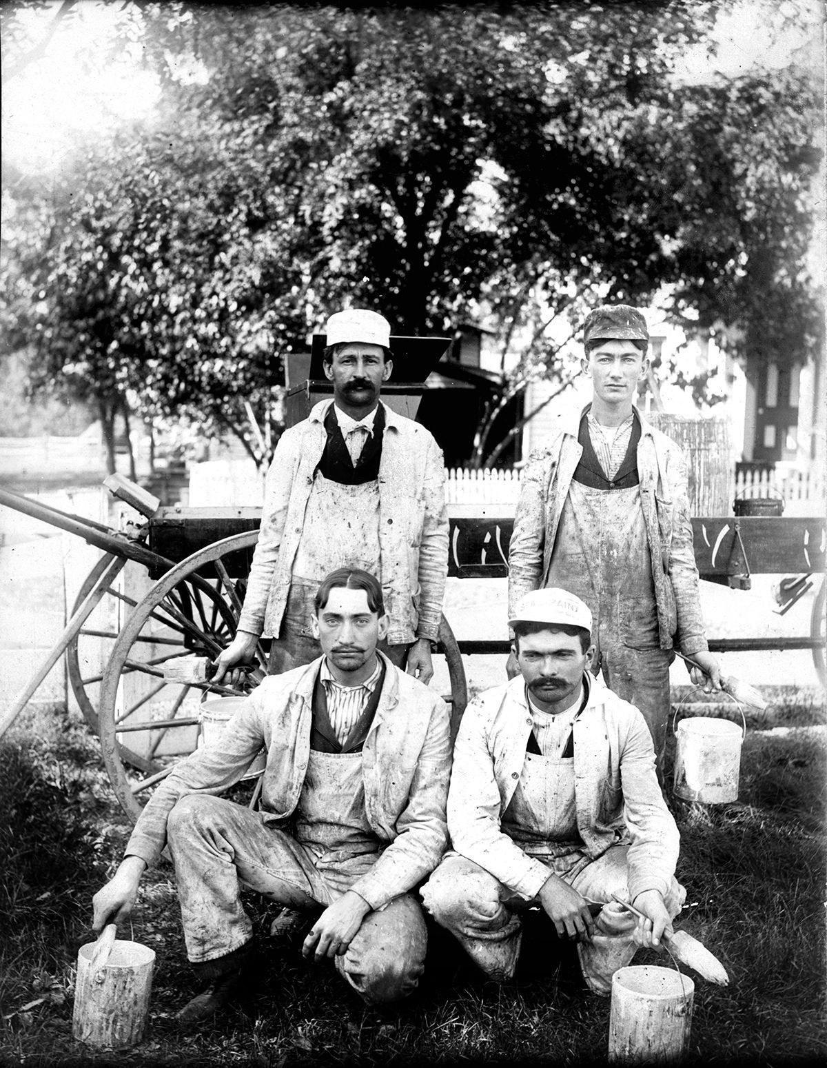 Print, photographic. Paint crew, Luther O. Eckard at left proper front, mounted on black card, 12" x 9.875", Westminster, Md., c. 1900.Acquisition