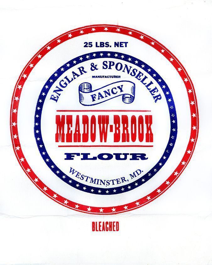 Bag. Paper, 25.125" x 13.625"; white with red and blue printing. "ENGLAR & SPONSELLER FANCY MEADOW-BROOK FLOUR WESTMINSTER, MD. BLEACHED." 25 pounds net weight.Acquisition