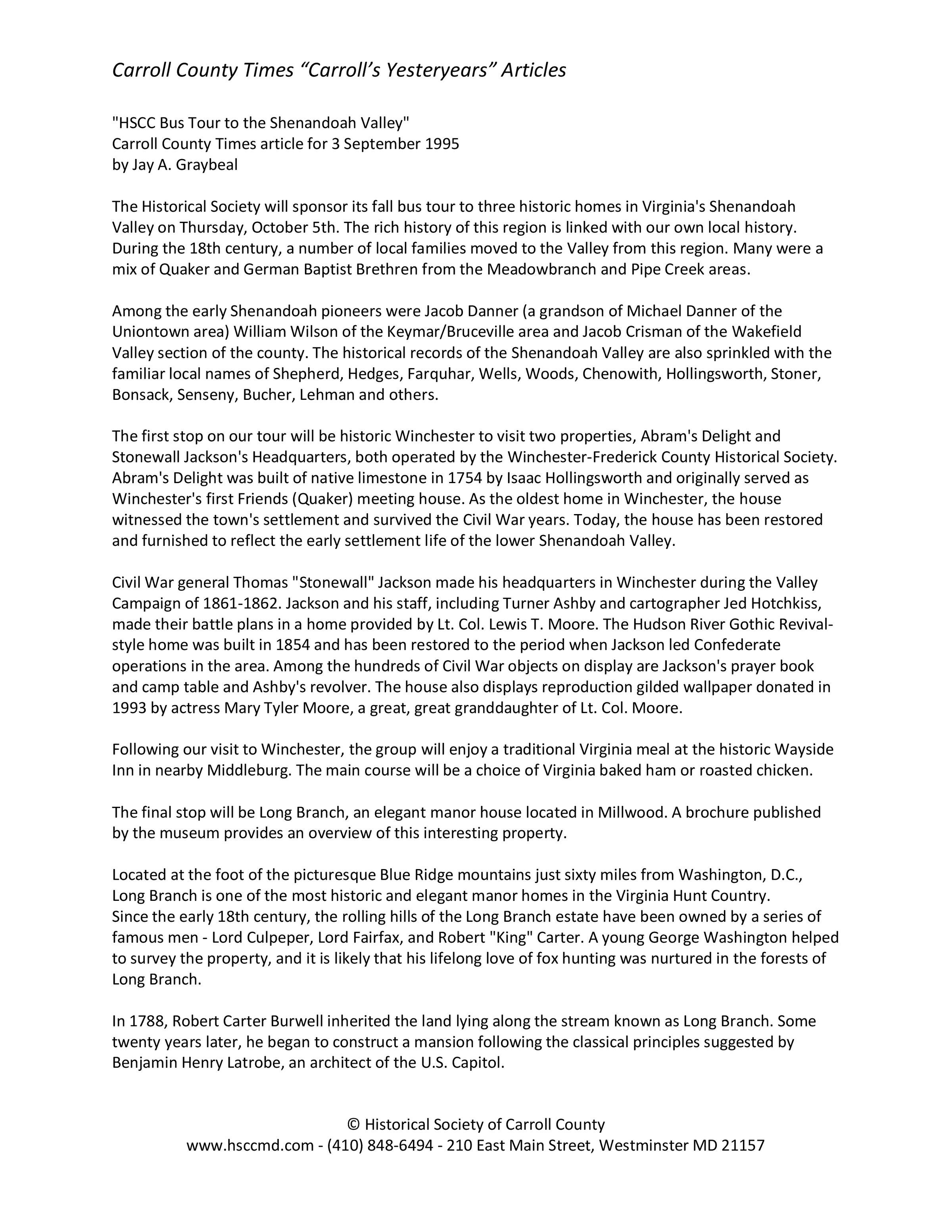 Historical Society of Carroll County, Maryland