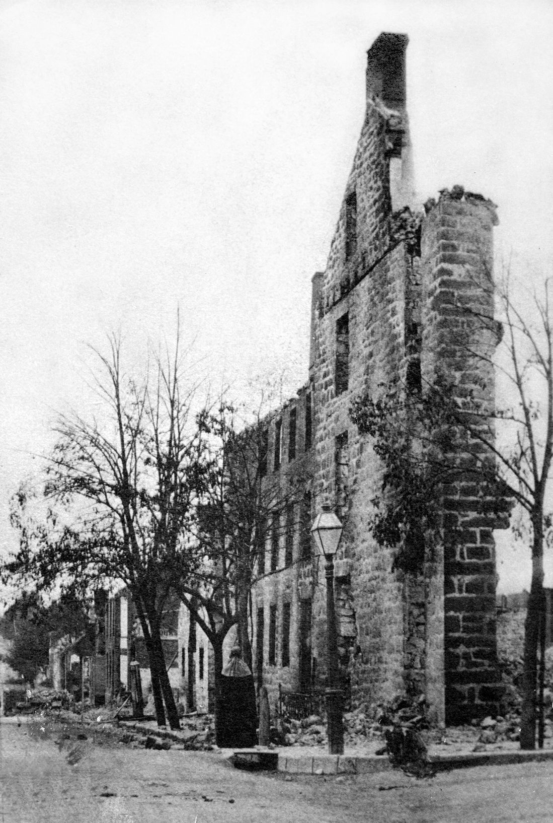 B/W Photo of the Ruins of the Chambersburg Inn after a Rebel raid on July 30th 1864. 5.5"x 3.75" on a large tan backing.
