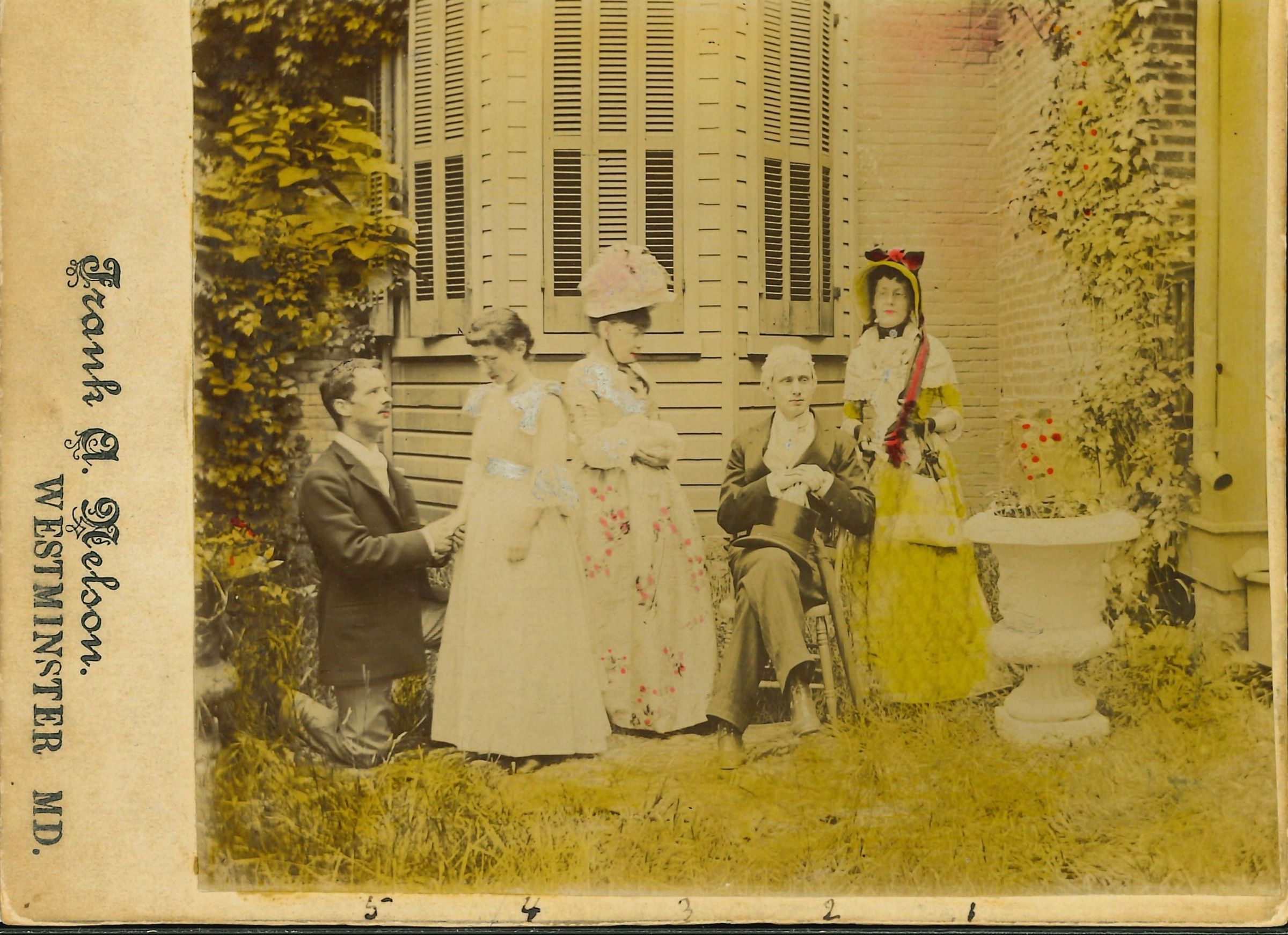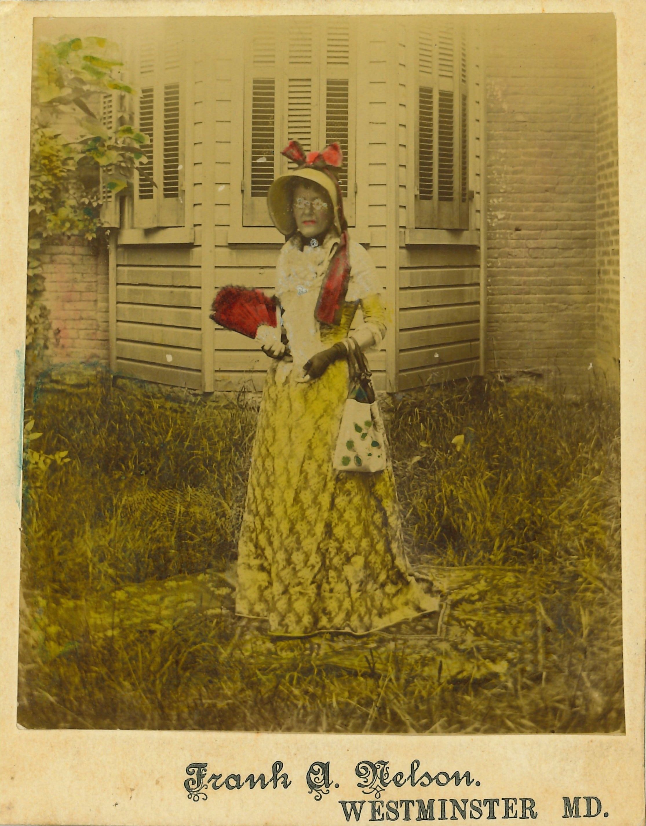 While the dress was once rumored to belong to Mary's grandmother, historical clothing consultant Colleen Callahan confirmed its early 1880s date. The earlier confusion likely stemmed from the fact that the dress was badly altered to appear more colonial, possibly for use in one of Mary Shellman's many plays. Mary was involved in staging local performances, and this dress serves as a tangible link to her passion for the arts and enriching her community through theater. An image from a play called "Popping the Question" in 1891 shows Mary wearing this dress.Acquisition