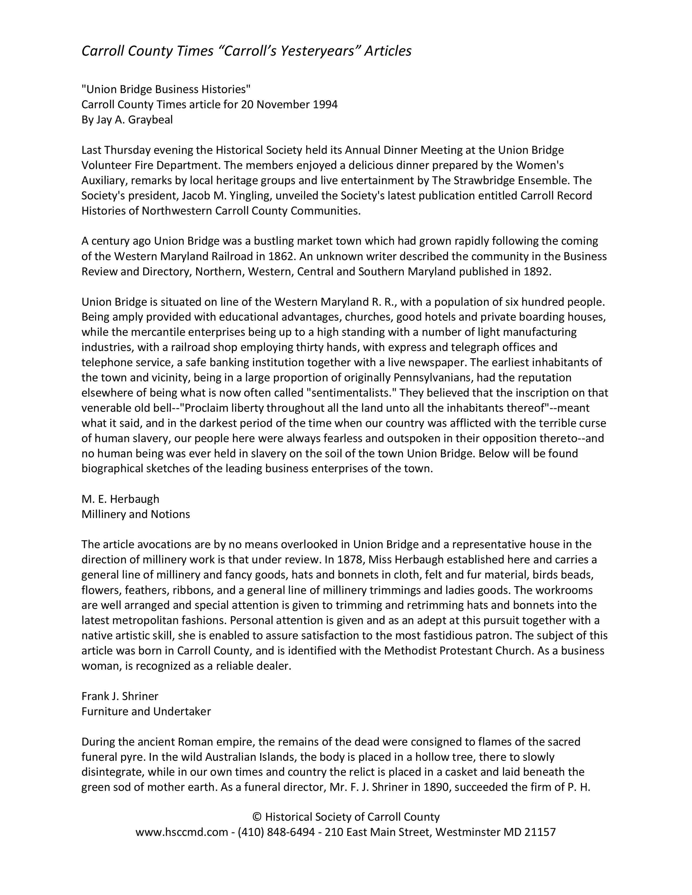 Historical Society of Carroll County, Maryland